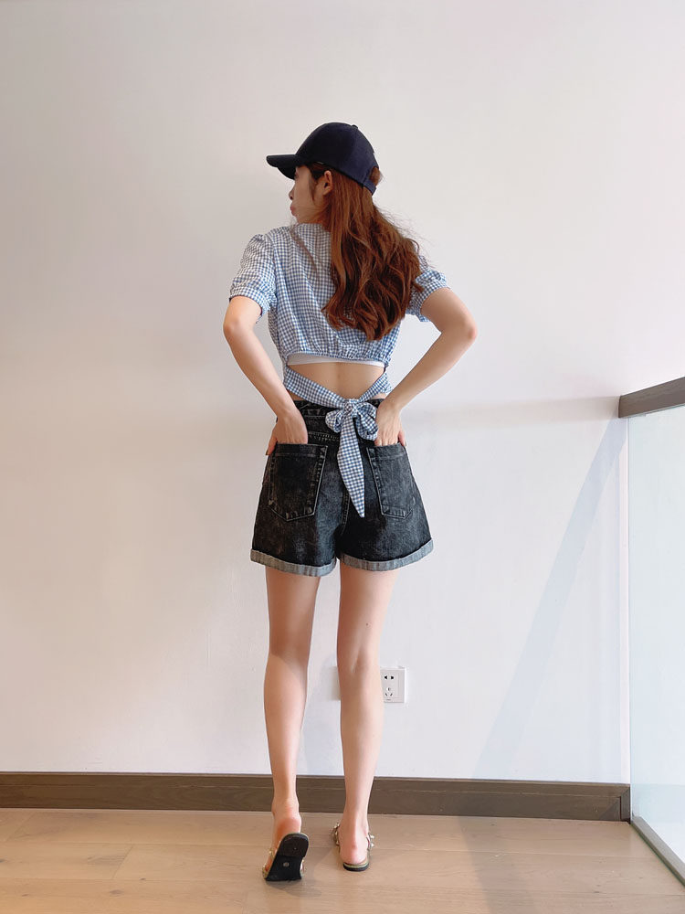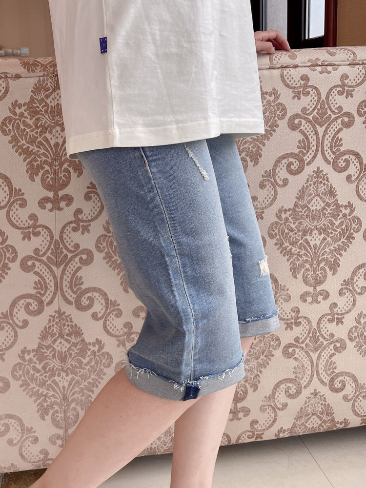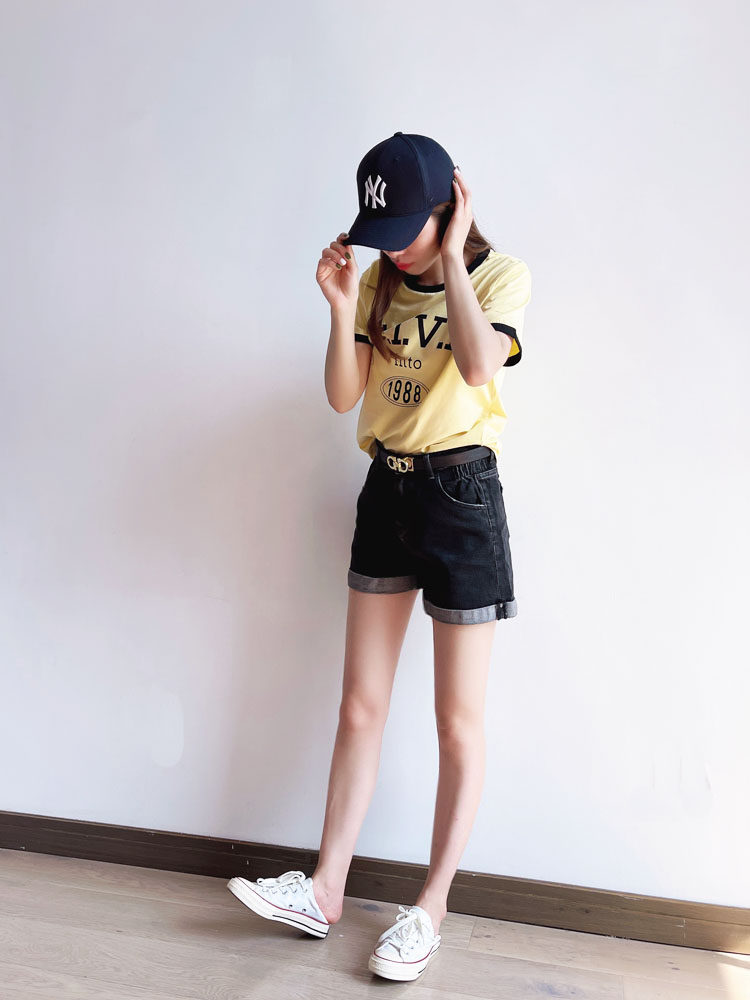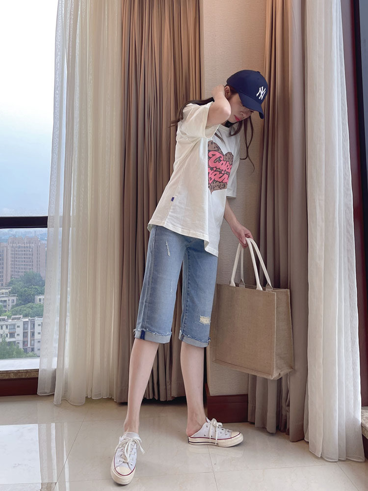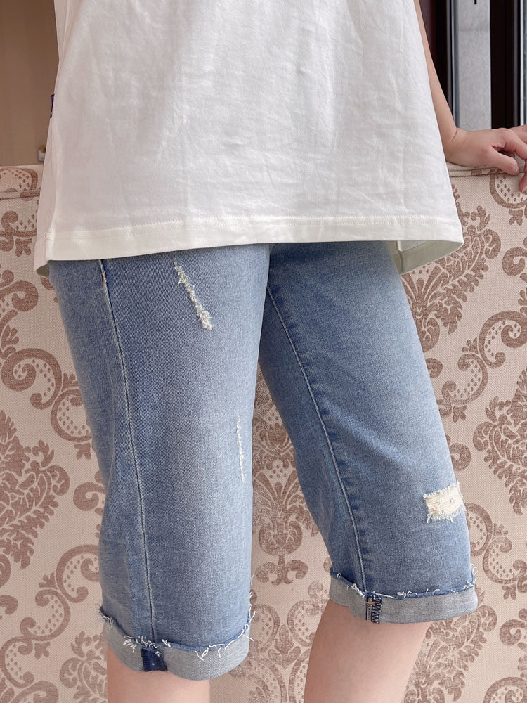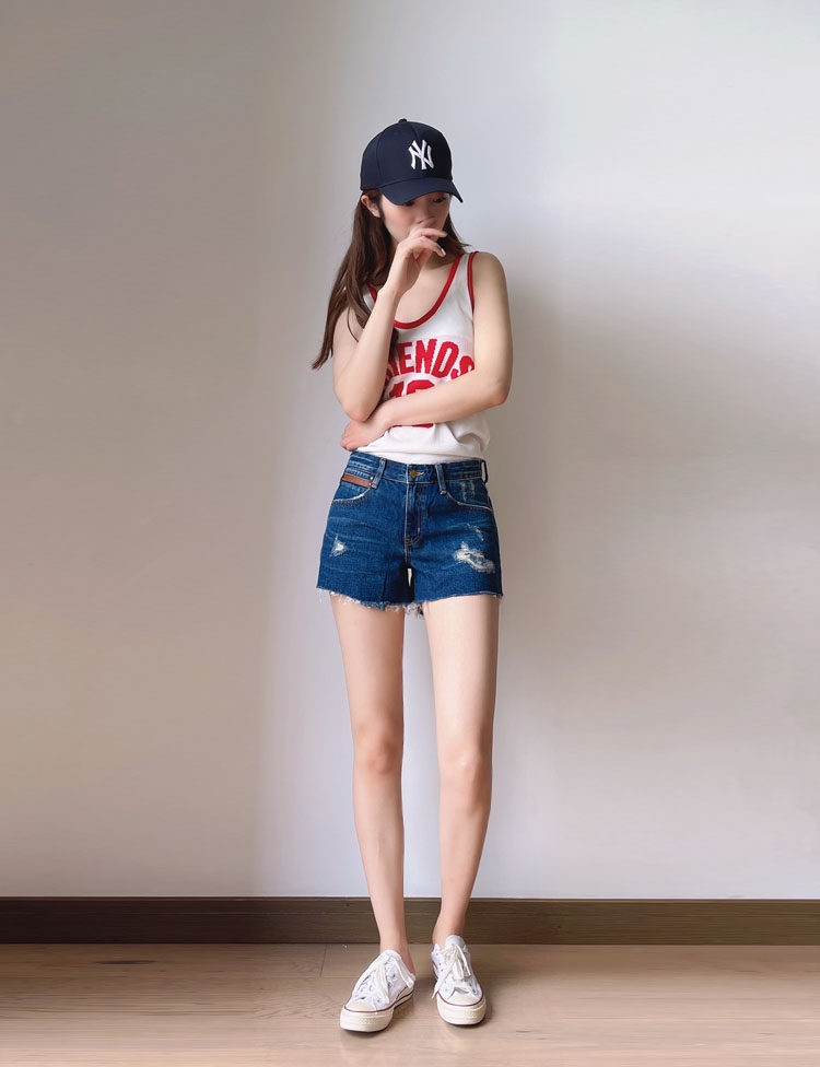 2021夏季新款熱褲,超顯瘦假破洞牛仔短褲