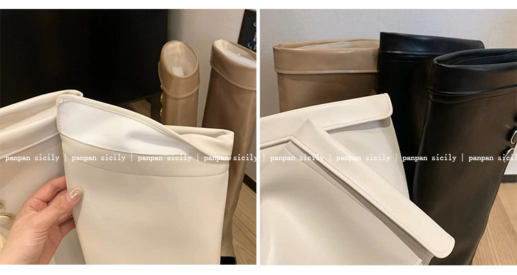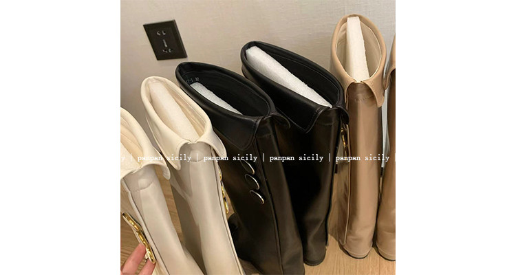 淺色靴靴是金色扣邊,深色靴靴是銀色扣邊