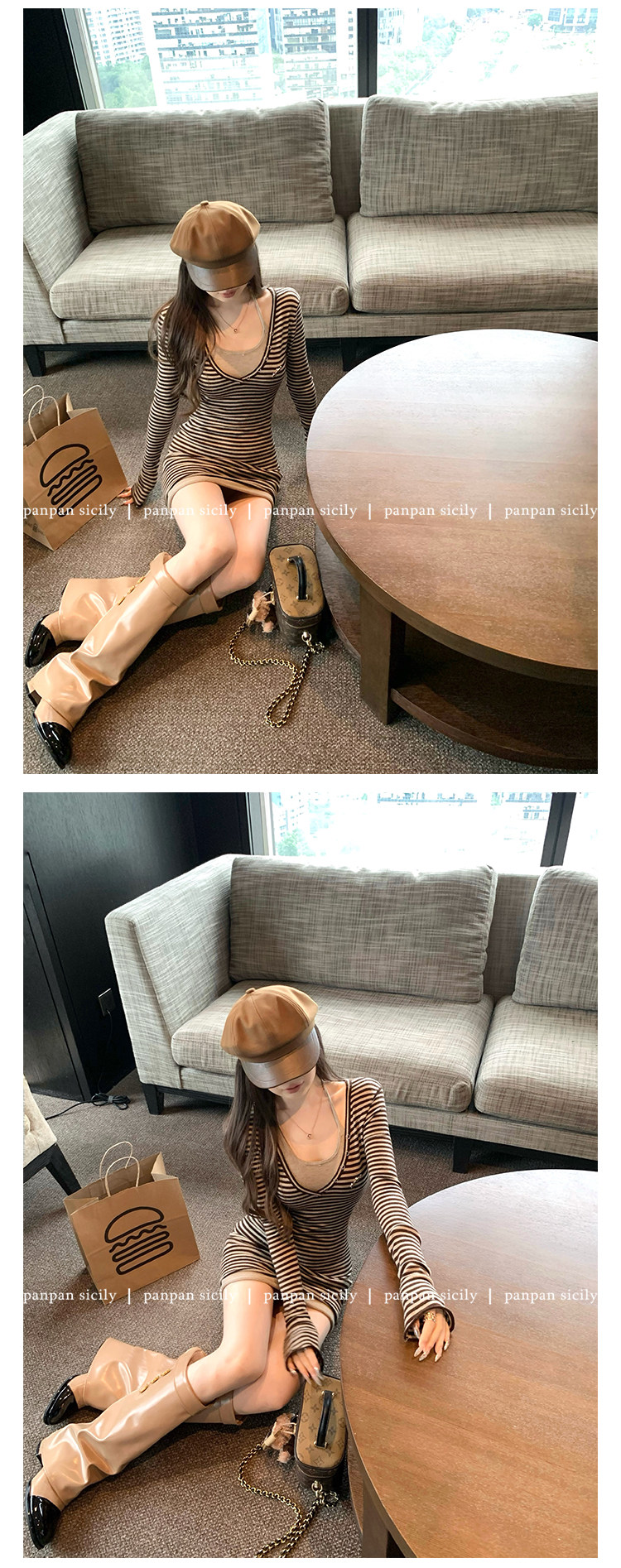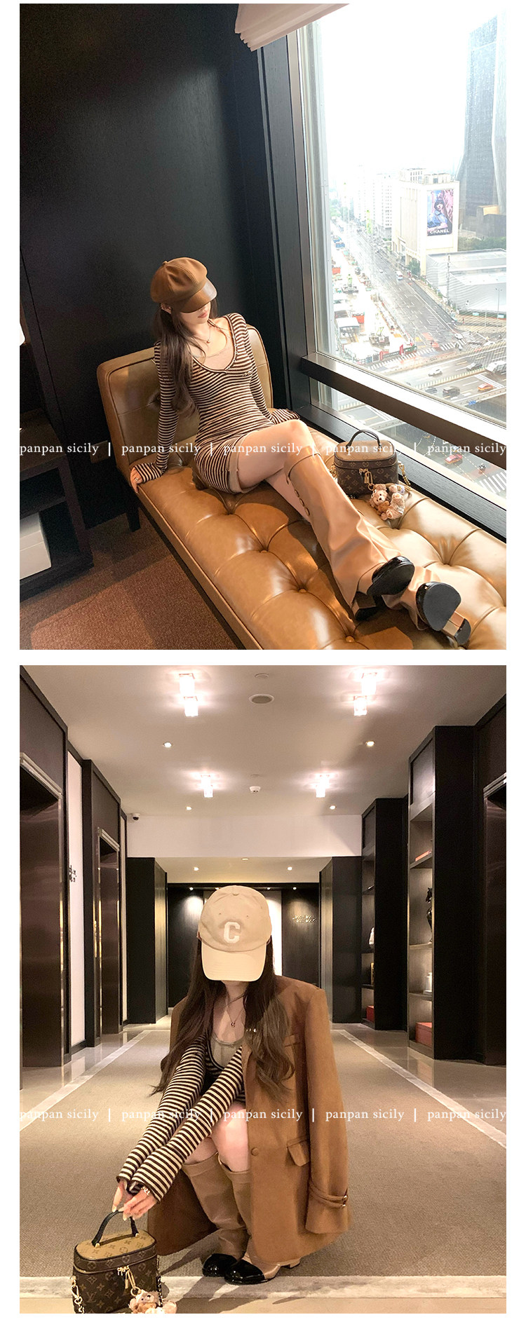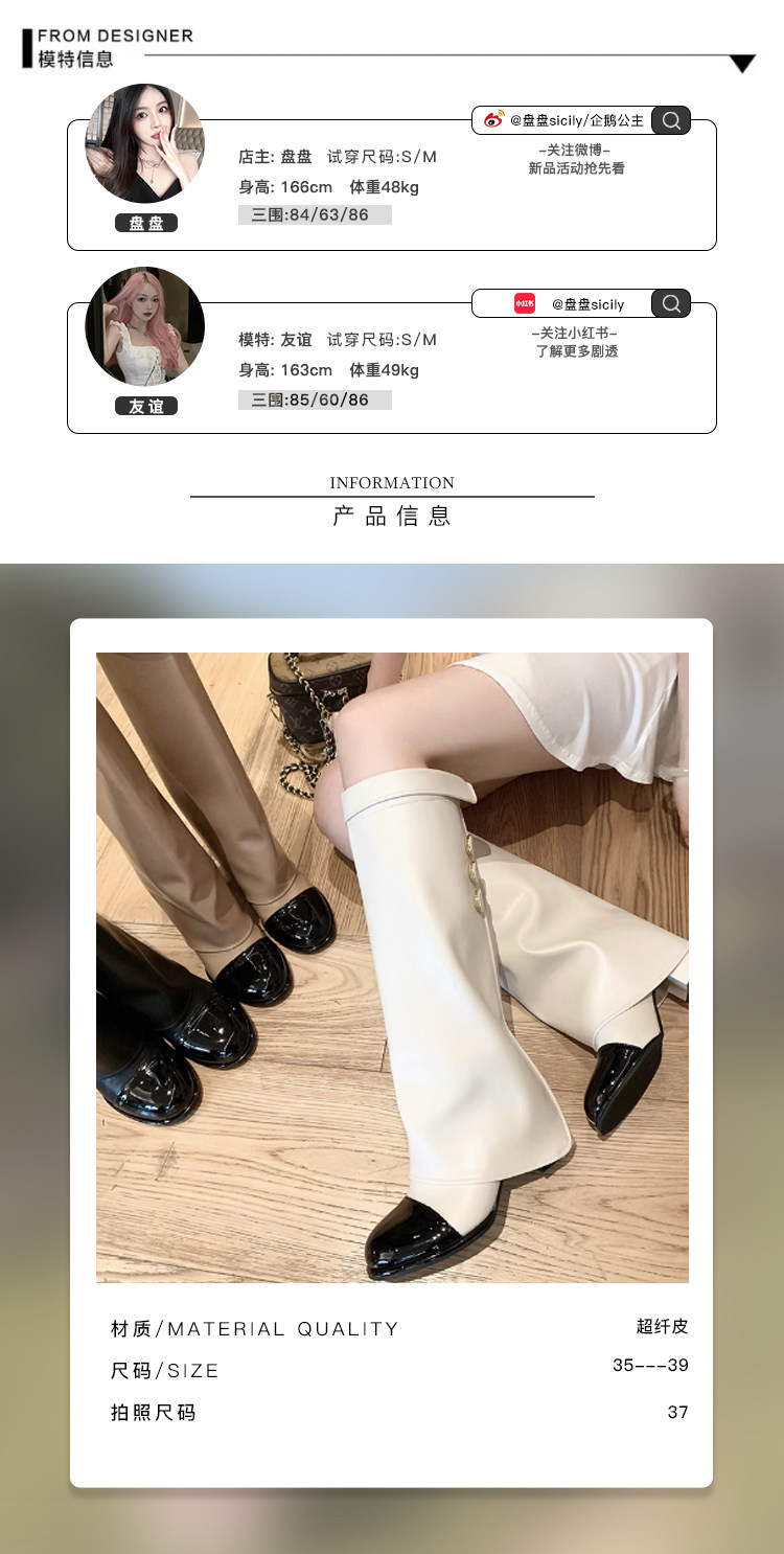 盤盤【Paris香榭千金】ch@ne1 24B香系時髦撞色長筒靴
