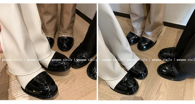 鞋頭的部分是亮面漆皮的,和啞光的靴筒形成對比