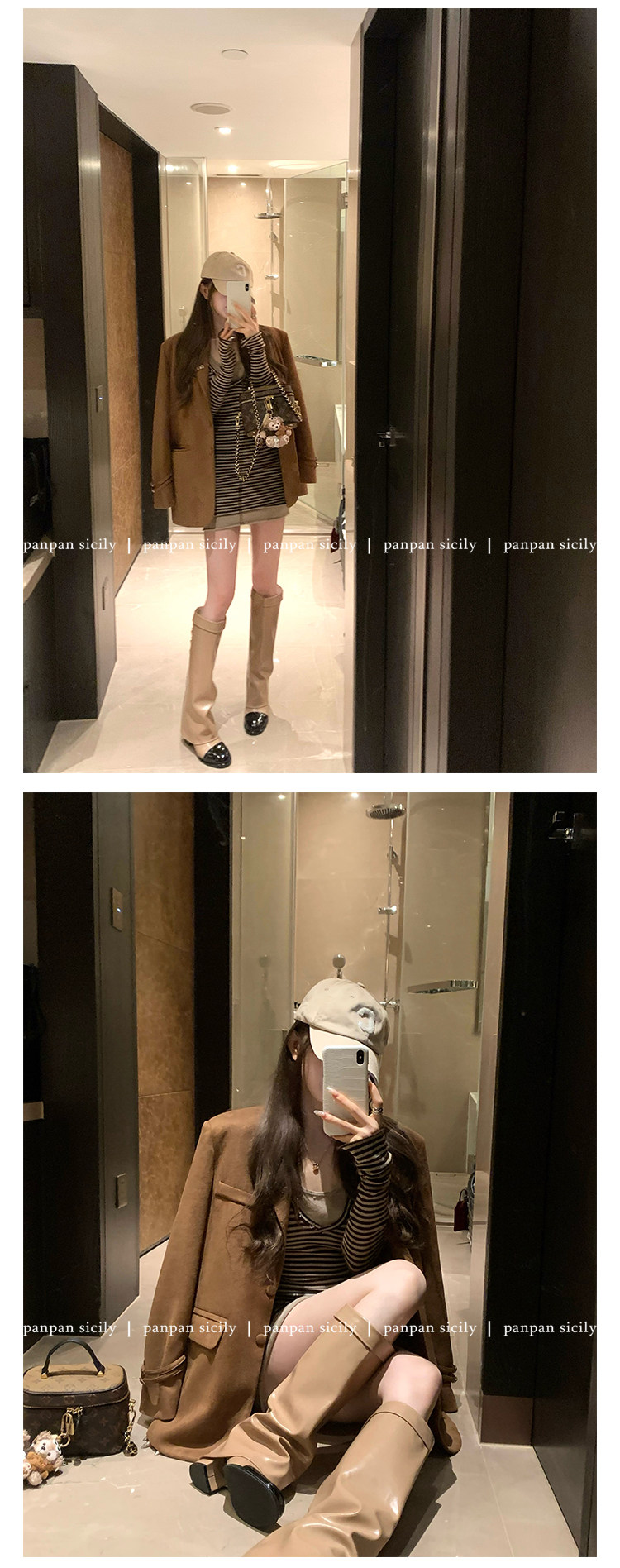 但是正面看是偏窄的靴筒 菲常顯腿直!