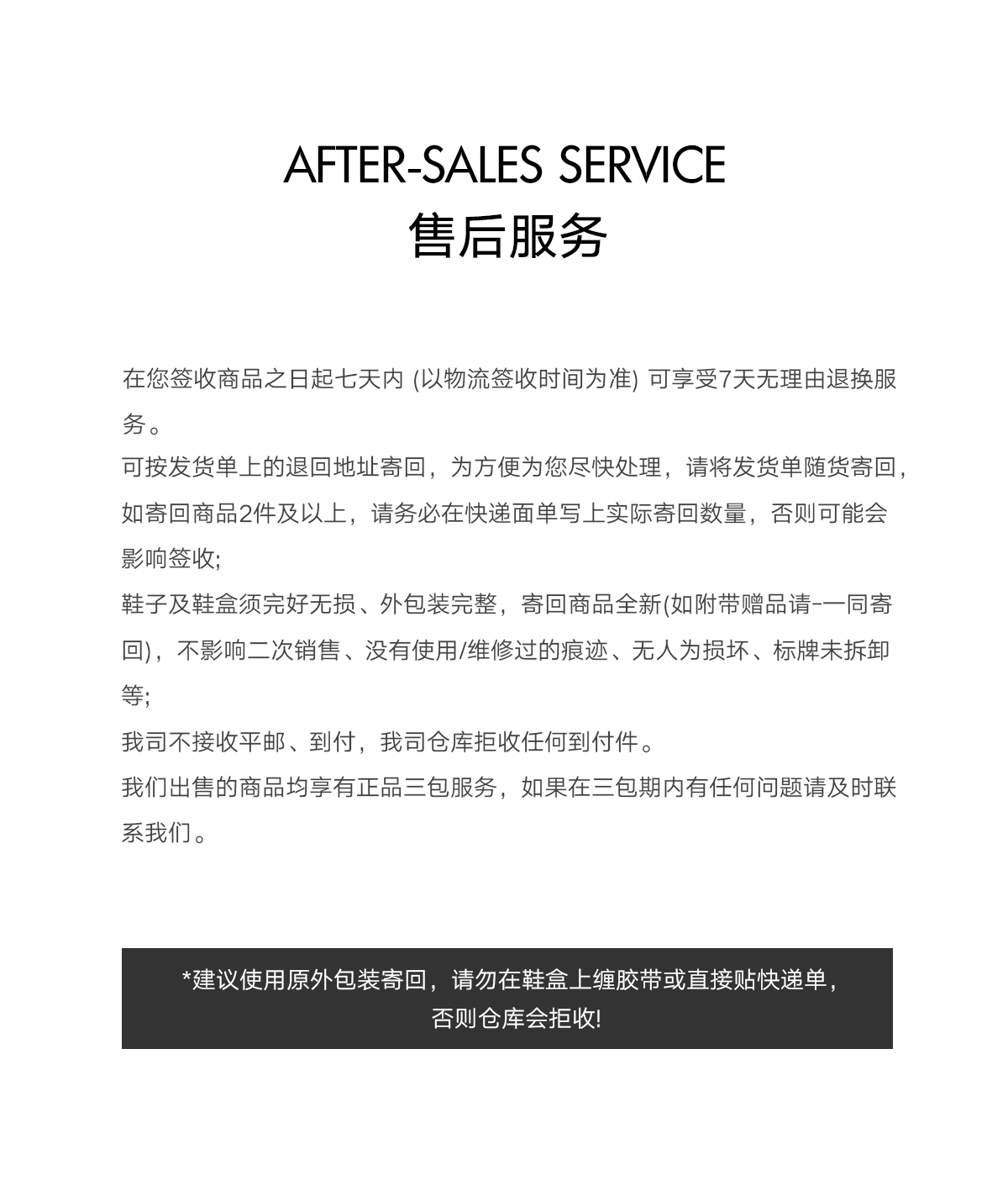 因商品為海外寄送,若拒收包裹,包裹將會退回海關並被銷毀,且訂單款項不會退款。請務必在下單前確認收件地址及商品內容無誤。