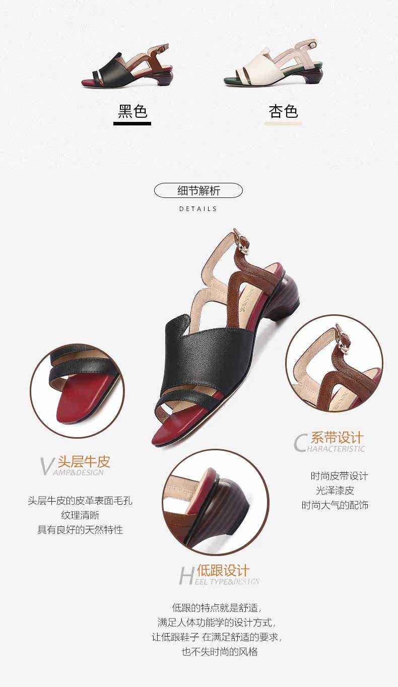 LEYAES低跟魚嘴涼鞋女2020夏季新款粗跟真皮后空涼鞋大碼四季鞋
