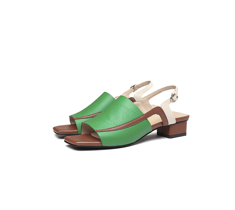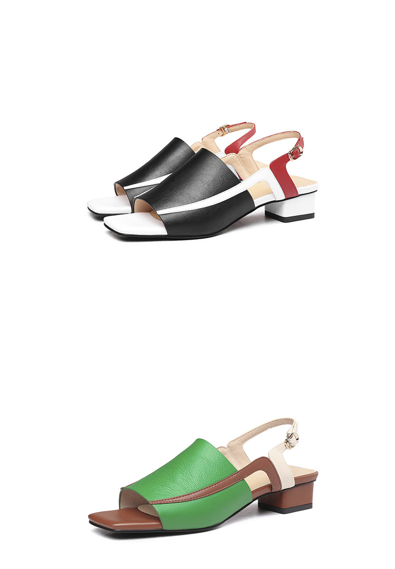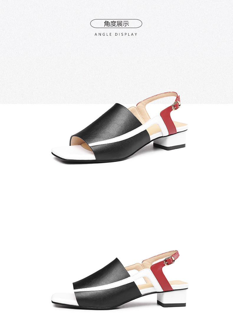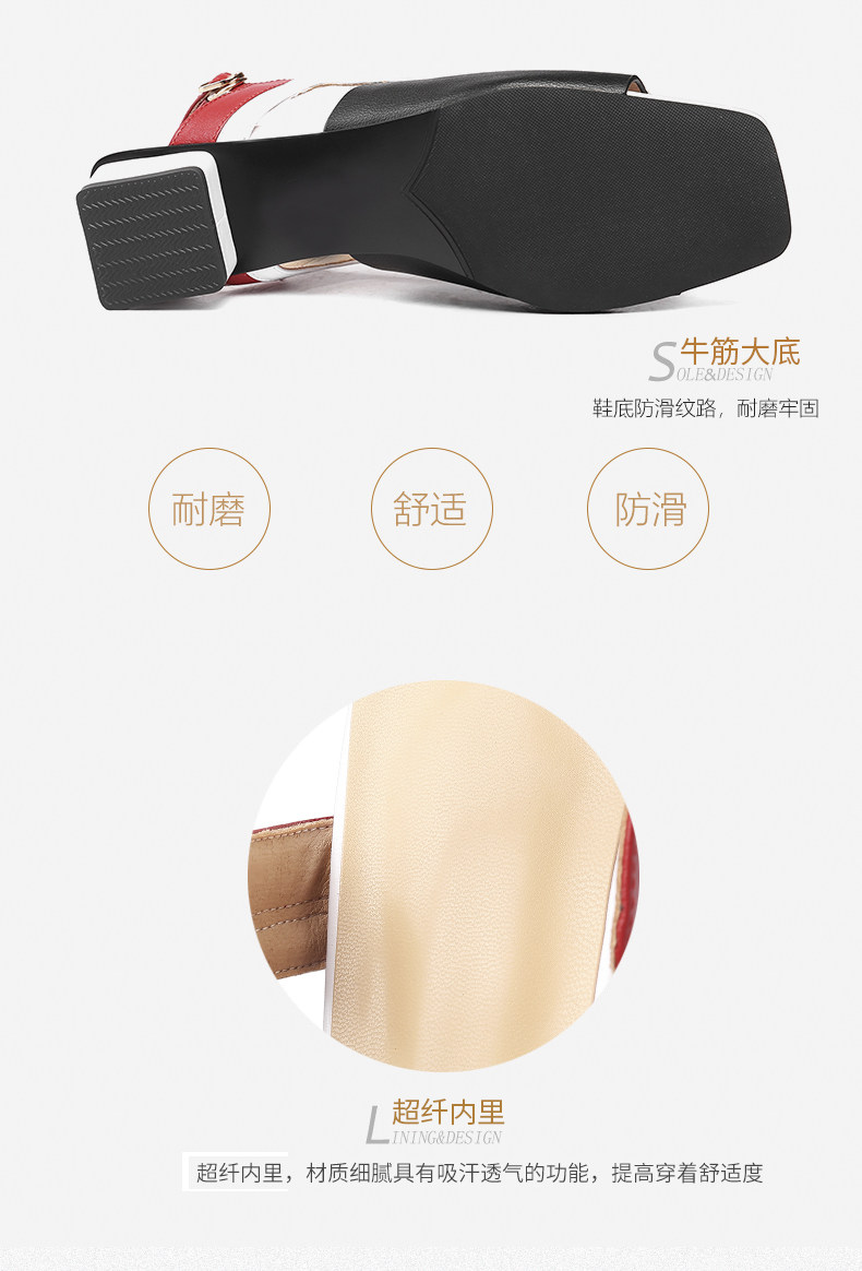 粗跟涼鞋女2020夏季新款真皮中跟方頭魚嘴露趾涼鞋一字羅馬女涼鞋