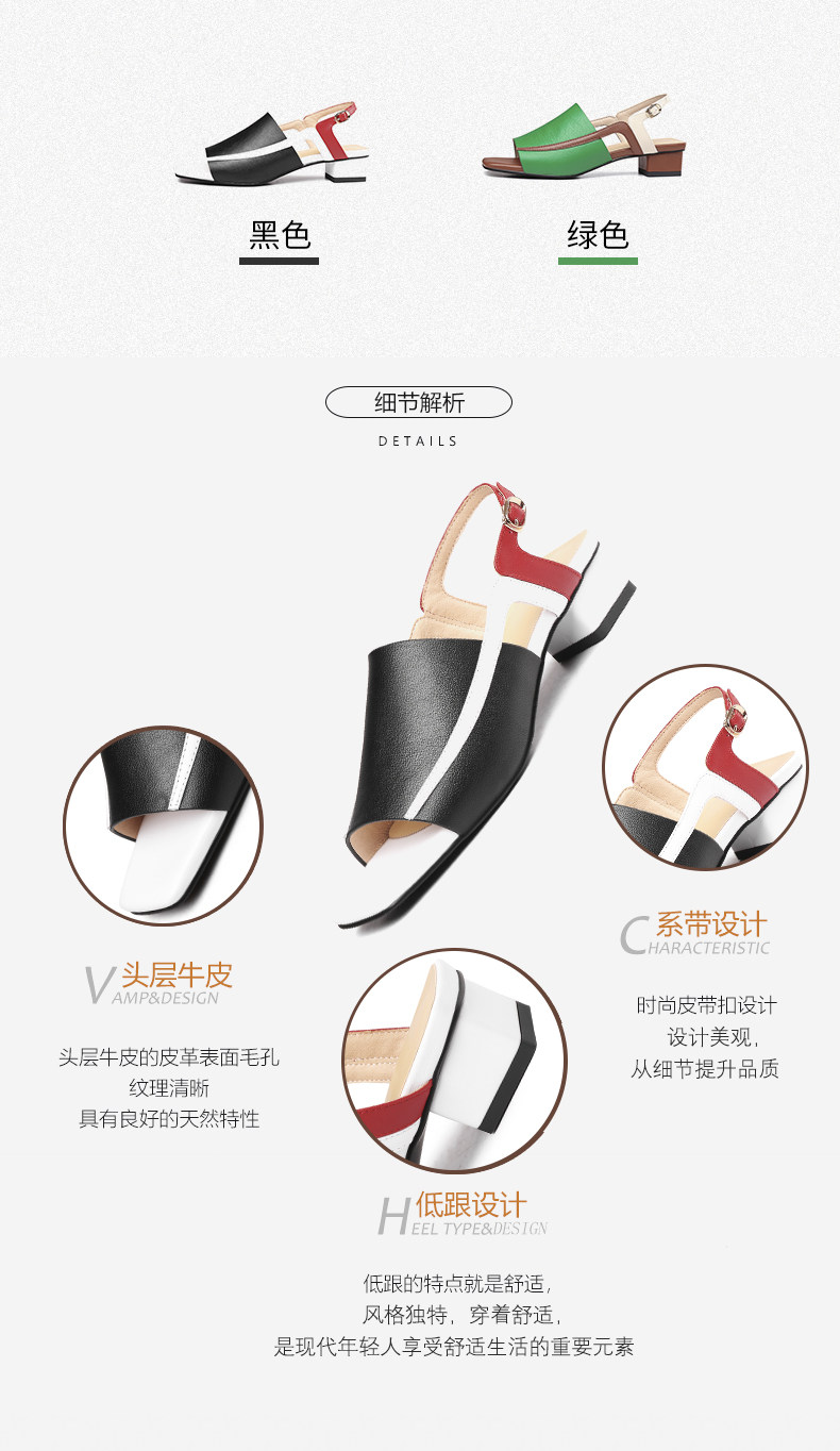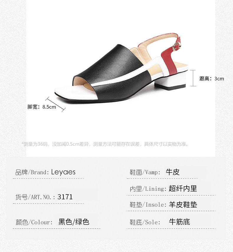 LEYAES低跟魚嘴涼鞋女2020夏季新款粗跟真皮后空涼鞋大碼四季鞋