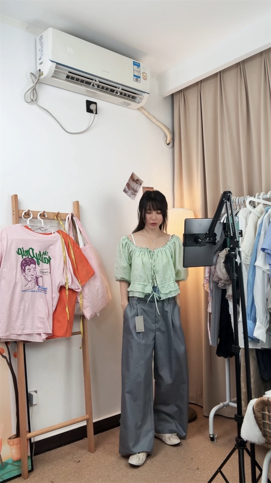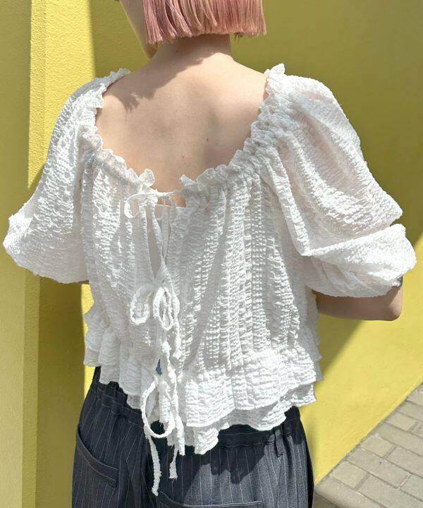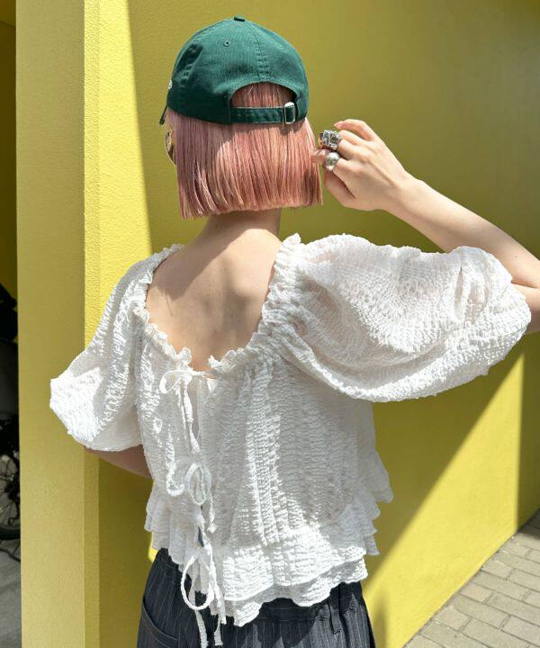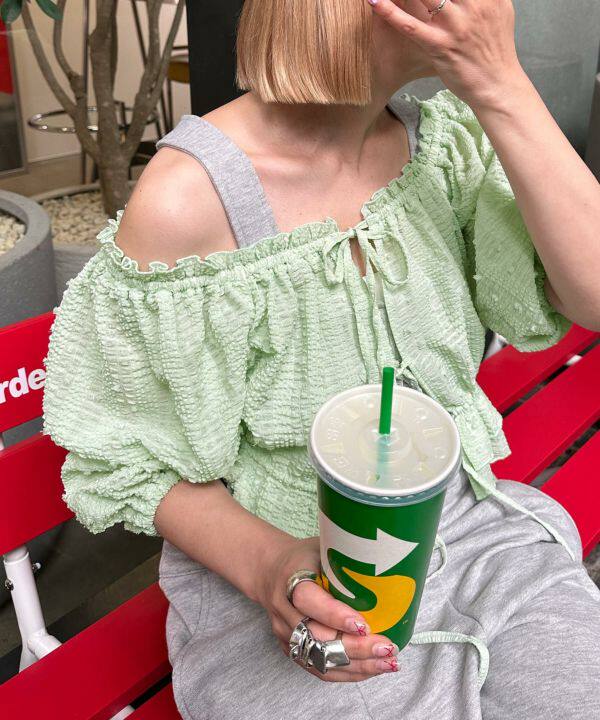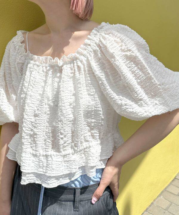 前后都可以穿,泡泡袖子5分袖長度遮手臂