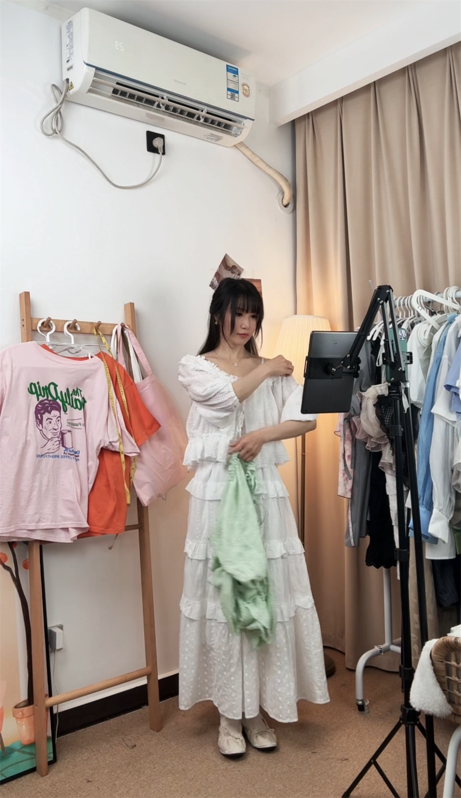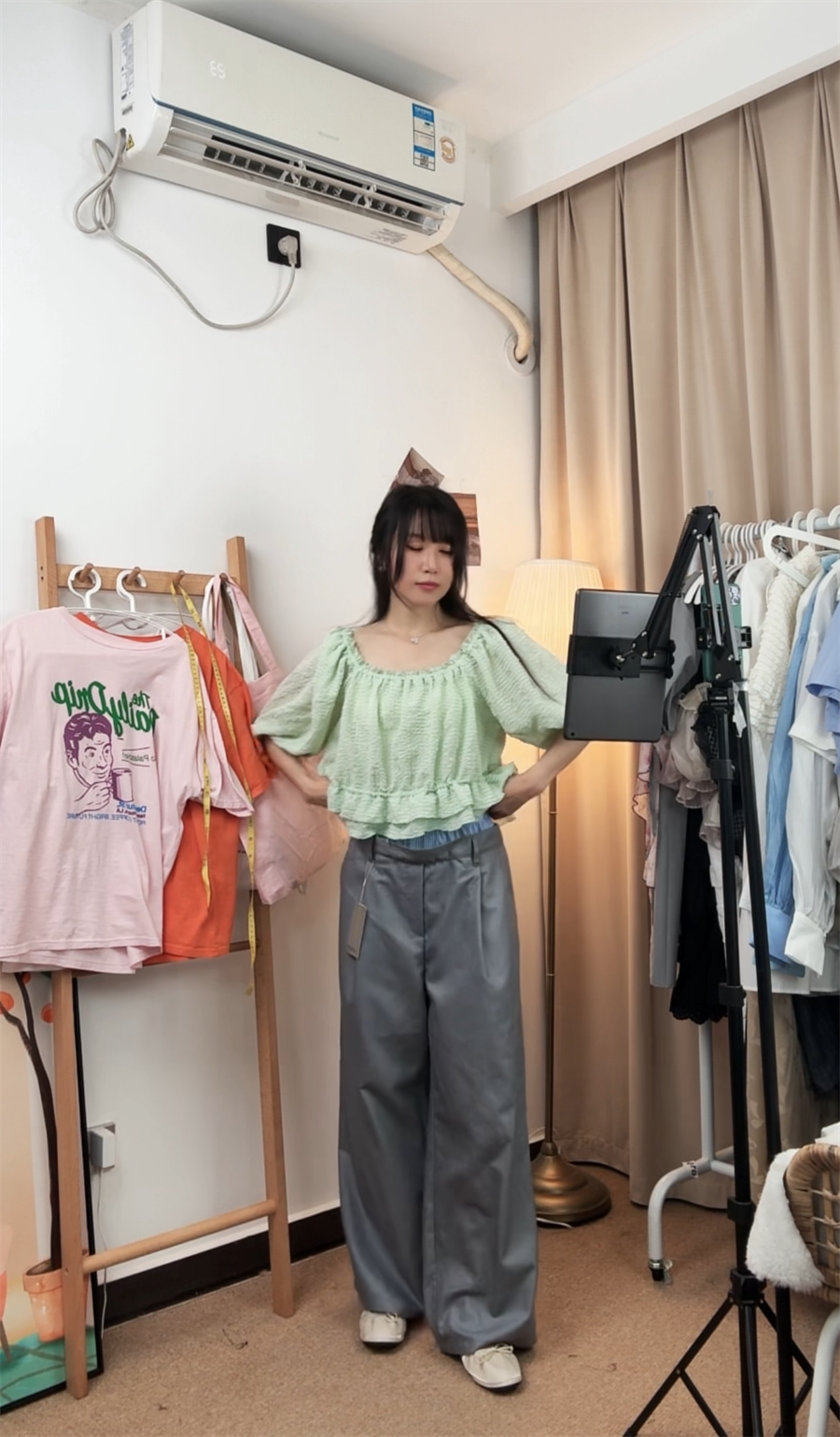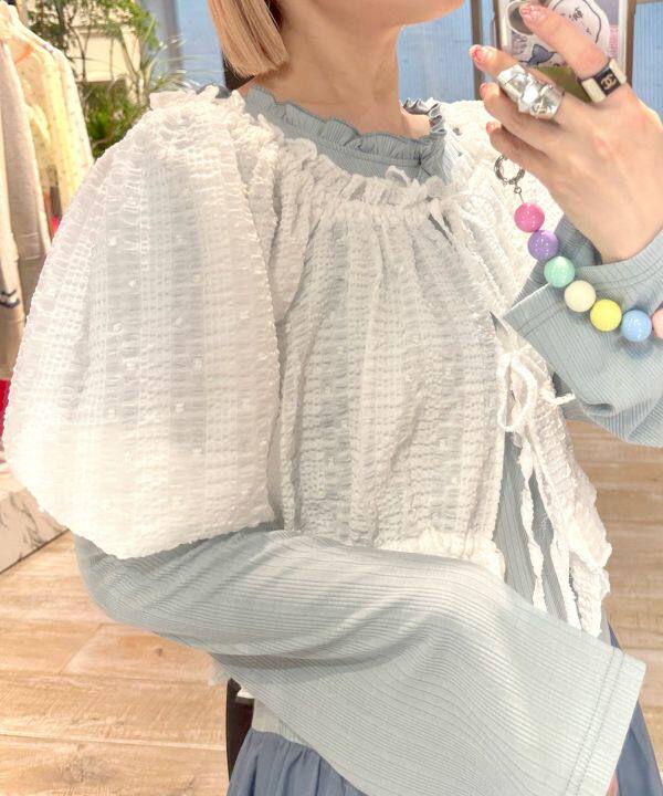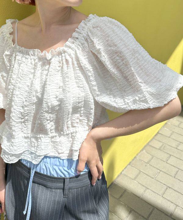 可愛又清爽,小方領是松緊的,領口是甜甜的花邊褶皺
