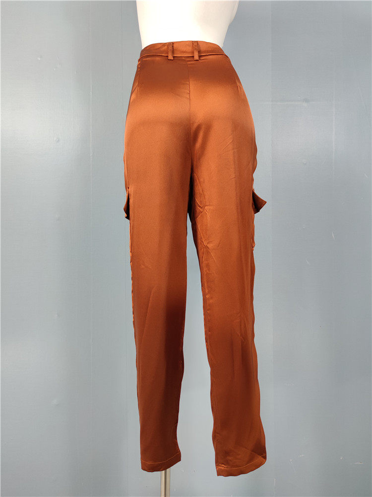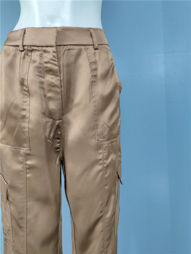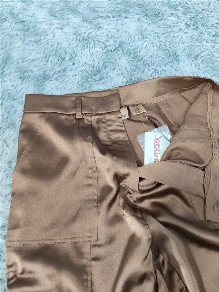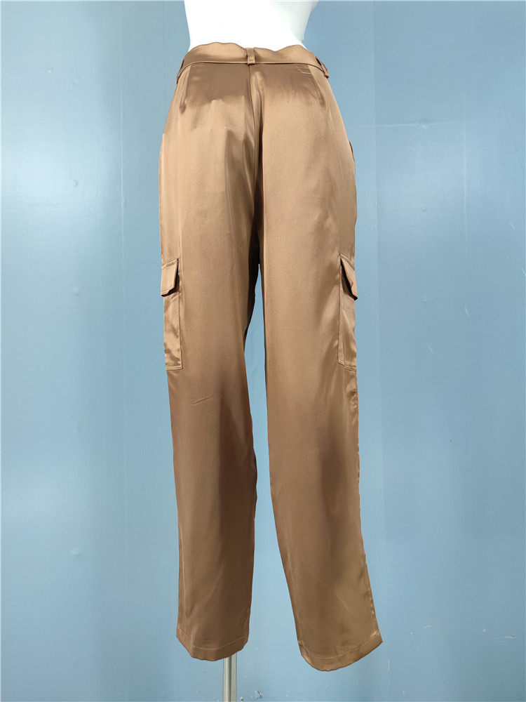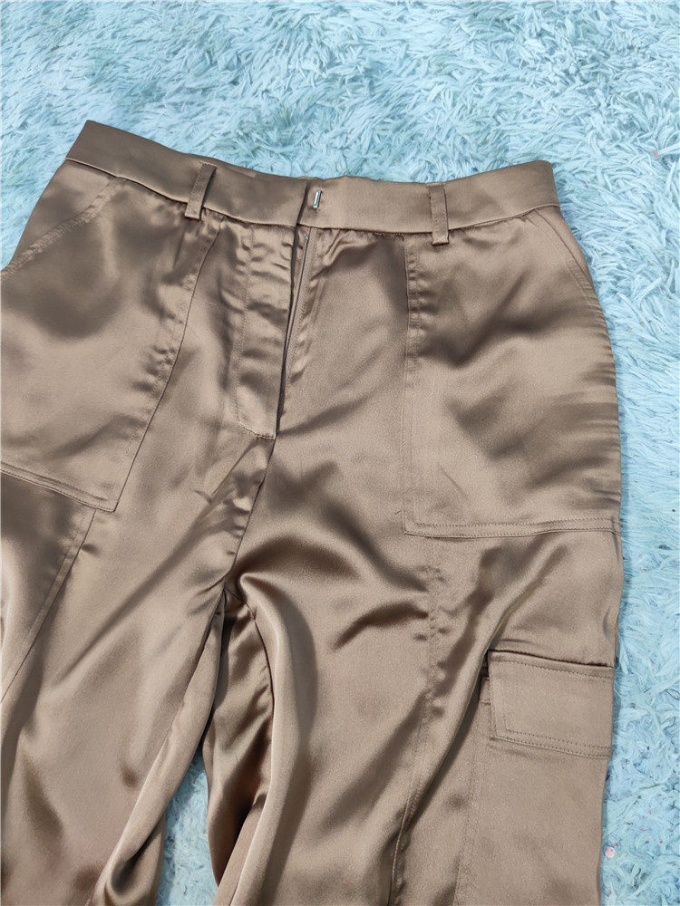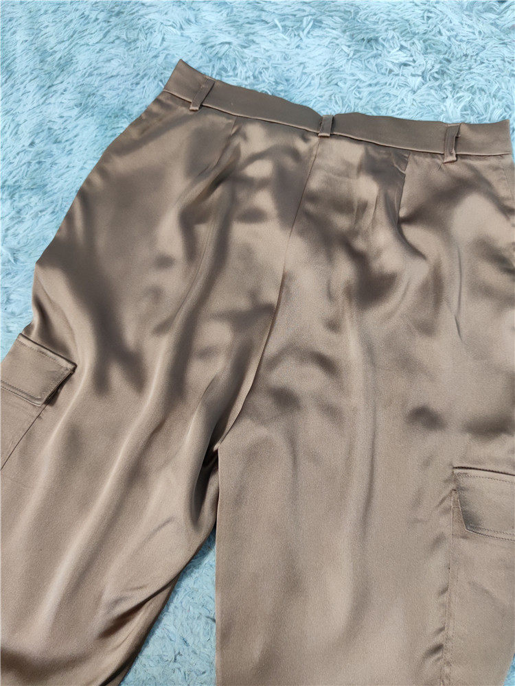 外貿單高貨質感光滑緞面高腰名媛氣場長褲唯美口袋裝飾個性親膚褲