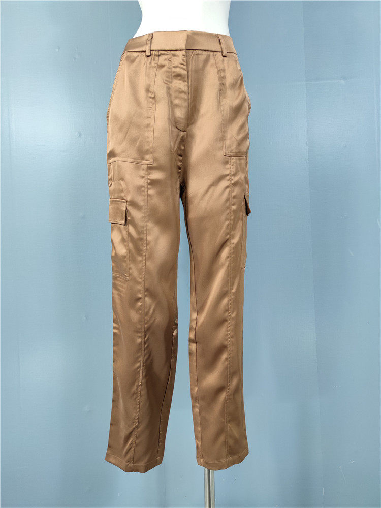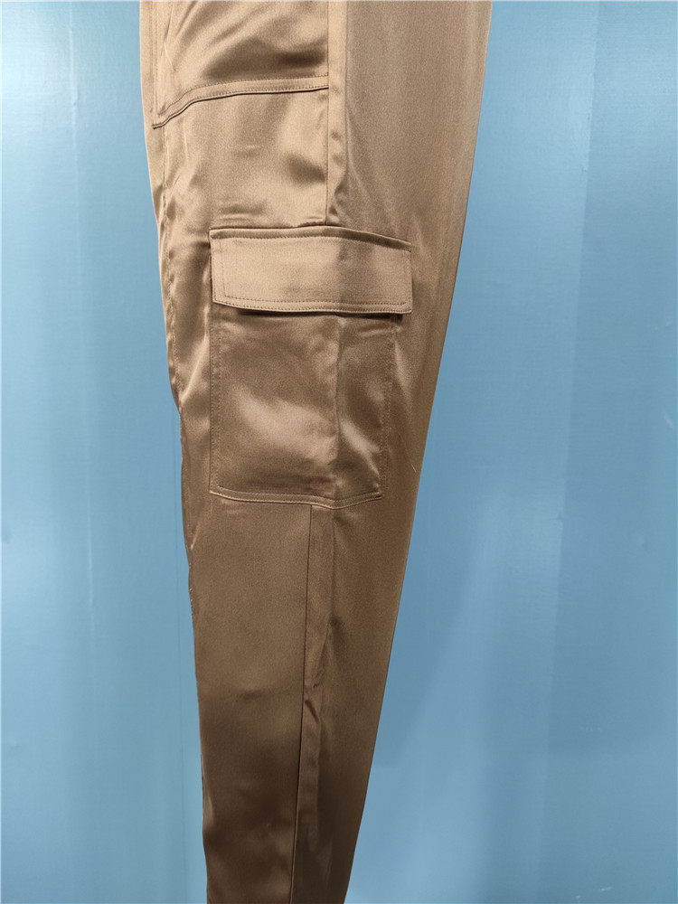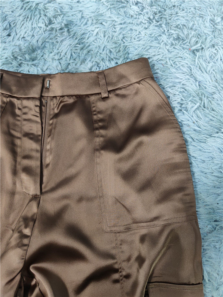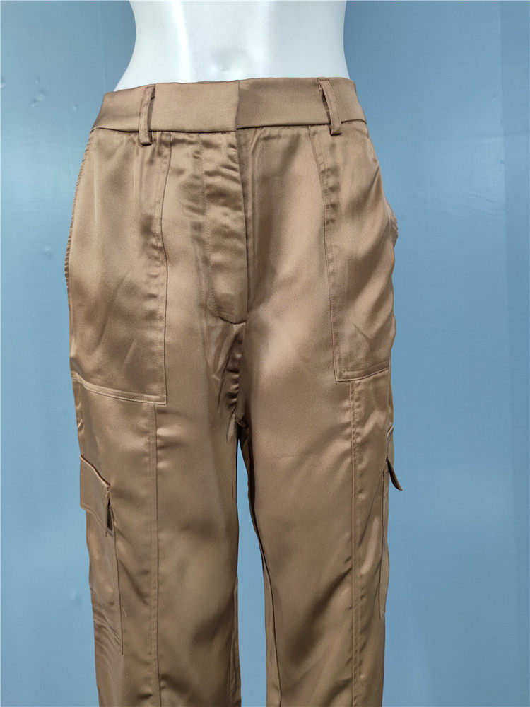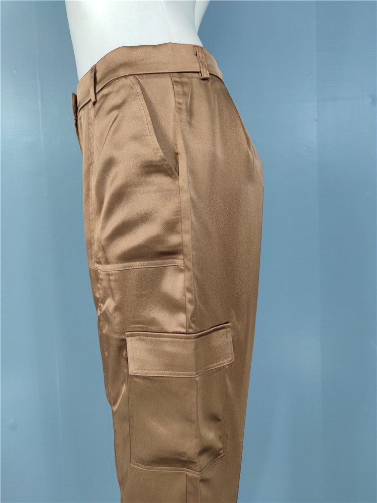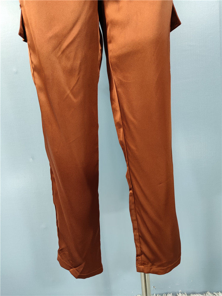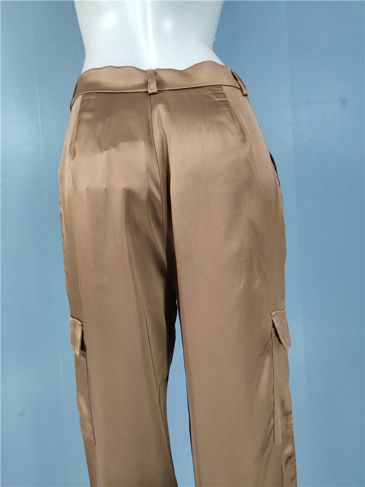 外貿單高貨質感光滑緞面高腰名媛氣場長褲唯美口袋裝飾個性親膚褲