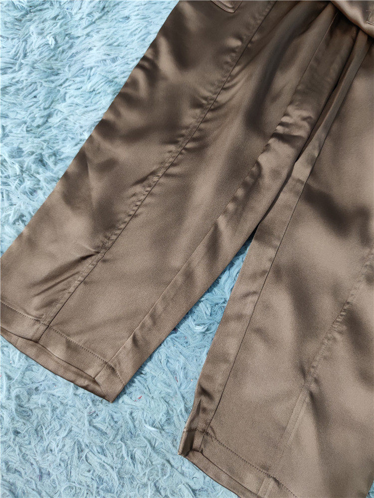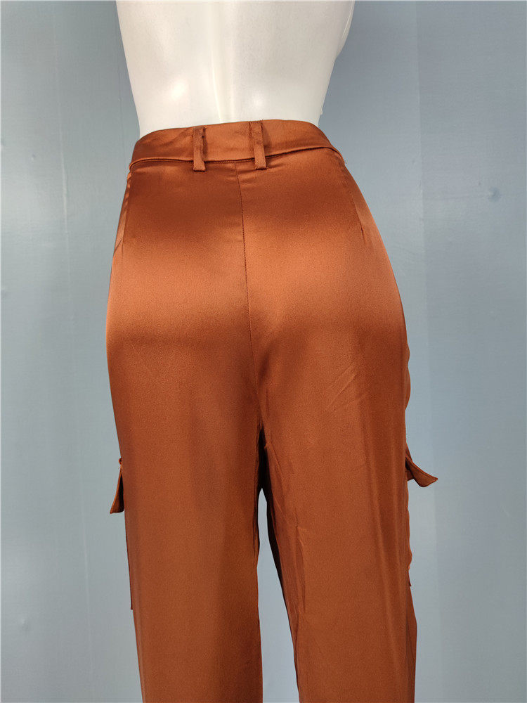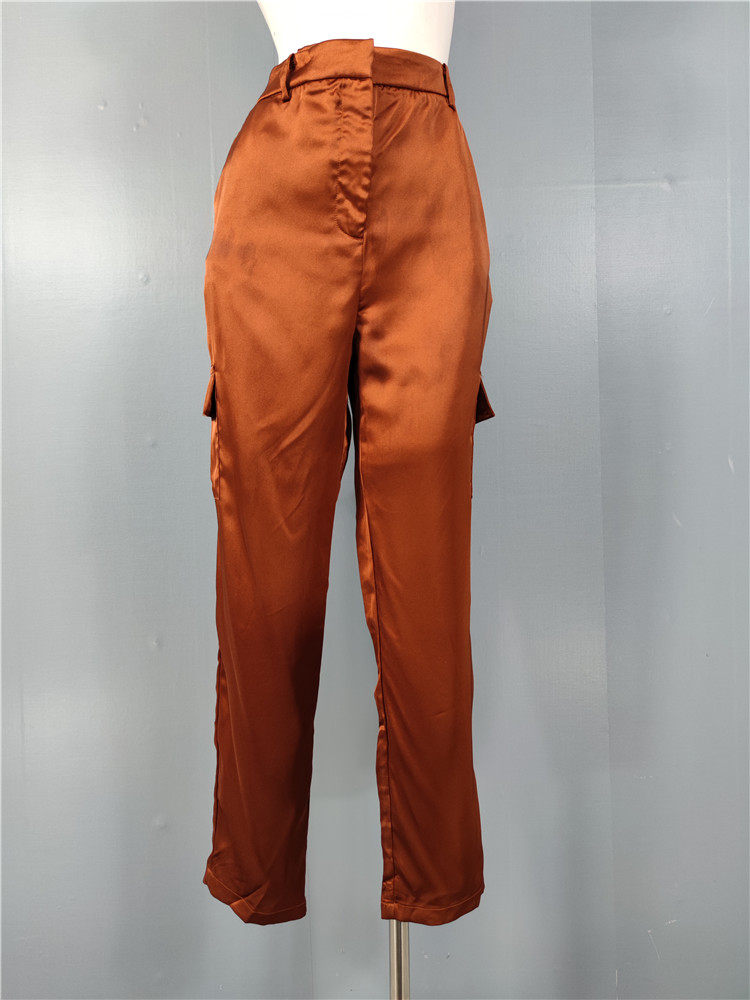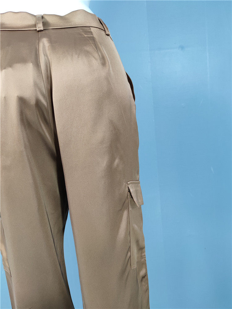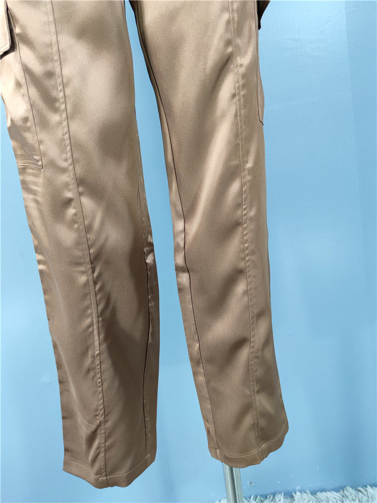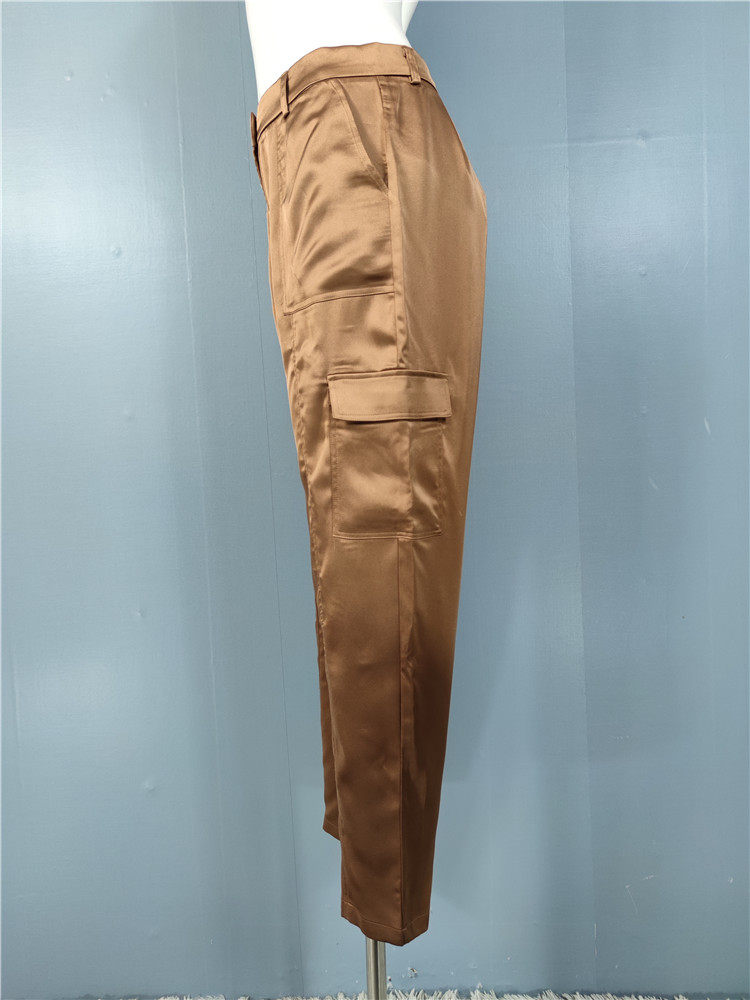 外貿單高貨質感光滑緞面高腰名媛氣場長褲唯美口袋裝飾個性親膚褲