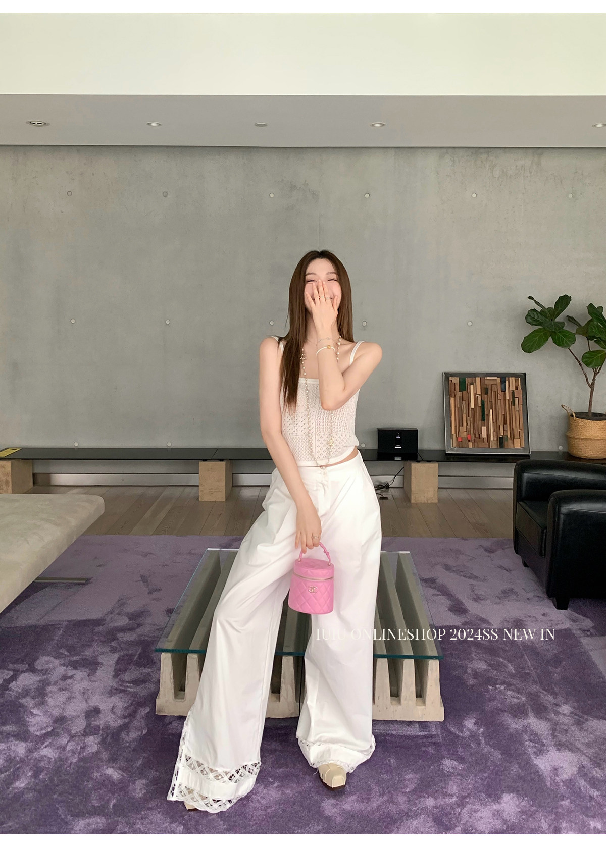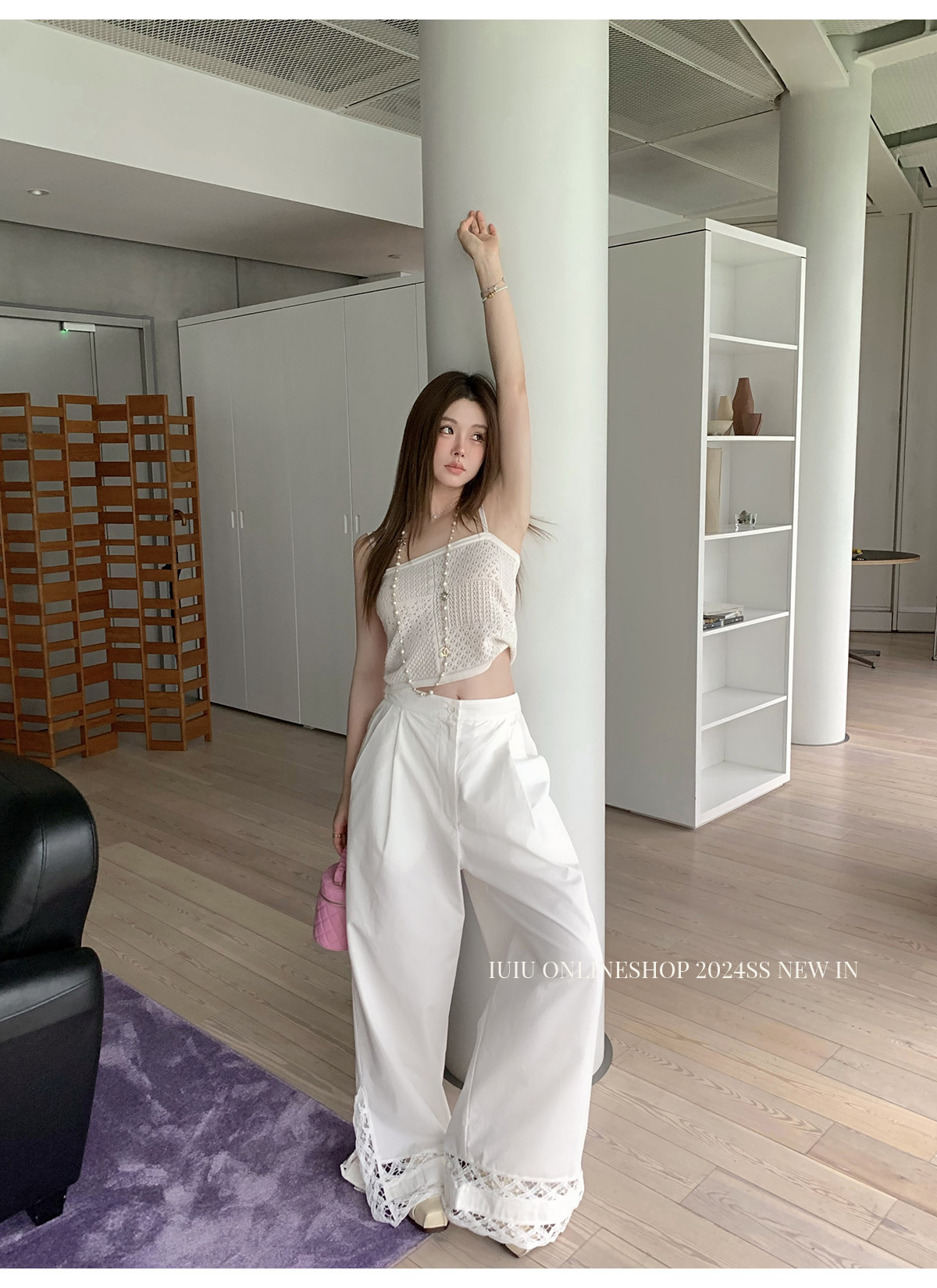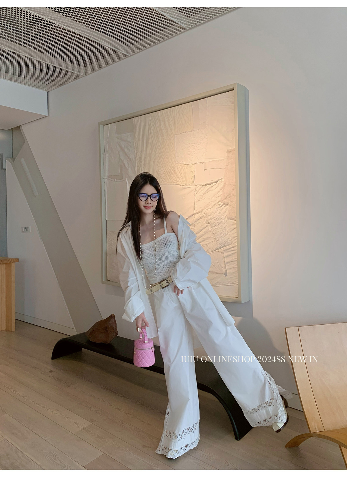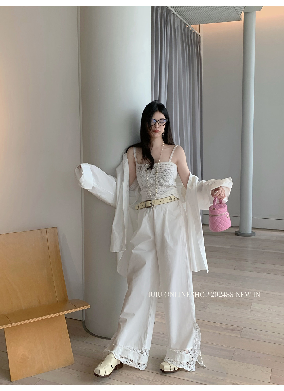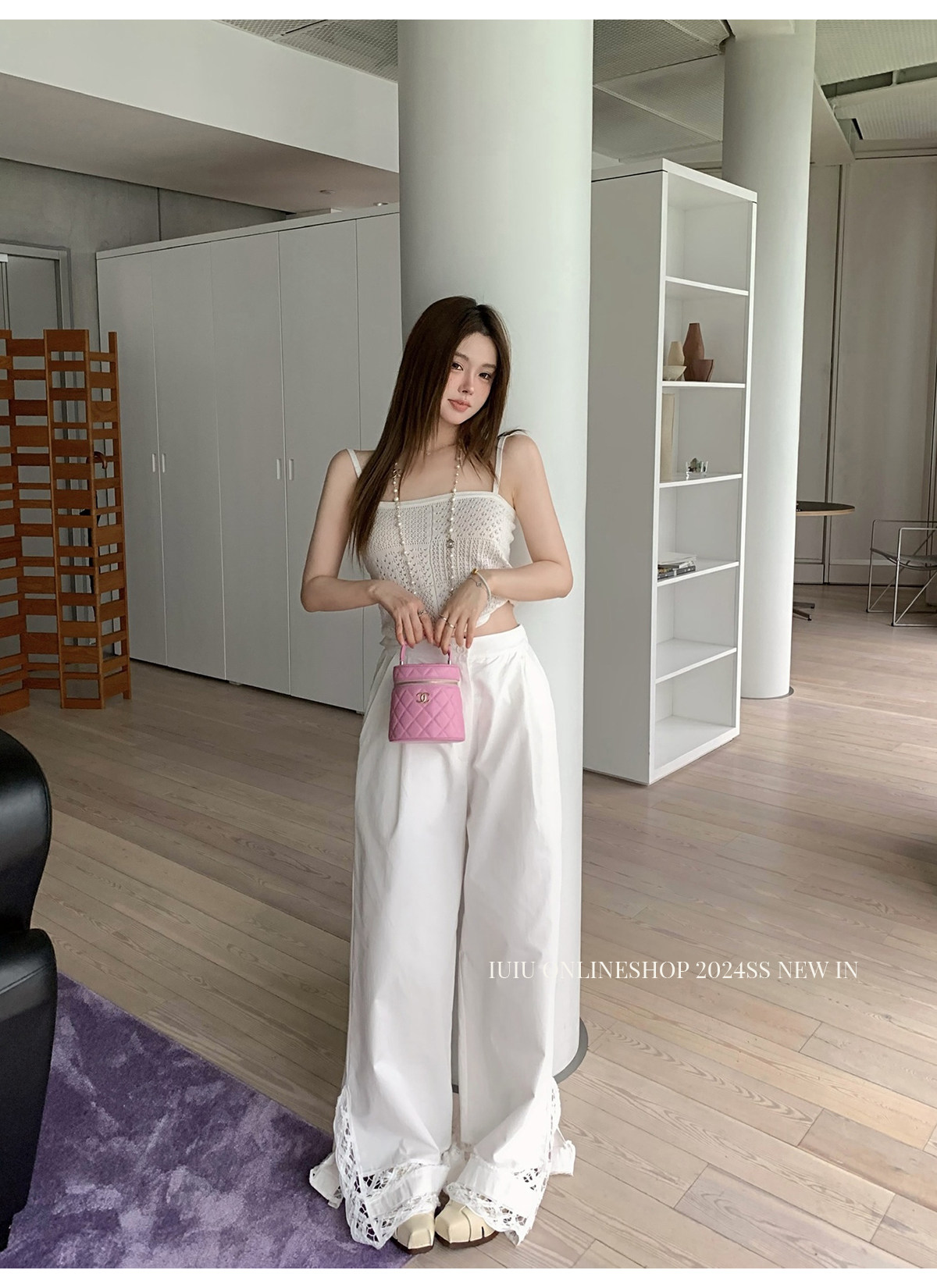 下裝是蕾絲花邊拼接的休閑褲