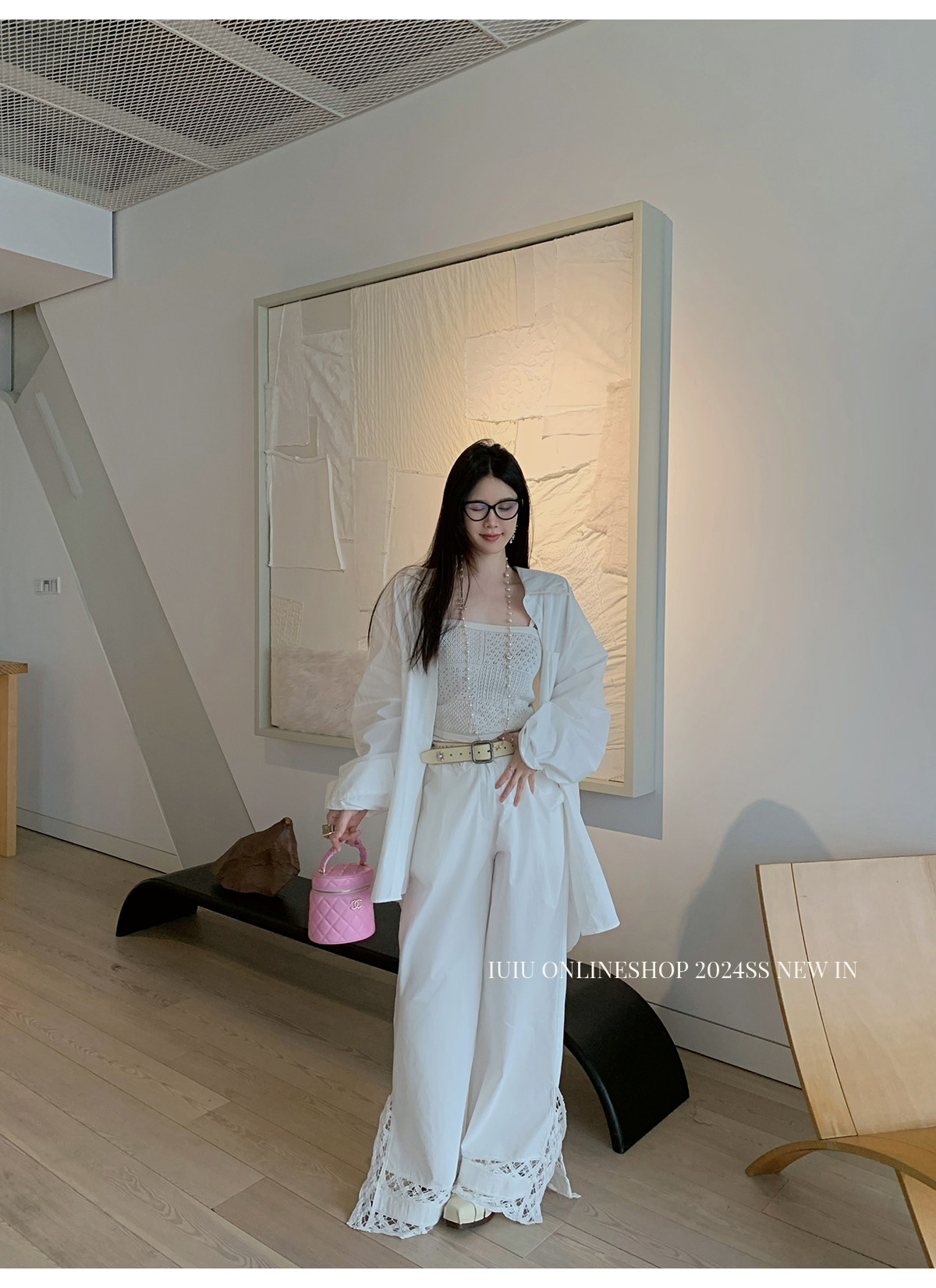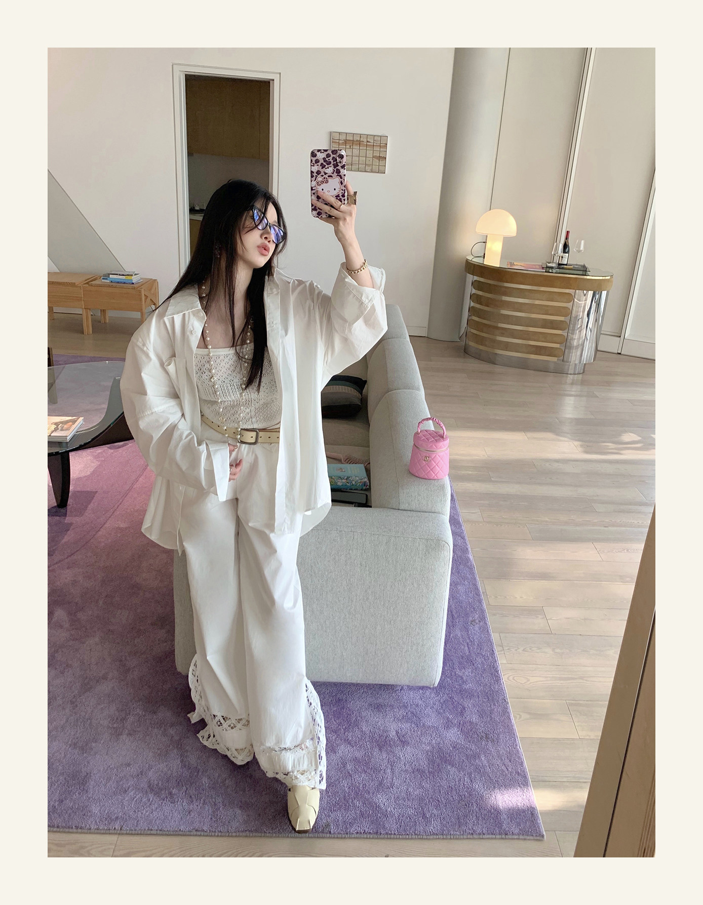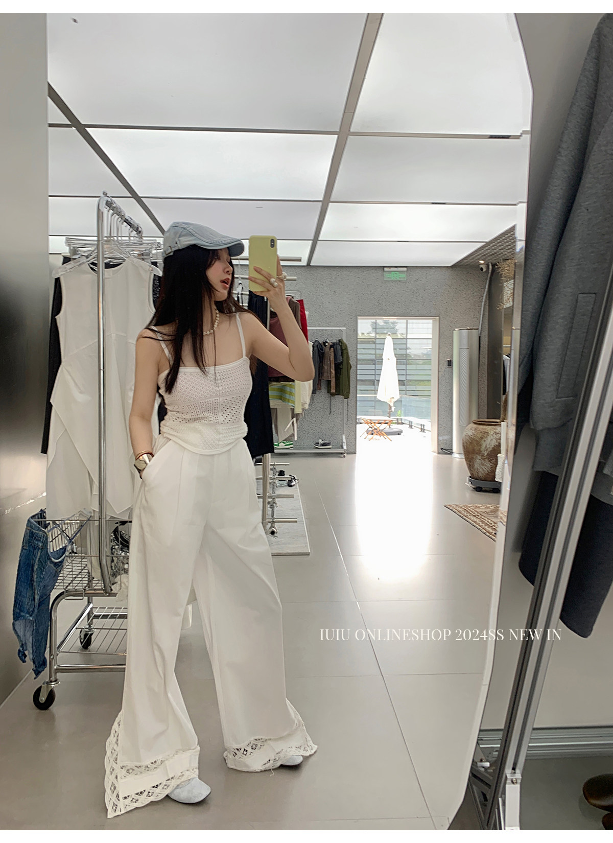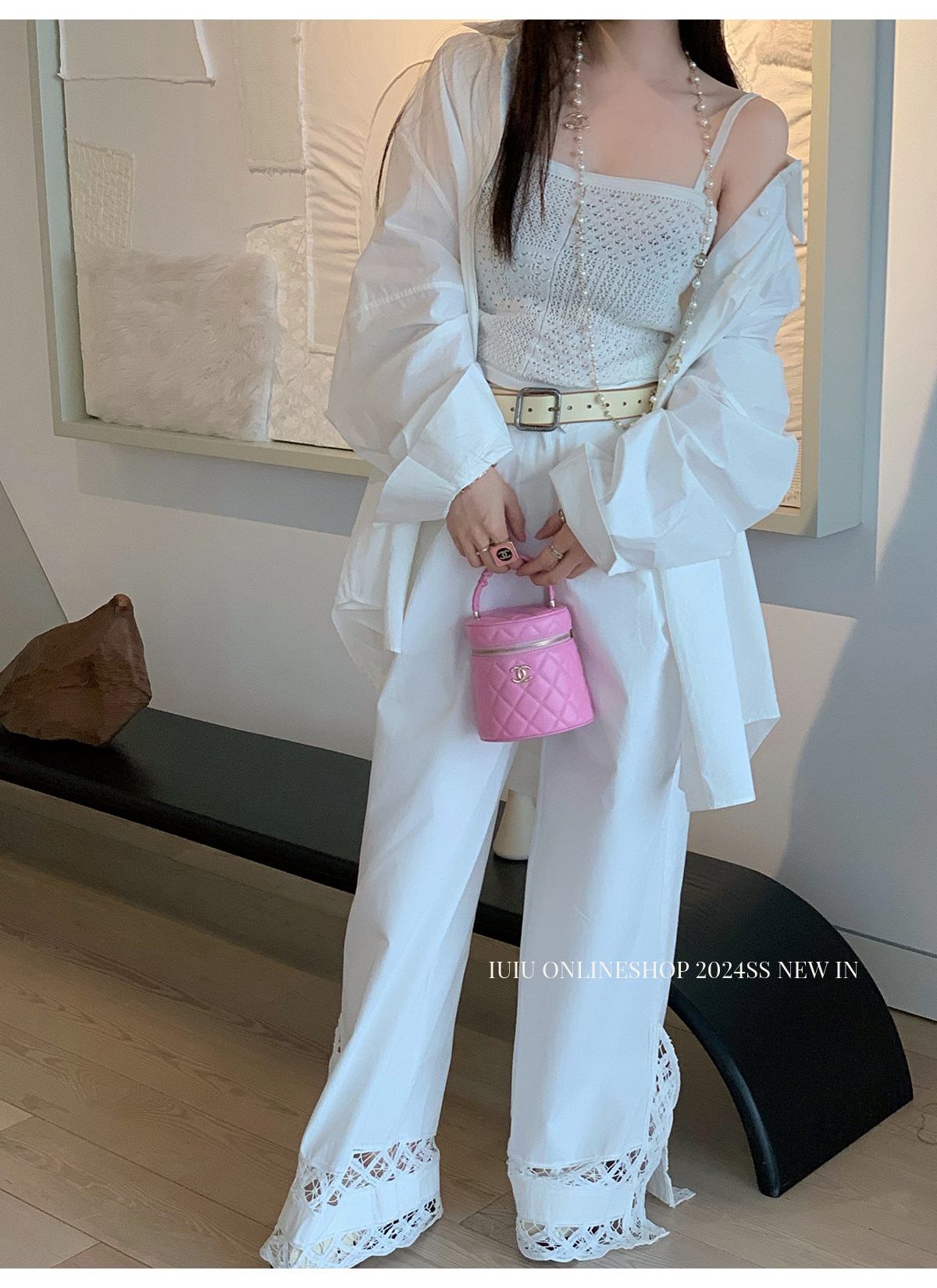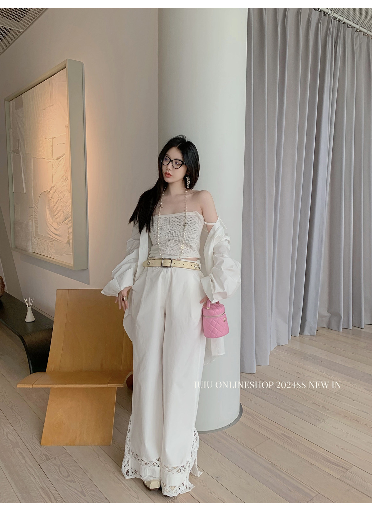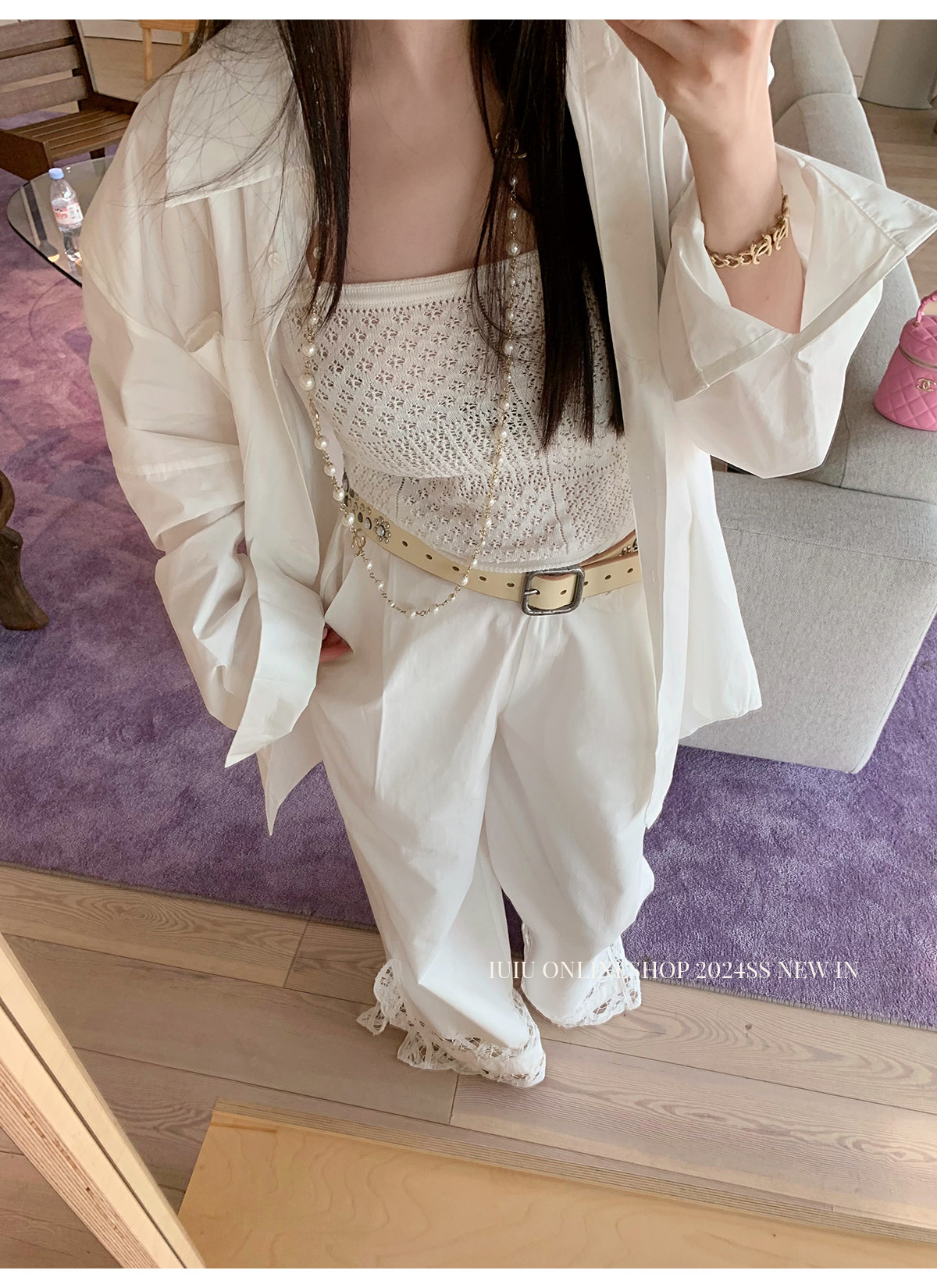 下裝是蕾絲花邊拼接的休閑褲