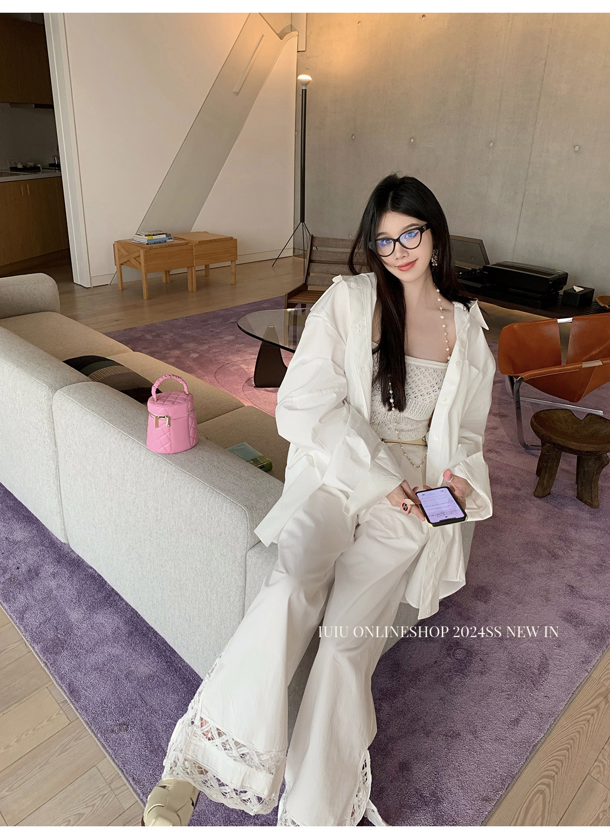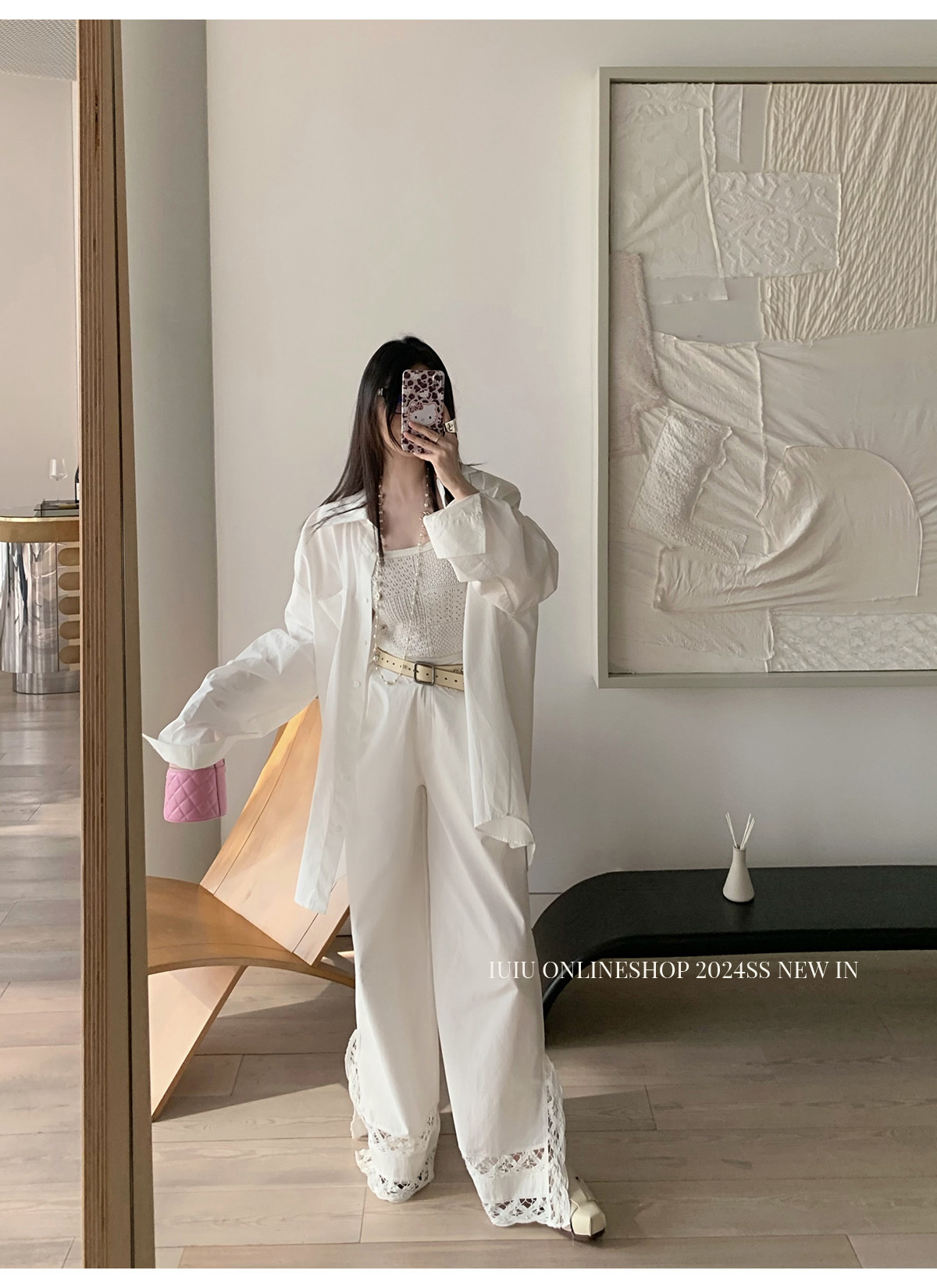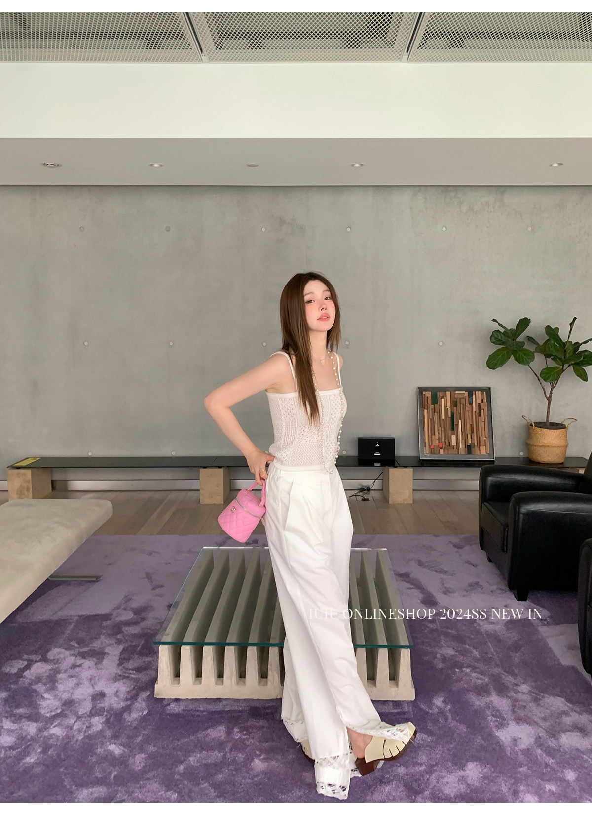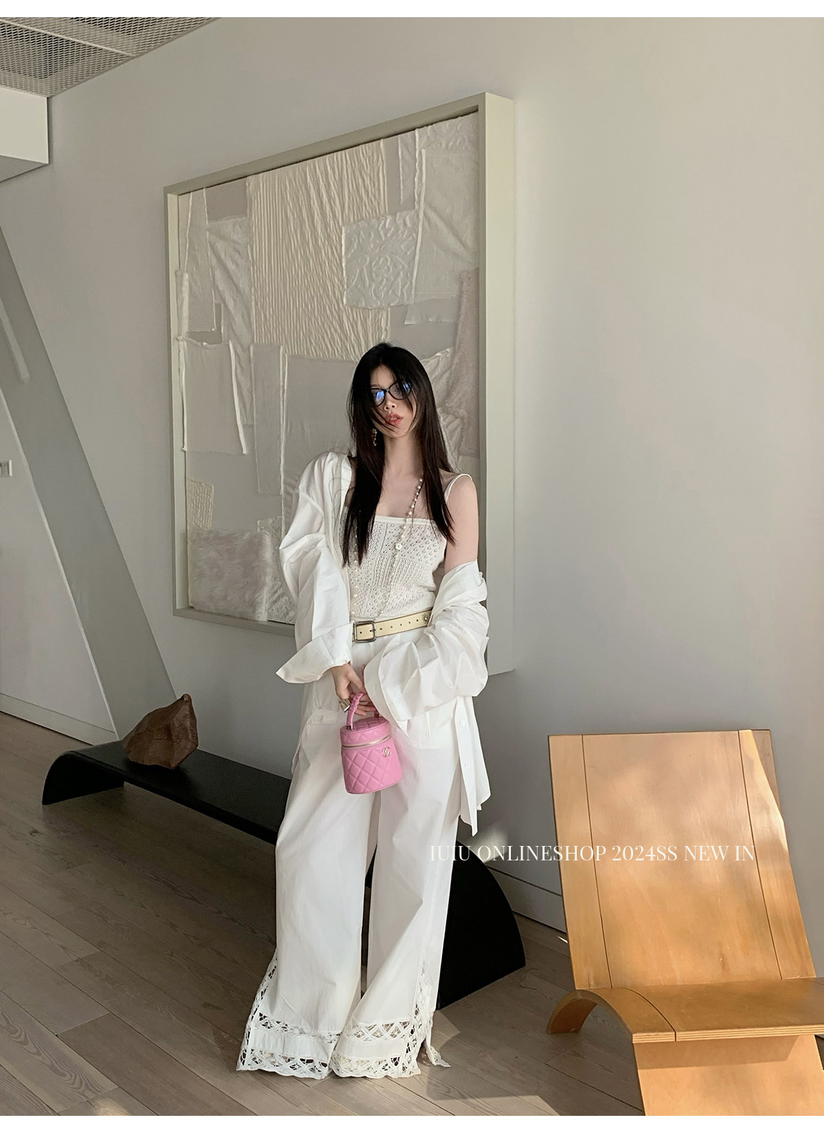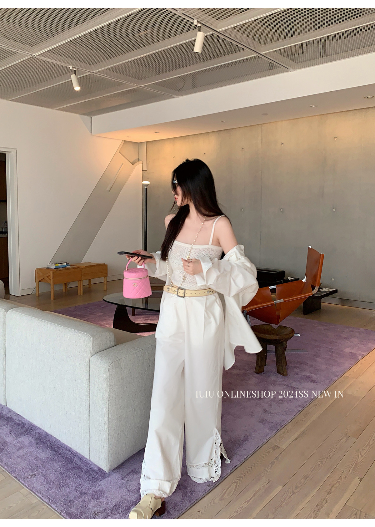 下裝是蕾絲花邊拼接的休閑褲