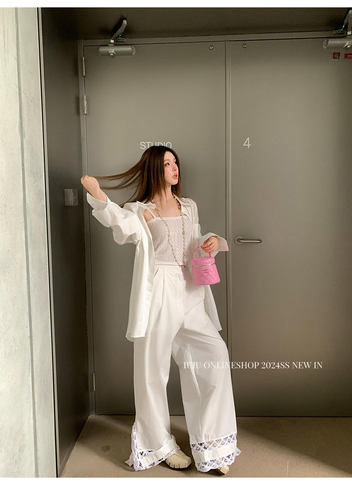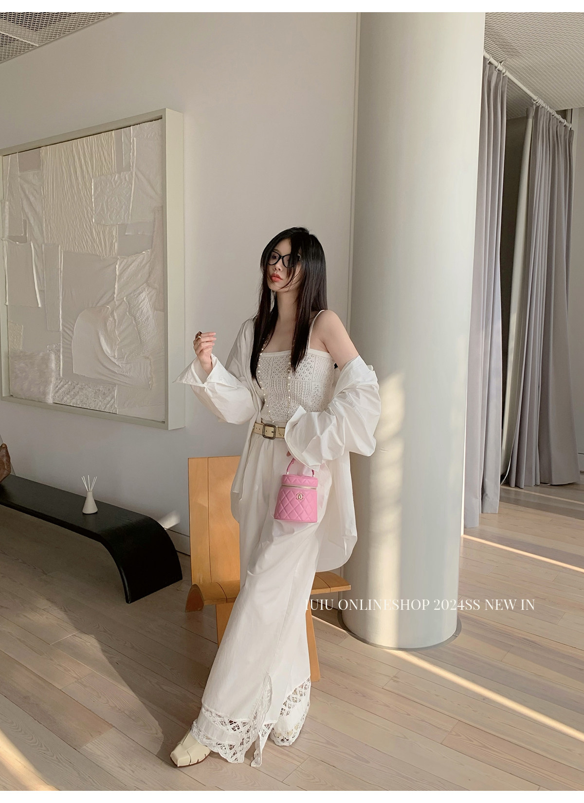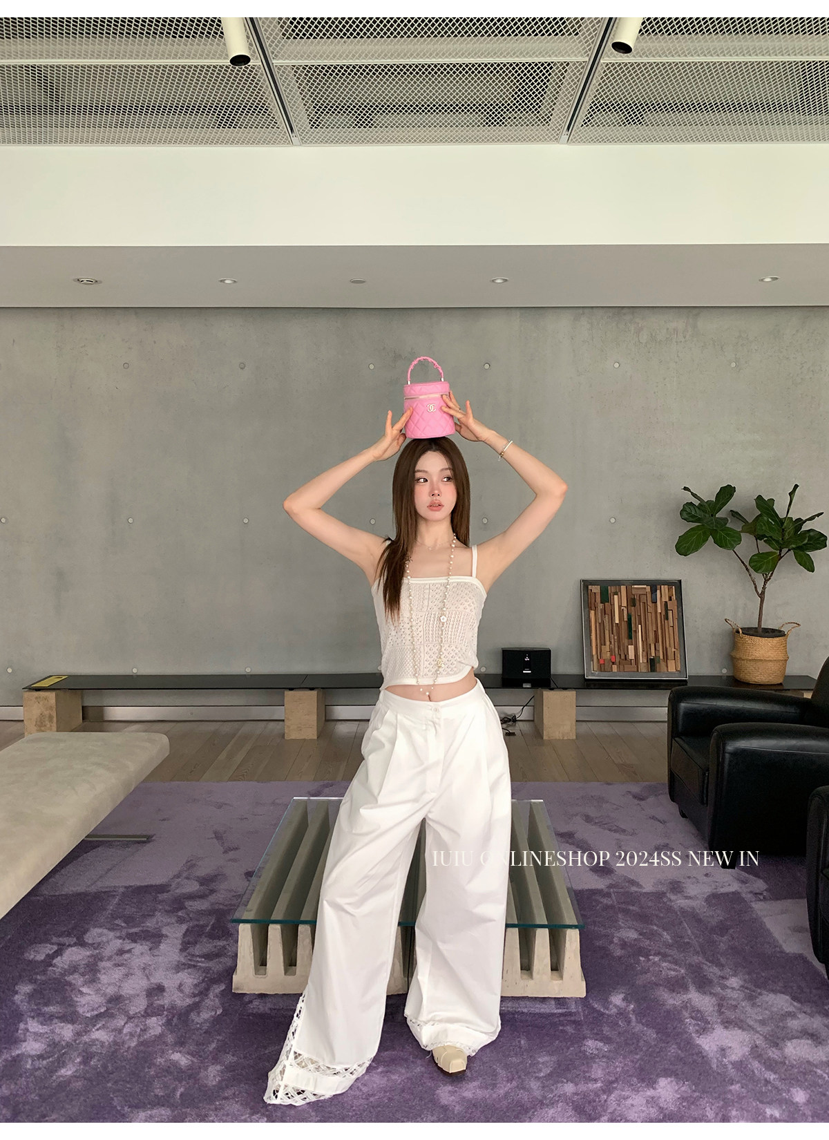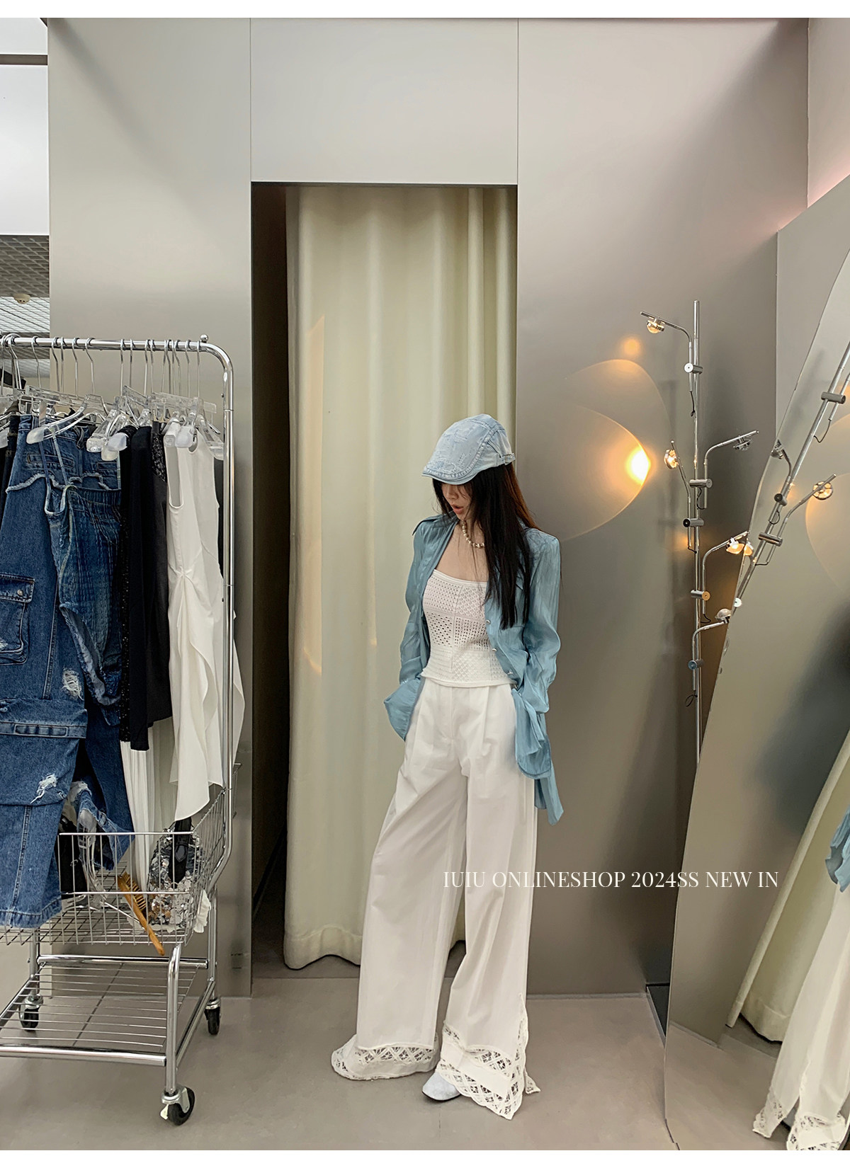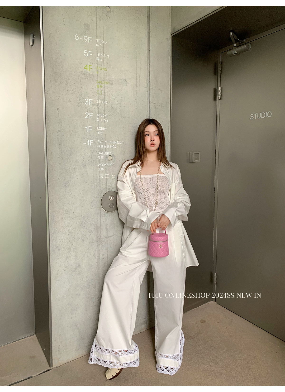 下裝是蕾絲花邊拼接的休閑褲