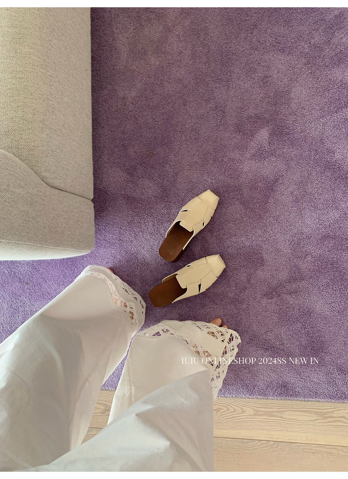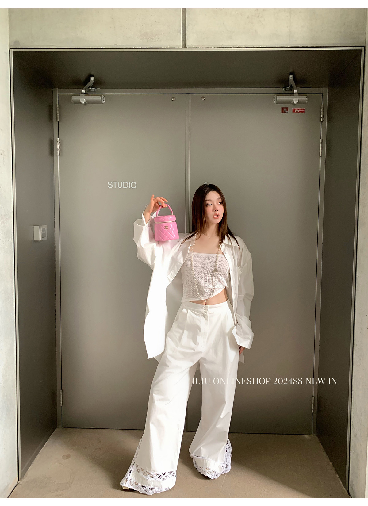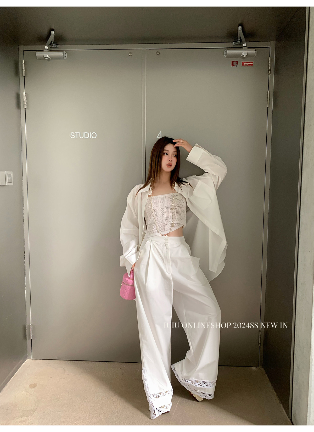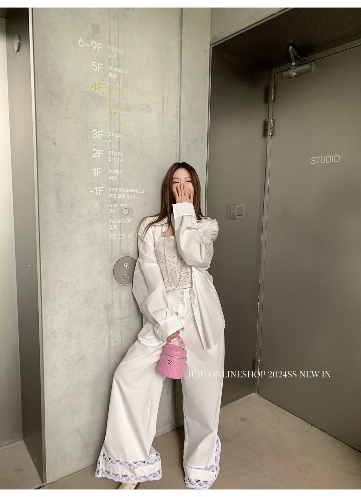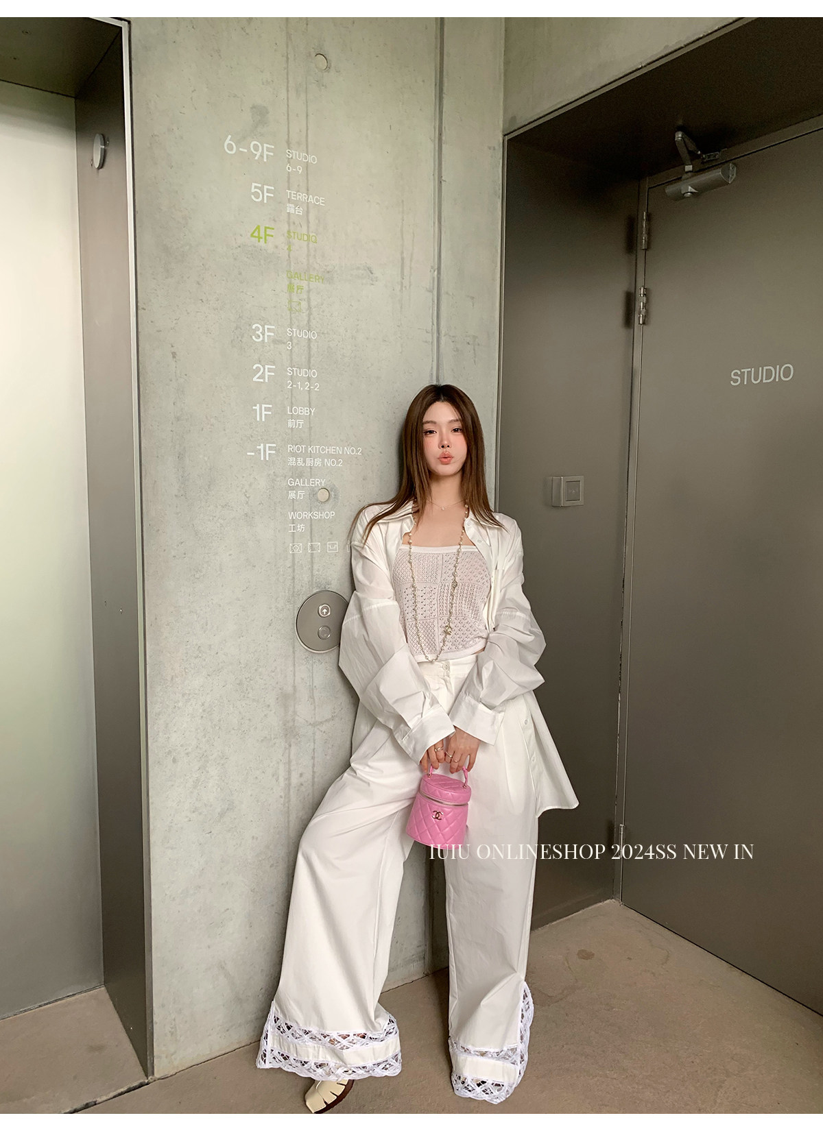 下裝是蕾絲花邊拼接的休閑褲