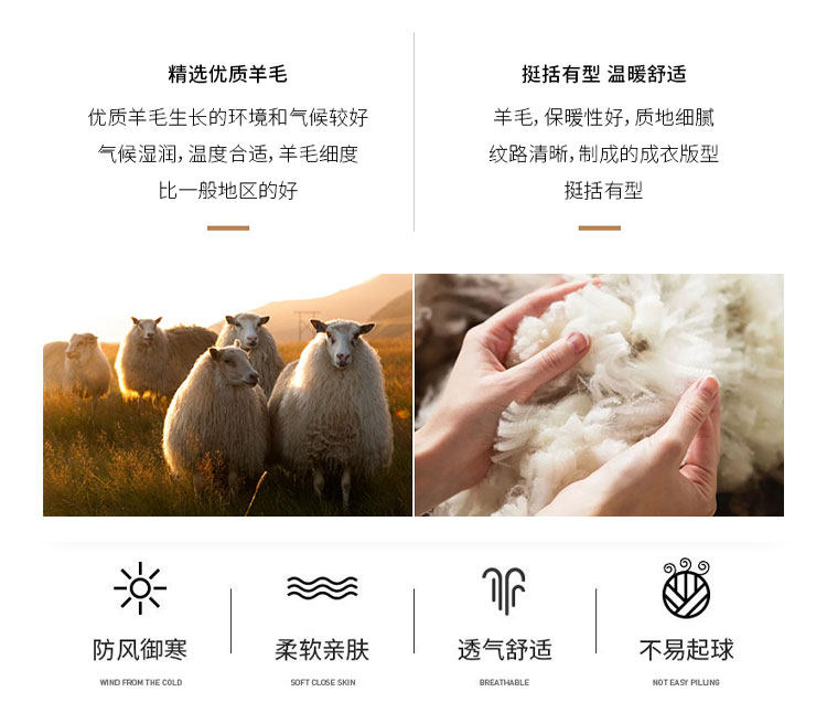 全羊毛面料,挺括不變形,抗皺效果JI佳