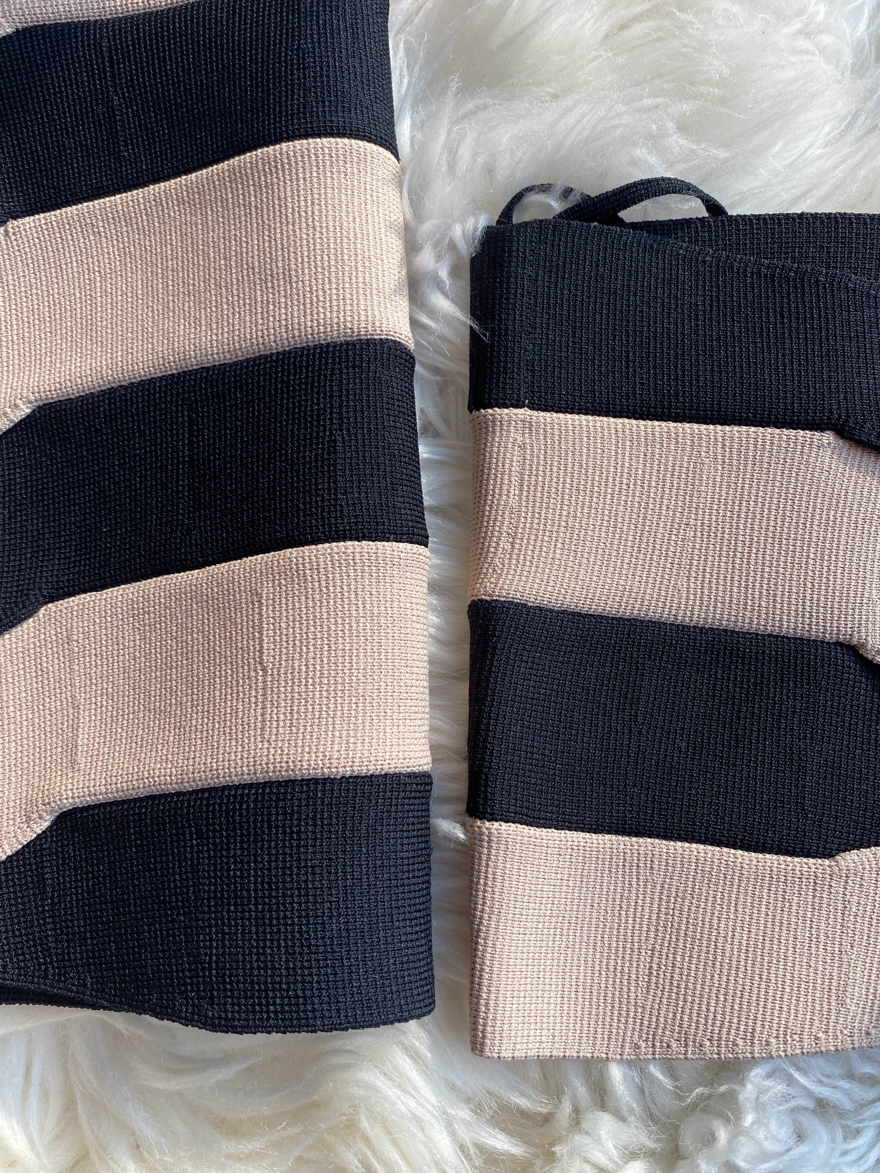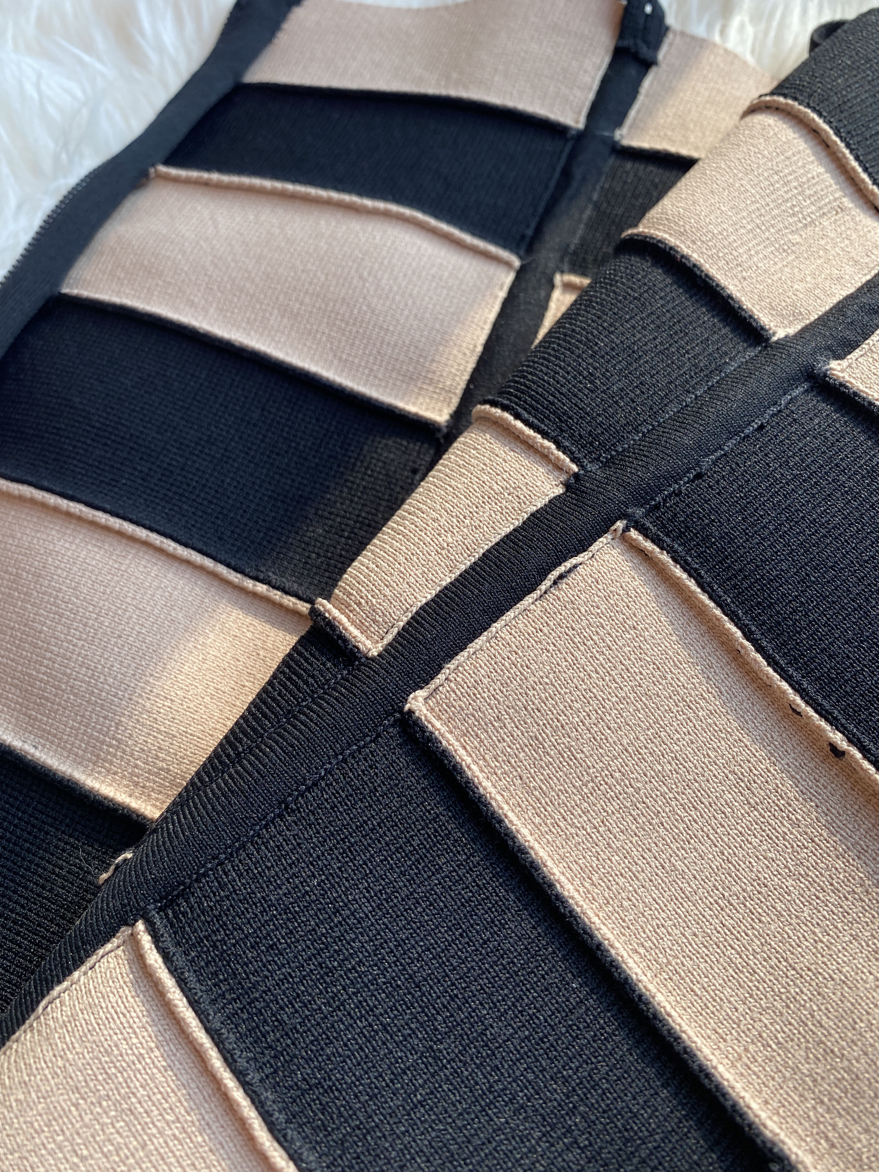黑色拼卡其雙色針織,兩個百搭基礎顏色交叉編織嵌套~