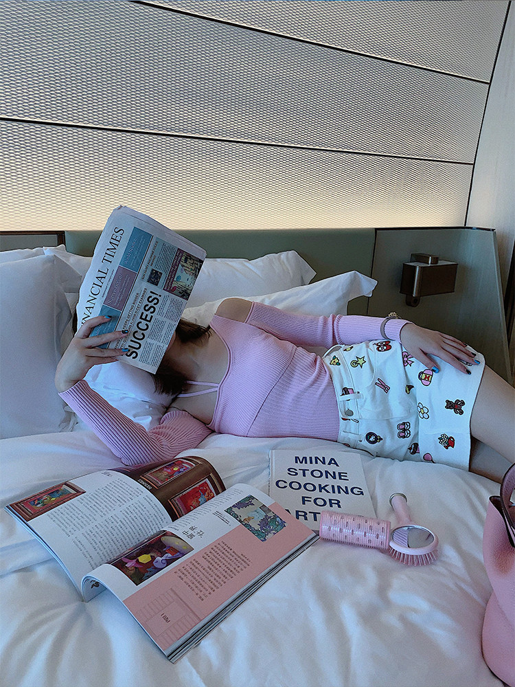 衣服布滿坑條,線條感十足,hin耐看,做個百變的保守辣妹。