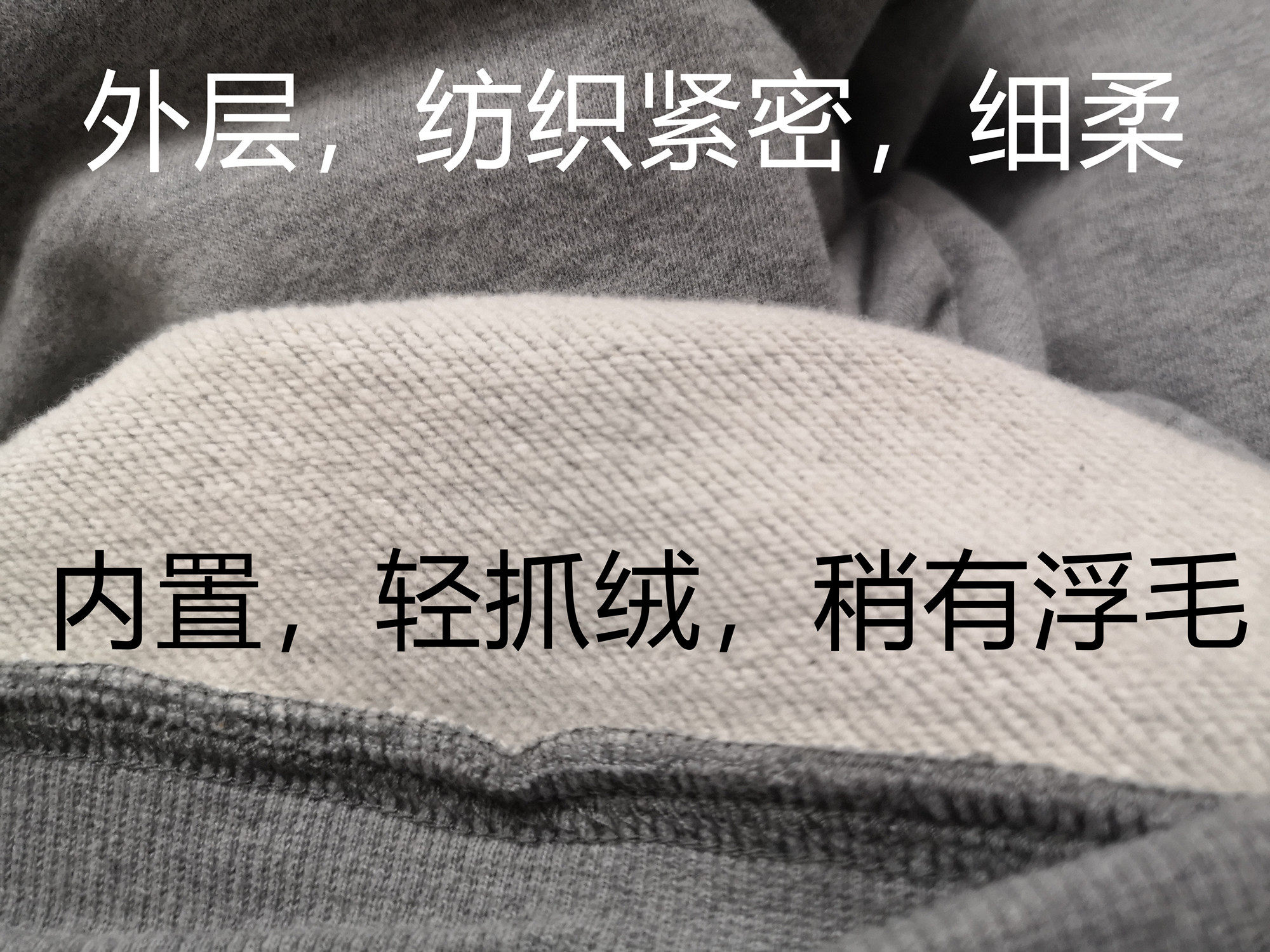 毛圈500克本來價格需要高很多的 ,但是做貨的時候,帽繩+螺紋顏色,在訂染的時候,顏色有點偏差,所以價格就跟輕抓絨的一樣了 。