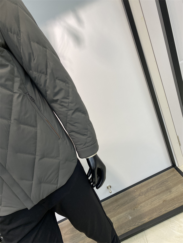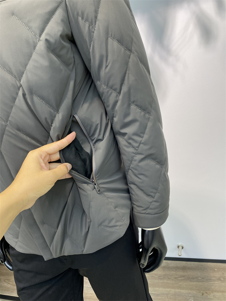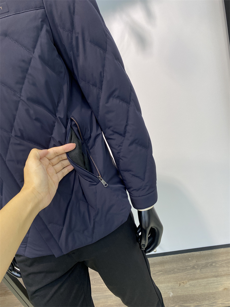 主推理由:25年專柜品質冬季新品 男士牛奶絲四面彈面料鴨絨服 面料細膩順滑 無痕壓膠領 久穿就洗不變型 穿起來會更加保暖舒適 鴨絨填充 門襟位置是一個暗門襟拉鏈設計 側邊是防盜拉鏈口袋 袖口也是帶摁扣的設計 面料上面是菱形格設計 是固定工藝絨 不跑絨 不鉆絨 兩色可選 顏色經典商務休閑百搭款 專柜品質 易搭配 簡單利落 品質保證