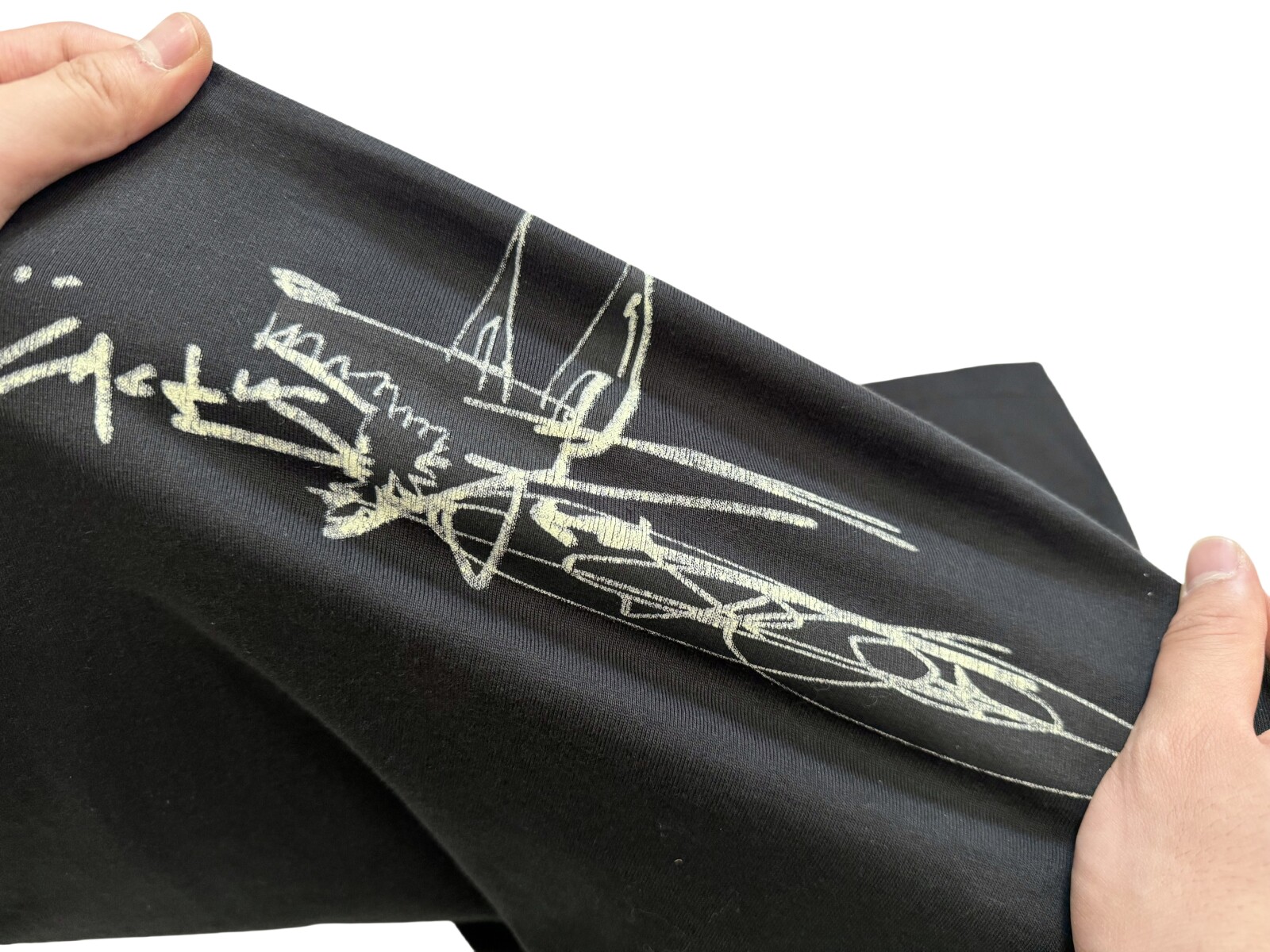 Y版一致直裂水漿印花,手感無膠感 拉扯呈自然裂紋(放大看)區別快餐貨厚重膠印