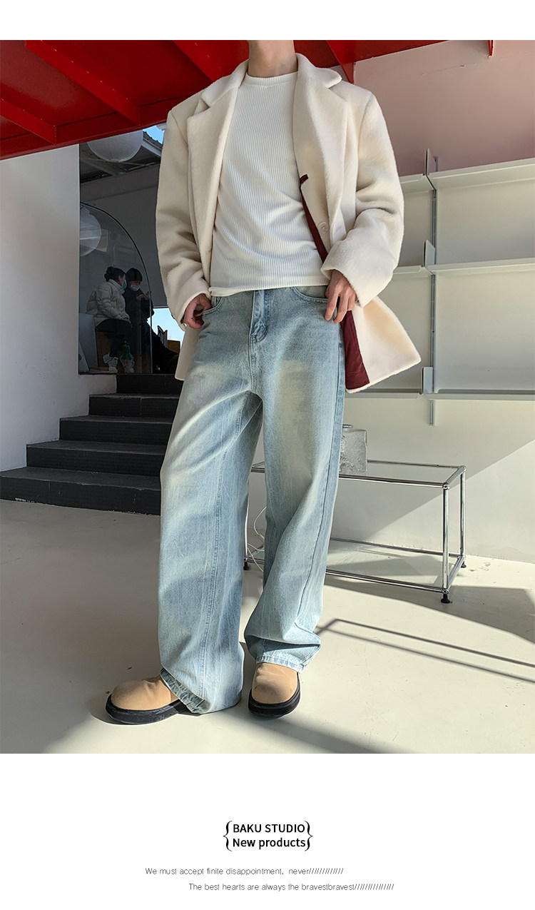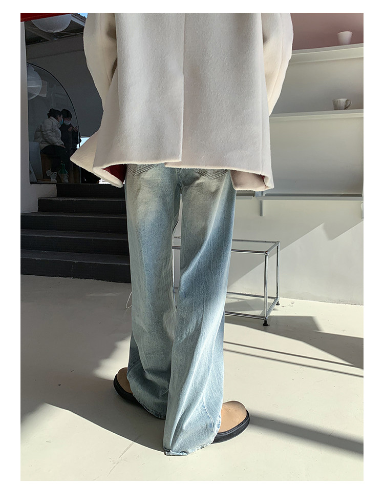 版型是寬松直筒的闊腿牛仔褲