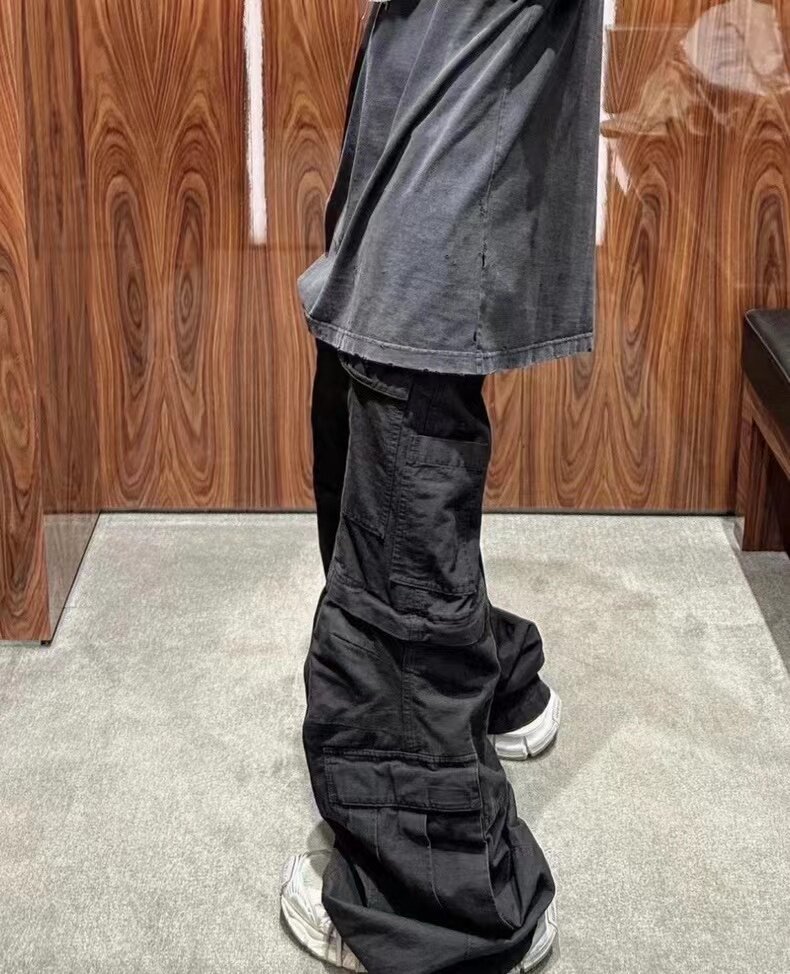 *23Fw Flared Cargo可拆卸黑色微喇工裝褲*