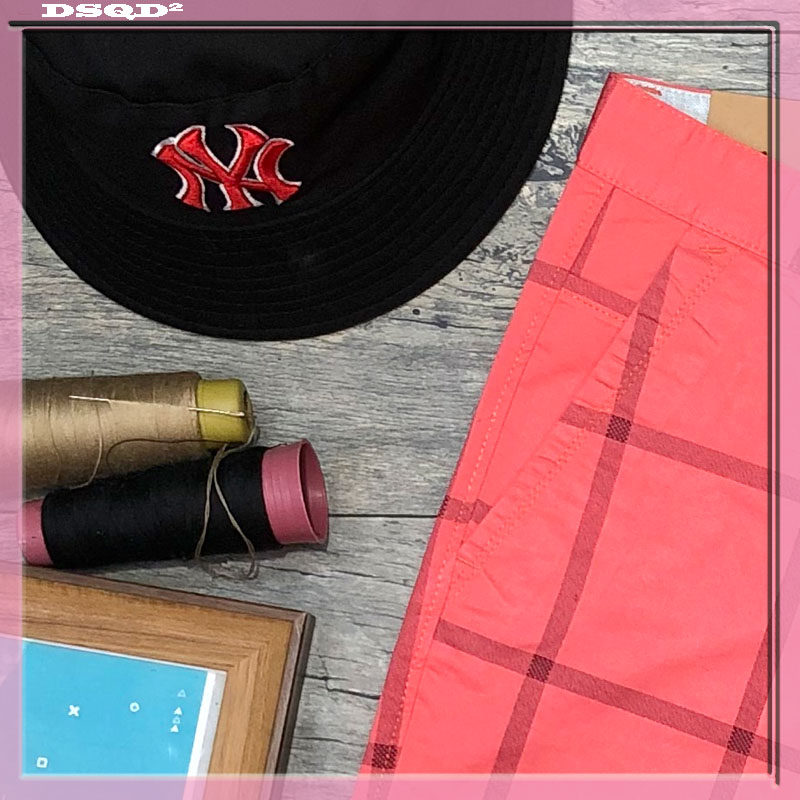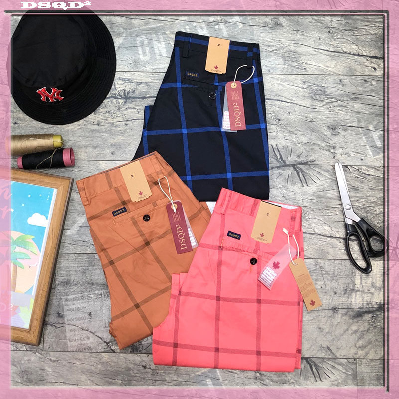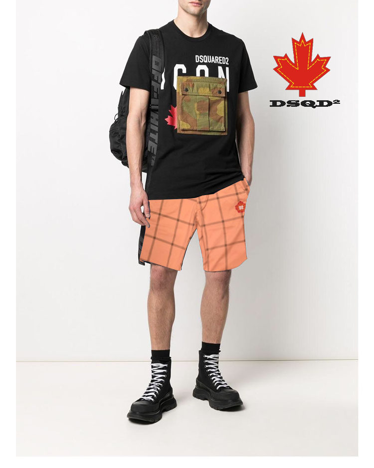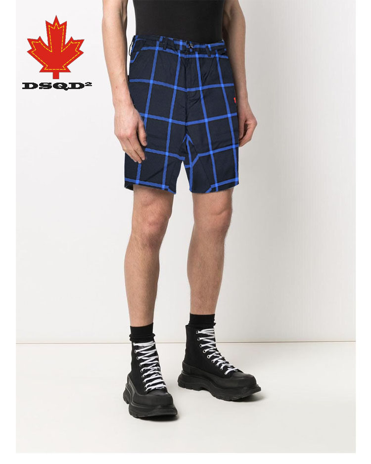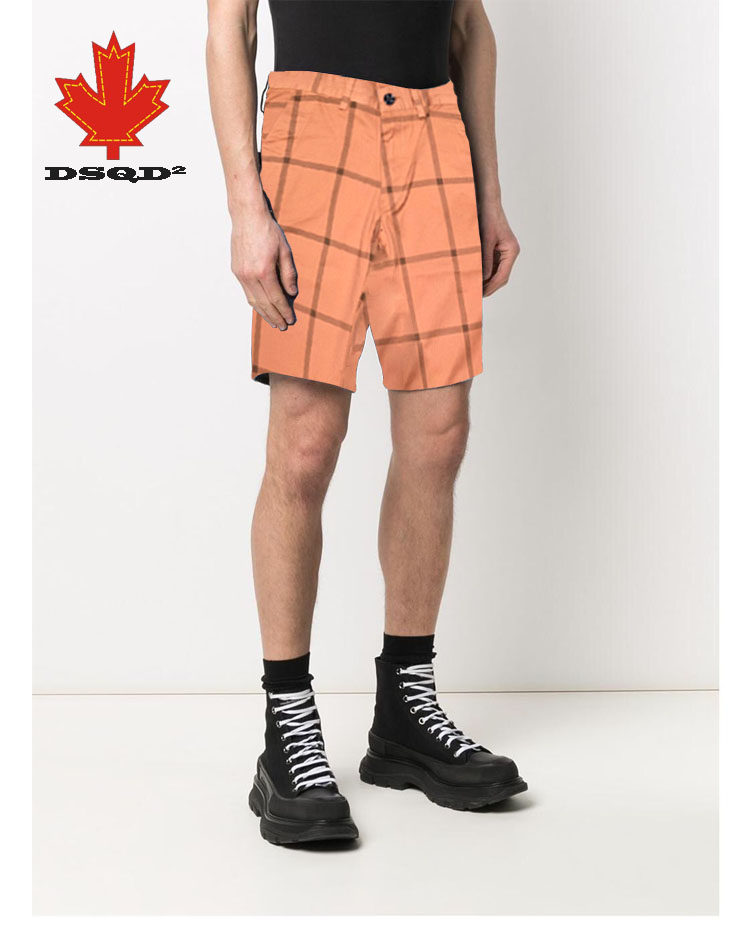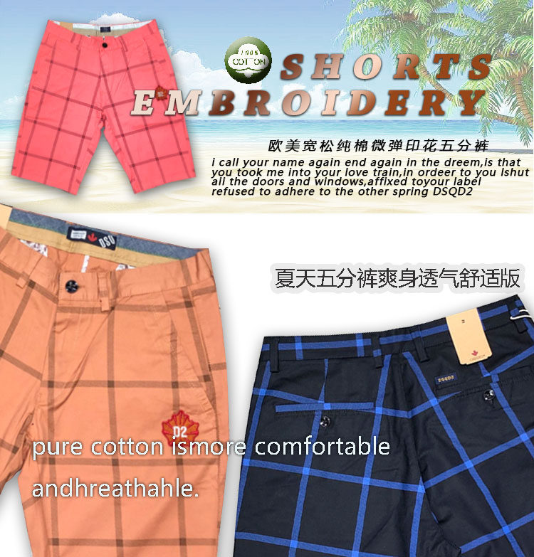 dsquarerd2歐貨大牌潮牌格子活潑印花夏天純棉五分褲沙灘褲短褲直筒寬松馬褲