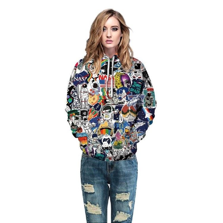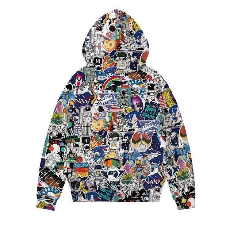 彩墨太空人數碼印花男裝潮范休閑hoodie秋冬寬松衛衣男