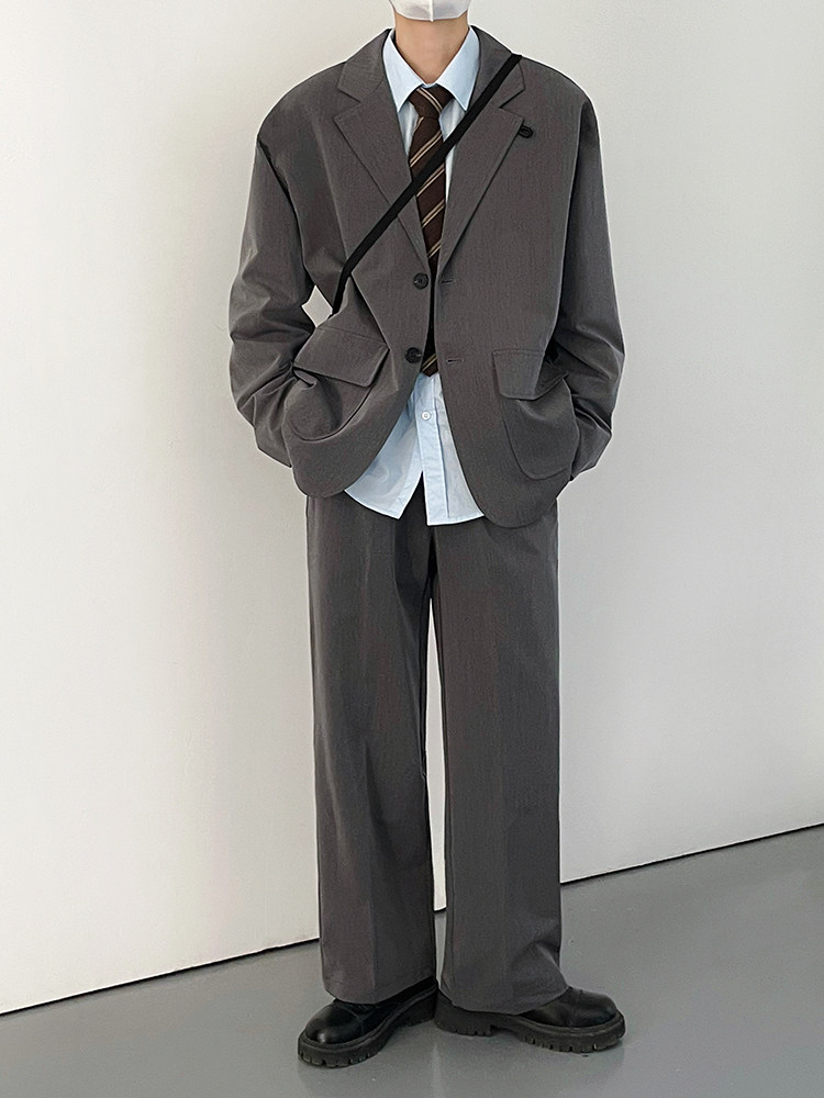 西裝(沒有墊肩) 西褲(松緊腰)