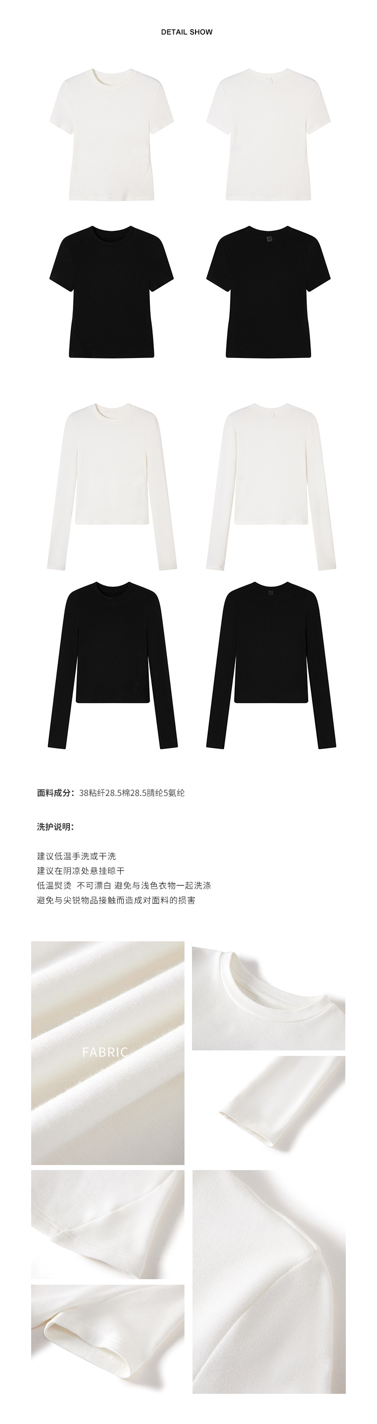 面料: 38粘纖28.5棉 28.5腈綸5氨綸