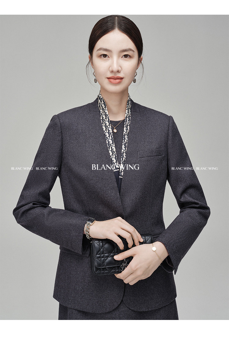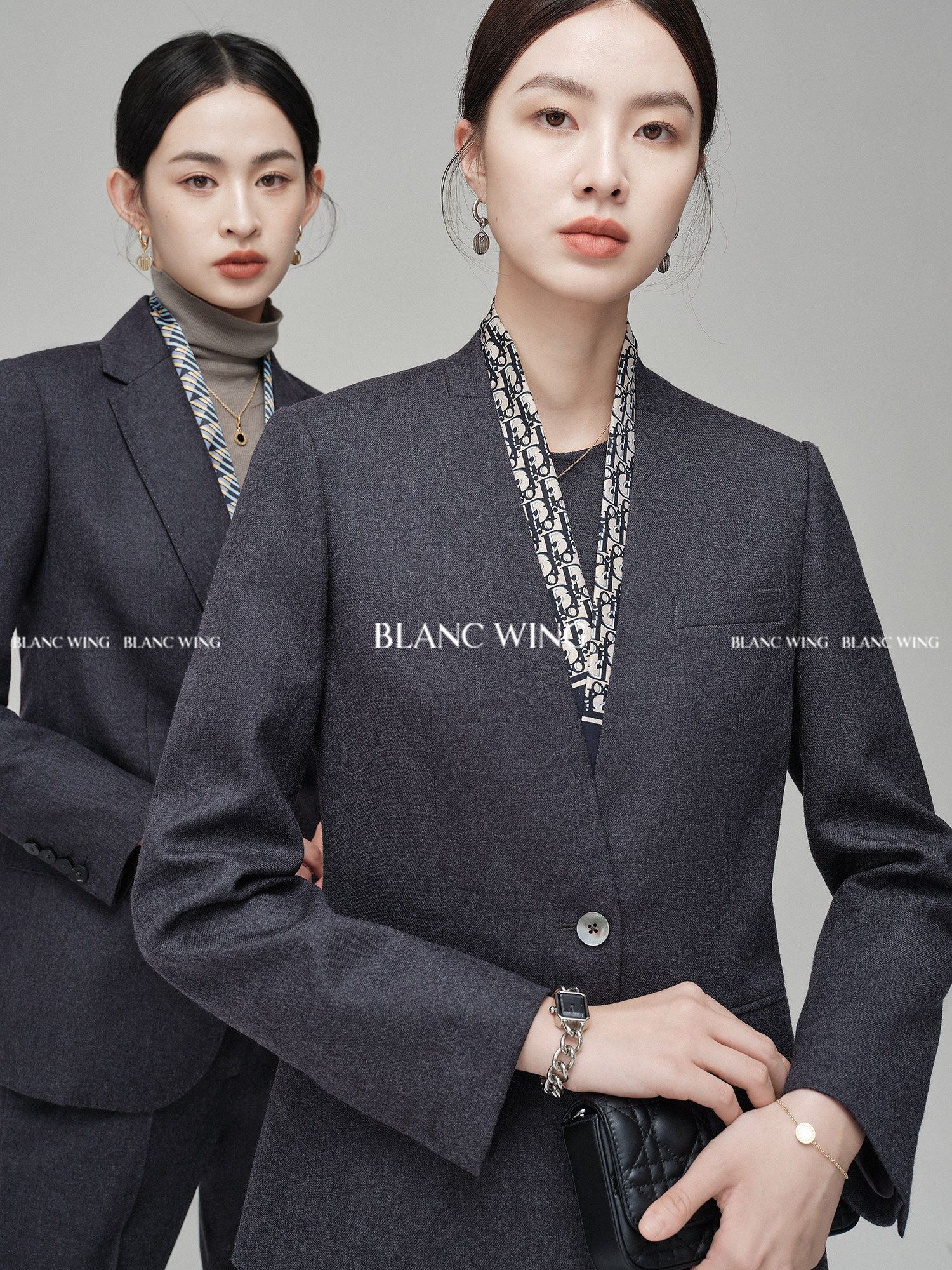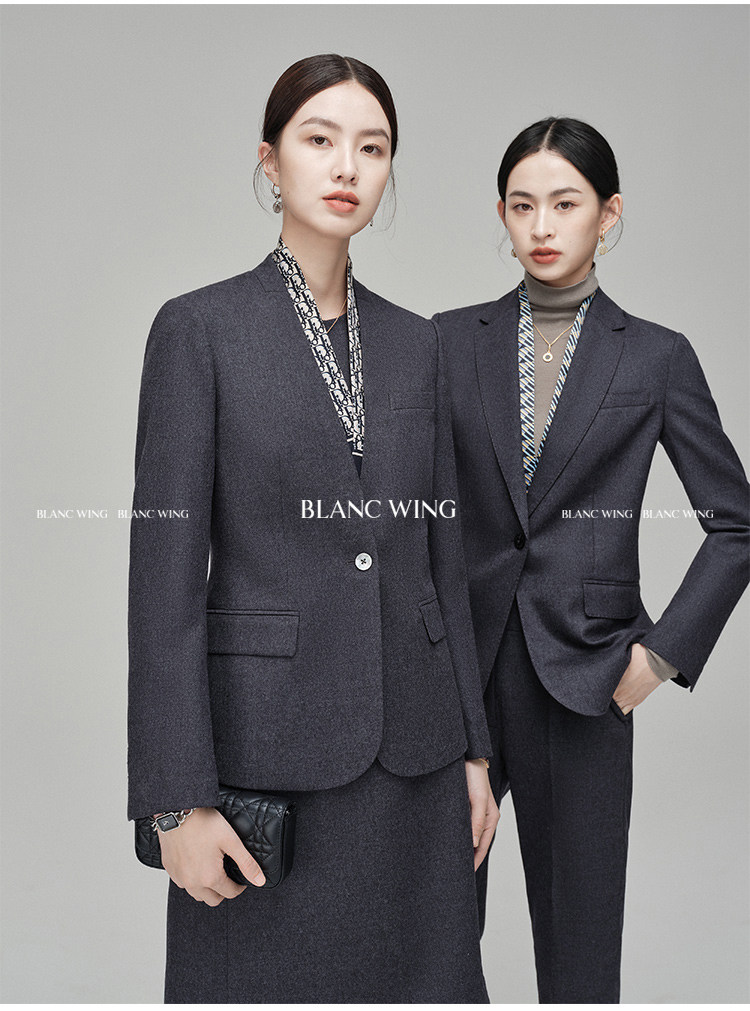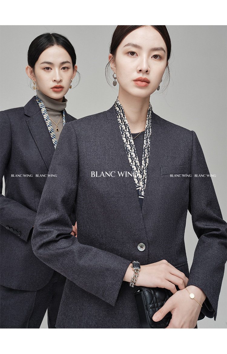 簡約一片領西裝帶有柔和弧度干練不失女人味
