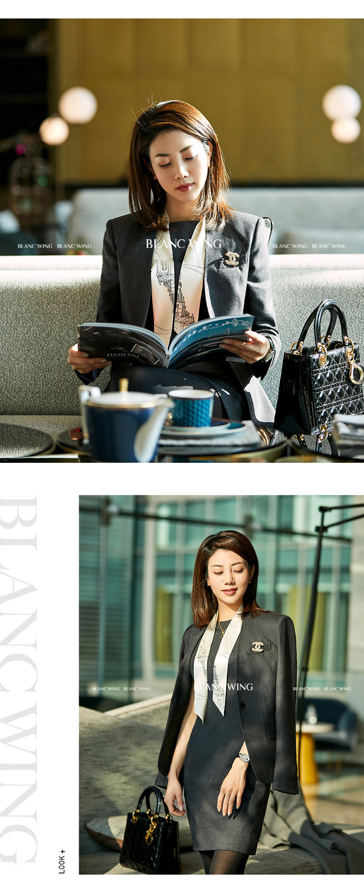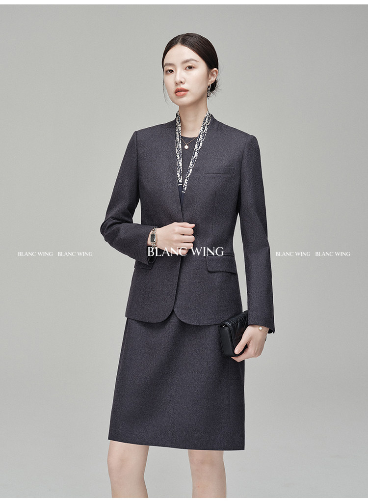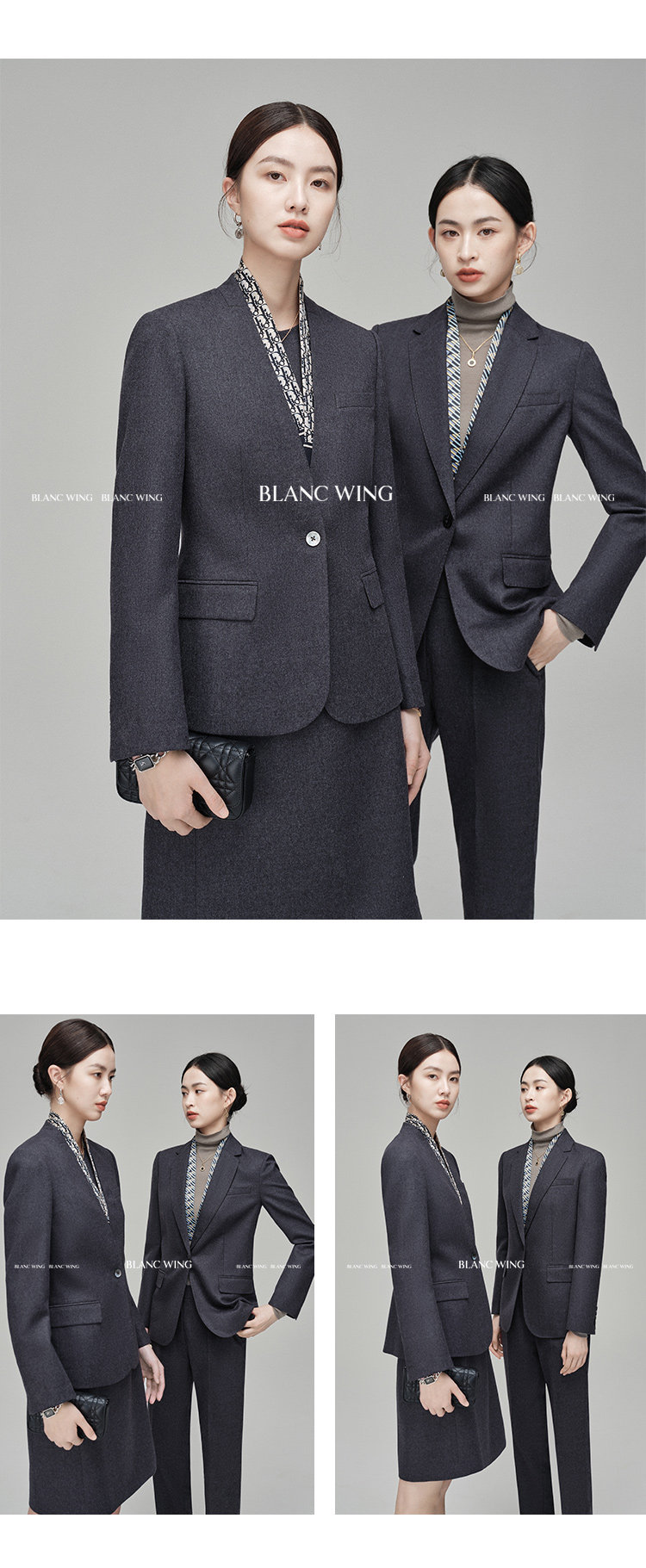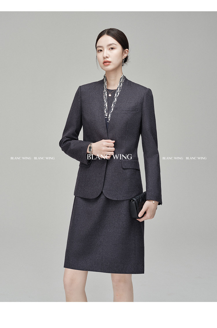 簡約一片領西裝帶有柔和弧度干練不失女人味