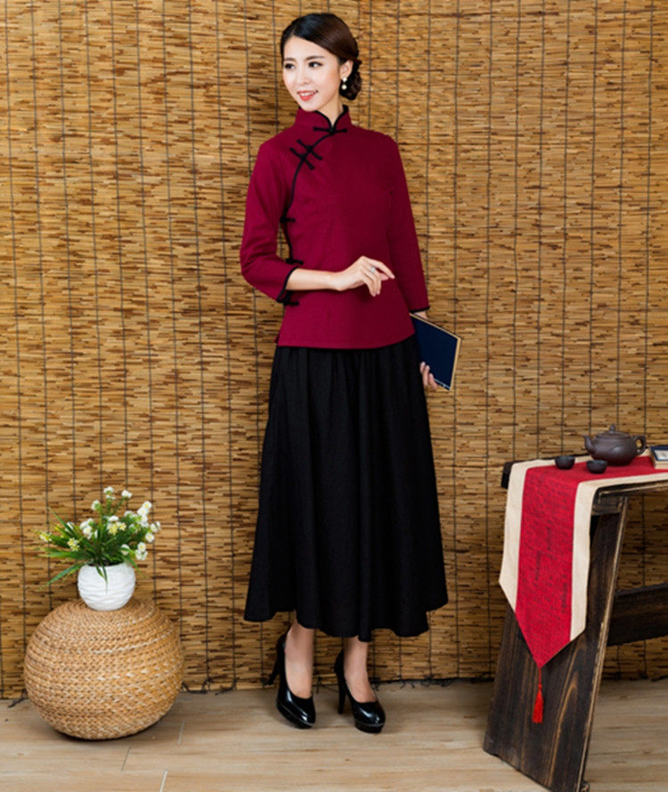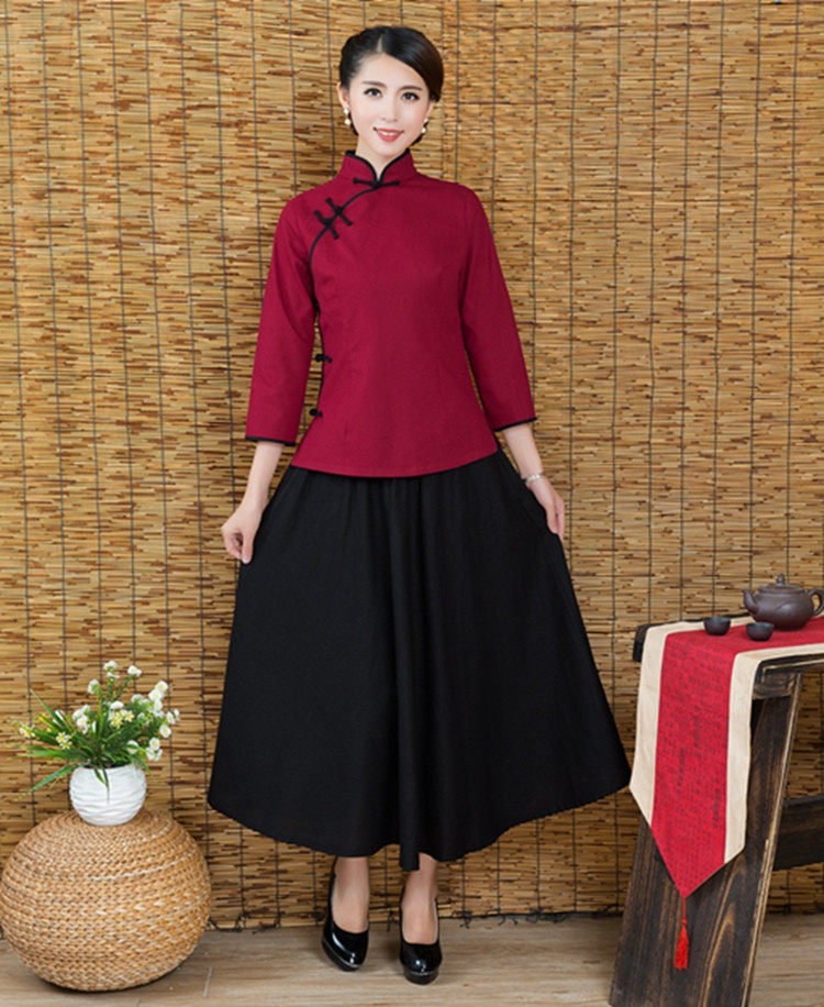 此款尺碼從M-5XL其中XS代表5XL純酒紅色和黑色為盤扣款 花色紅色臘梅和深藍臘梅為套頭側面拉鏈款