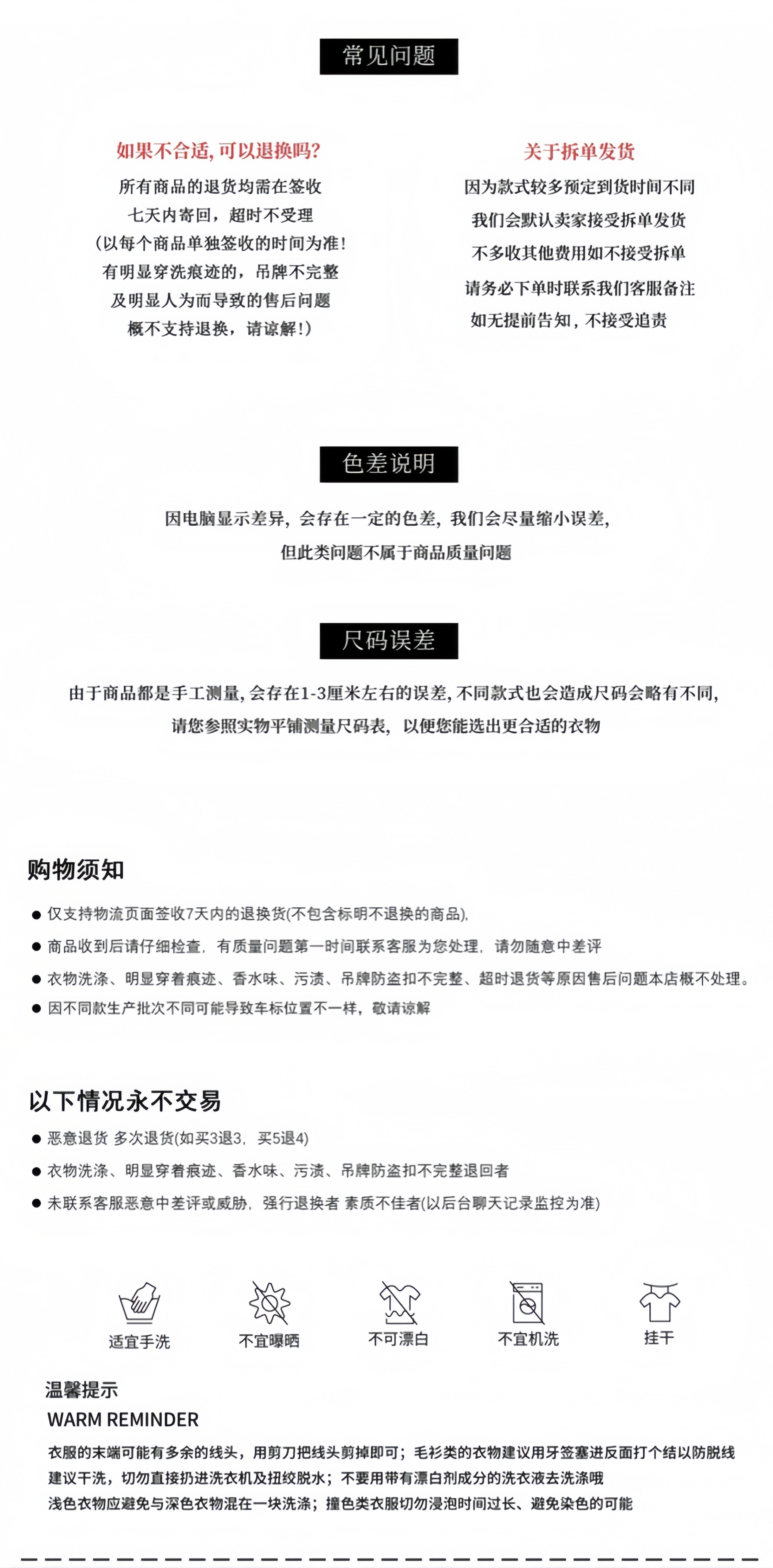 若商品存在瑕疵,請於簽收後7日內提出申請,並提供全程拆封錄影作為依據。商品是否為瑕疵將由廠商最終確認。運輸過程中的輕微碰撞痕跡不影響使用,不屬於瑕疵範疇。 - 拒收包裹的後果