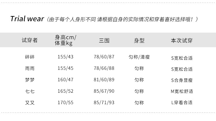 *考慮到每個人身材各不相同,要結合自身數據(肩寬、腰圍的尺寸很重要)看好尺寸再購買減少中間產生的麻煩,如有疑問請咨詢客服