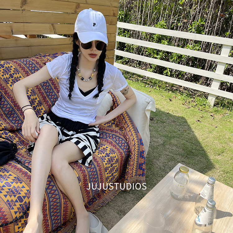 搭配一些吊帶或者馬甲類的疊穿效果會加倍