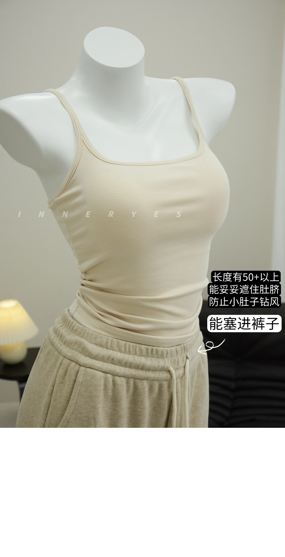 衣長含肩帶50cm左右,能塞進褲子,護住小肚子!