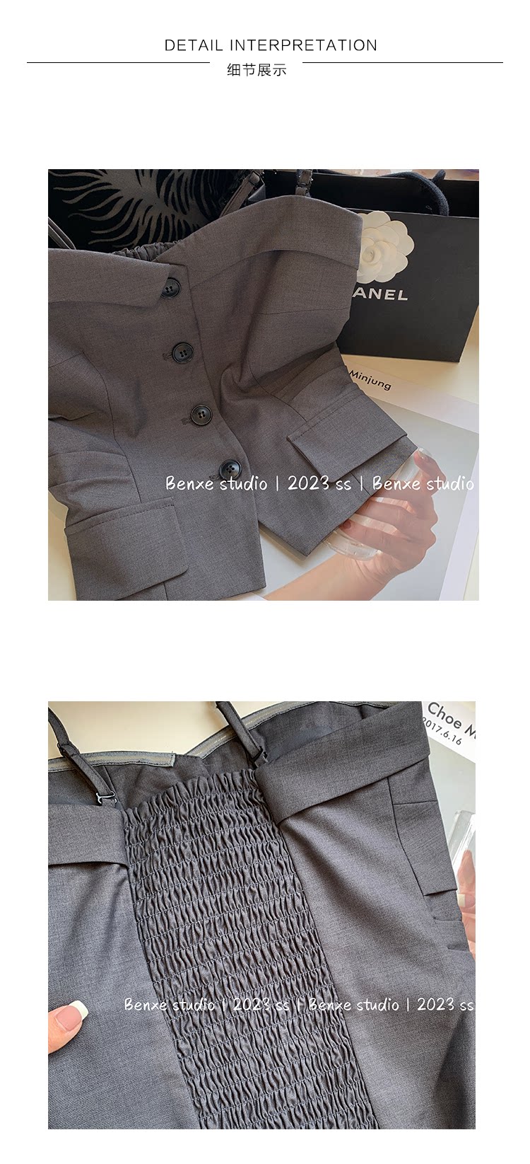 面料:80%聚酯纖維20%粘膠纖維   里布97%聚酯纖維3%氨綸