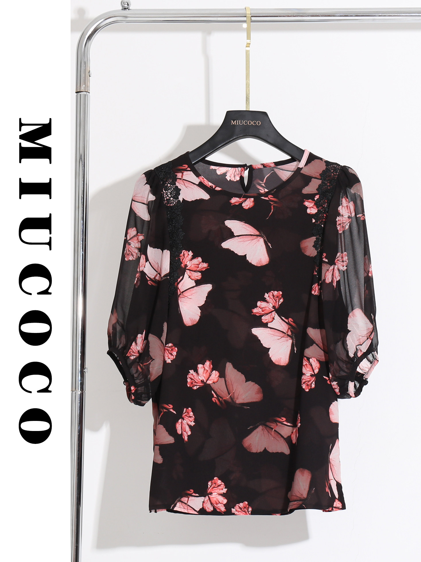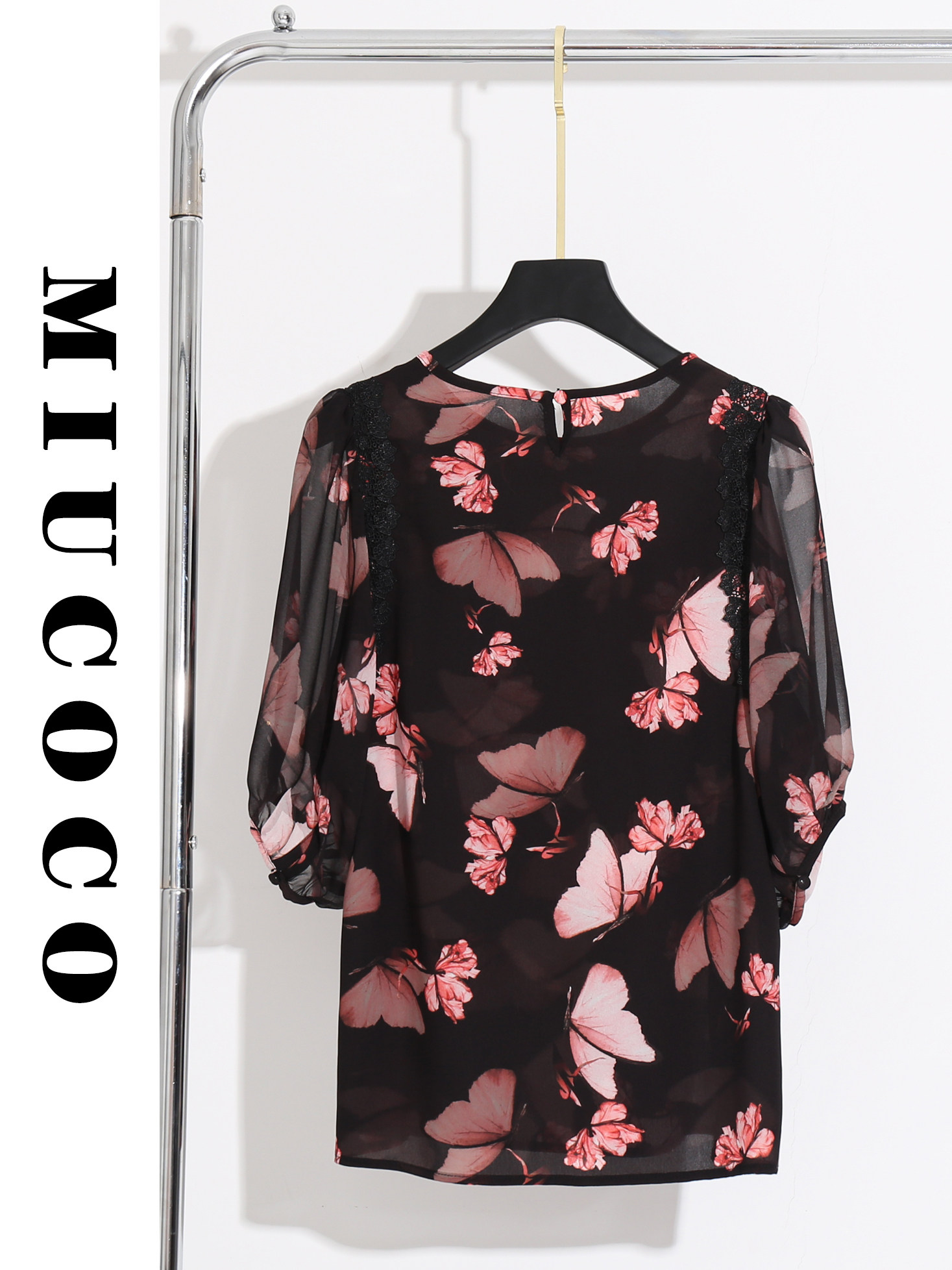 面料特性:Q貨!透氣涼爽!寬松圓領七分袖印花雪紡小衫輕薄高品質微透上衣