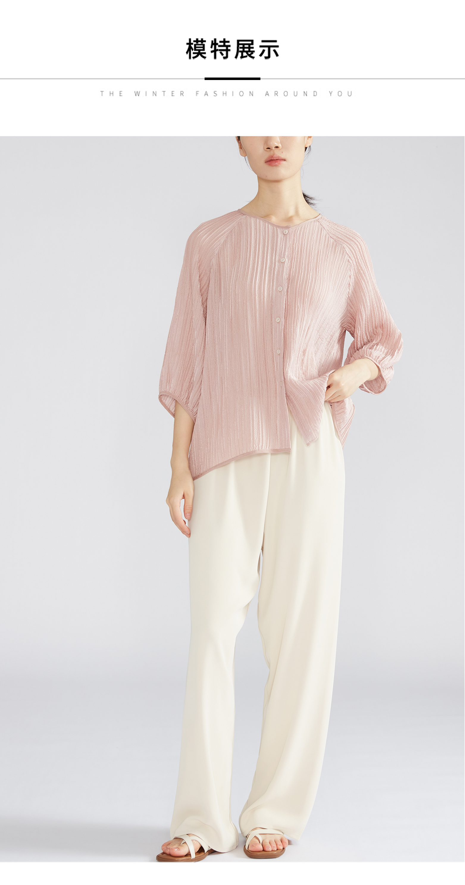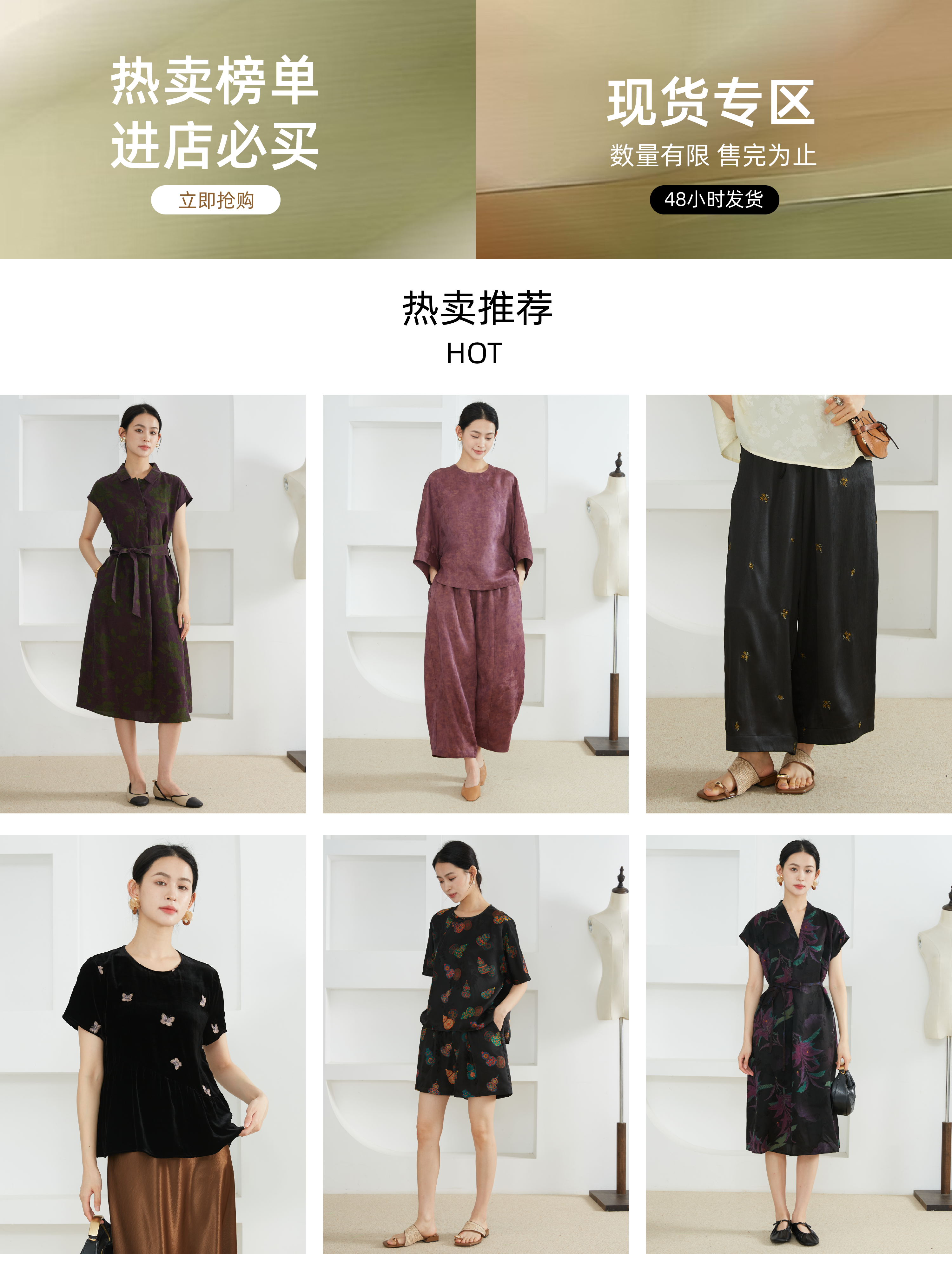 桑蠶絲面料,手感極其舒適,高雅的光澤