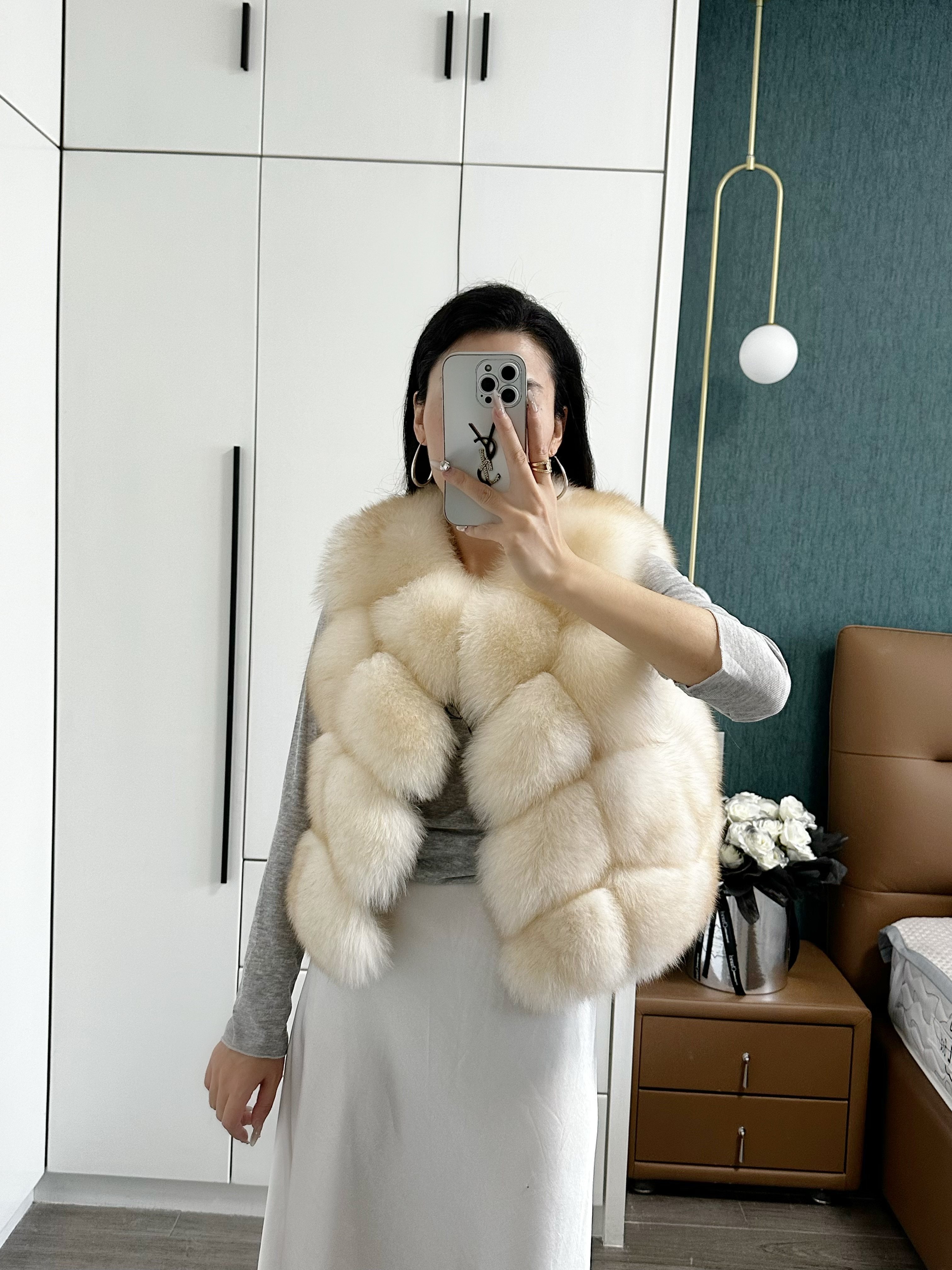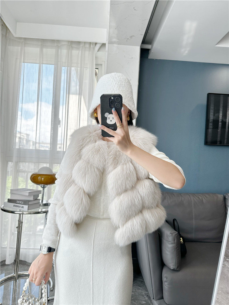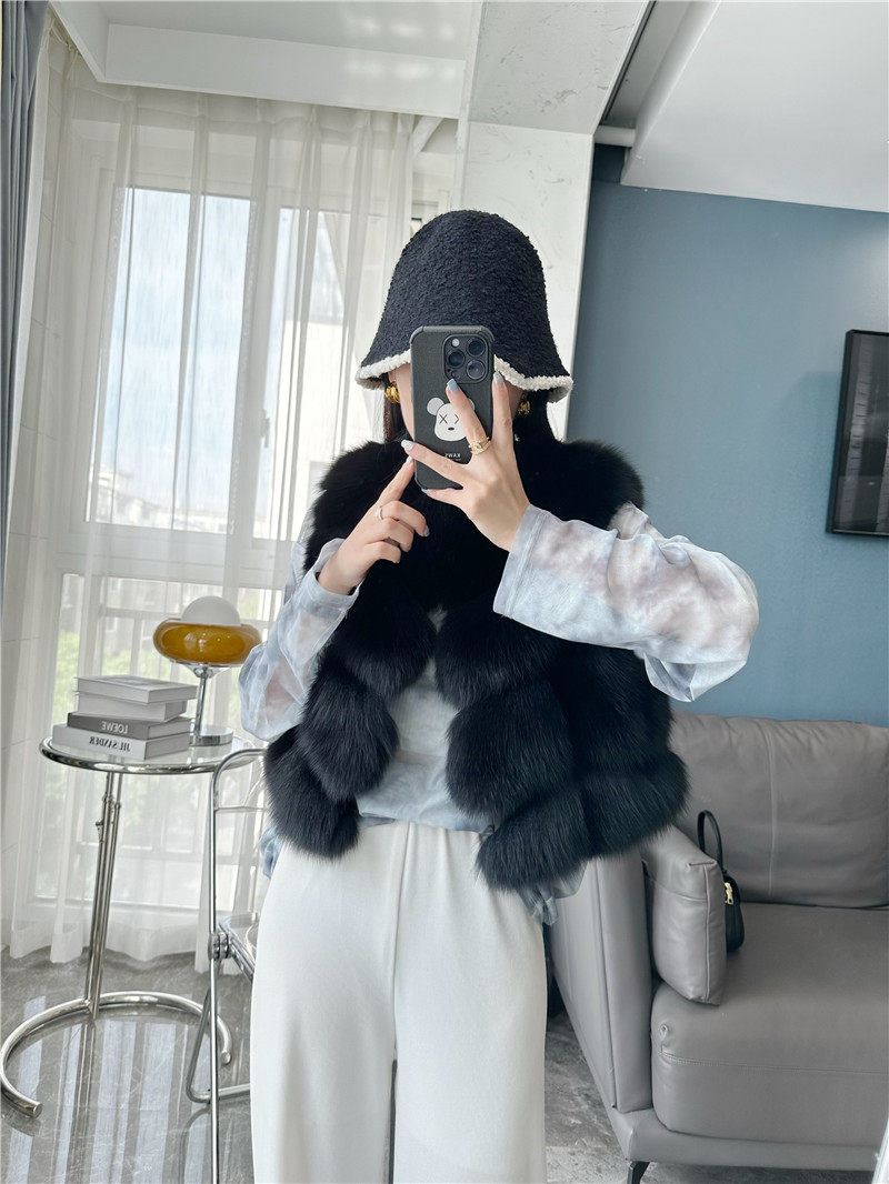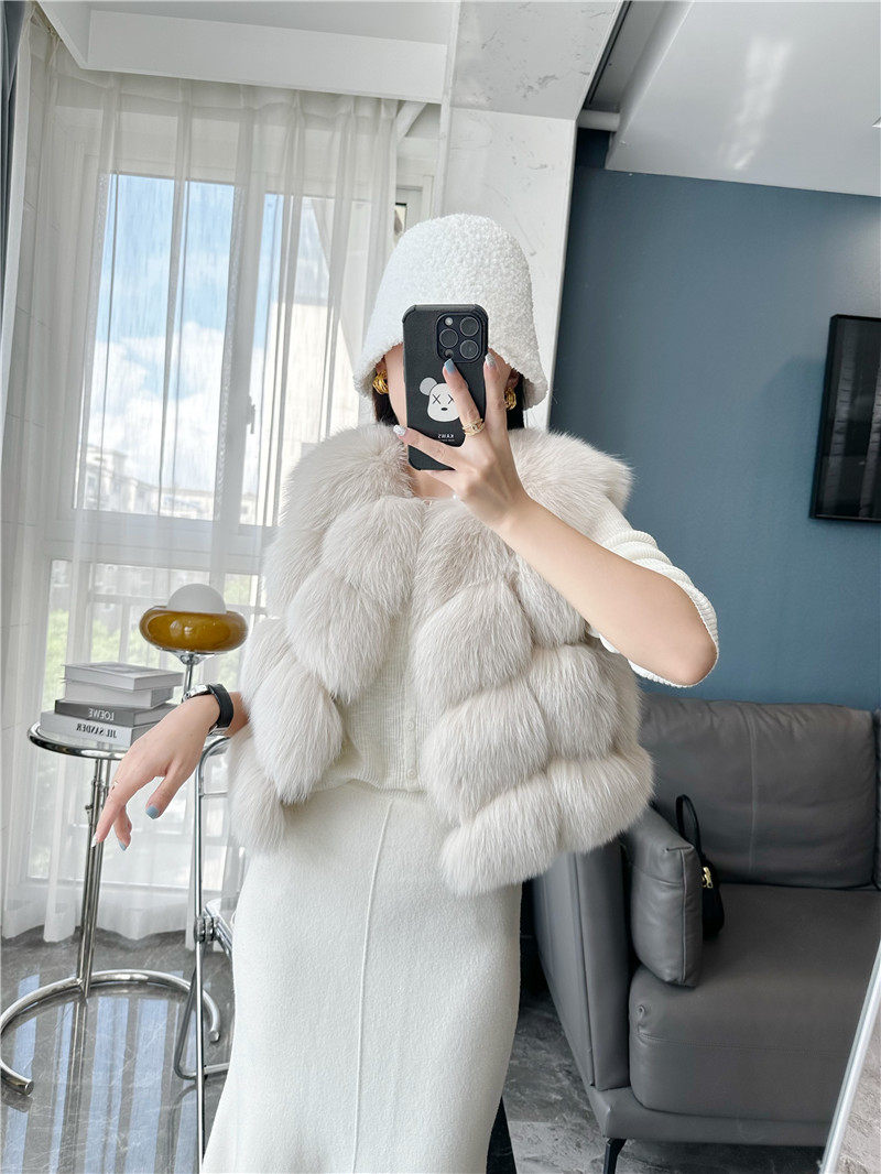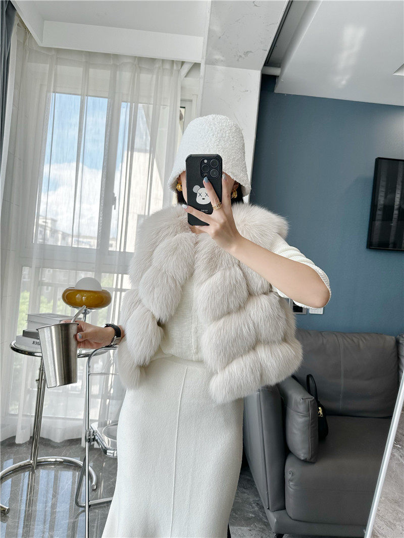 一眼就被ta休閑/簡單的氣質吸引,狐貍毛馬甲小短款設計