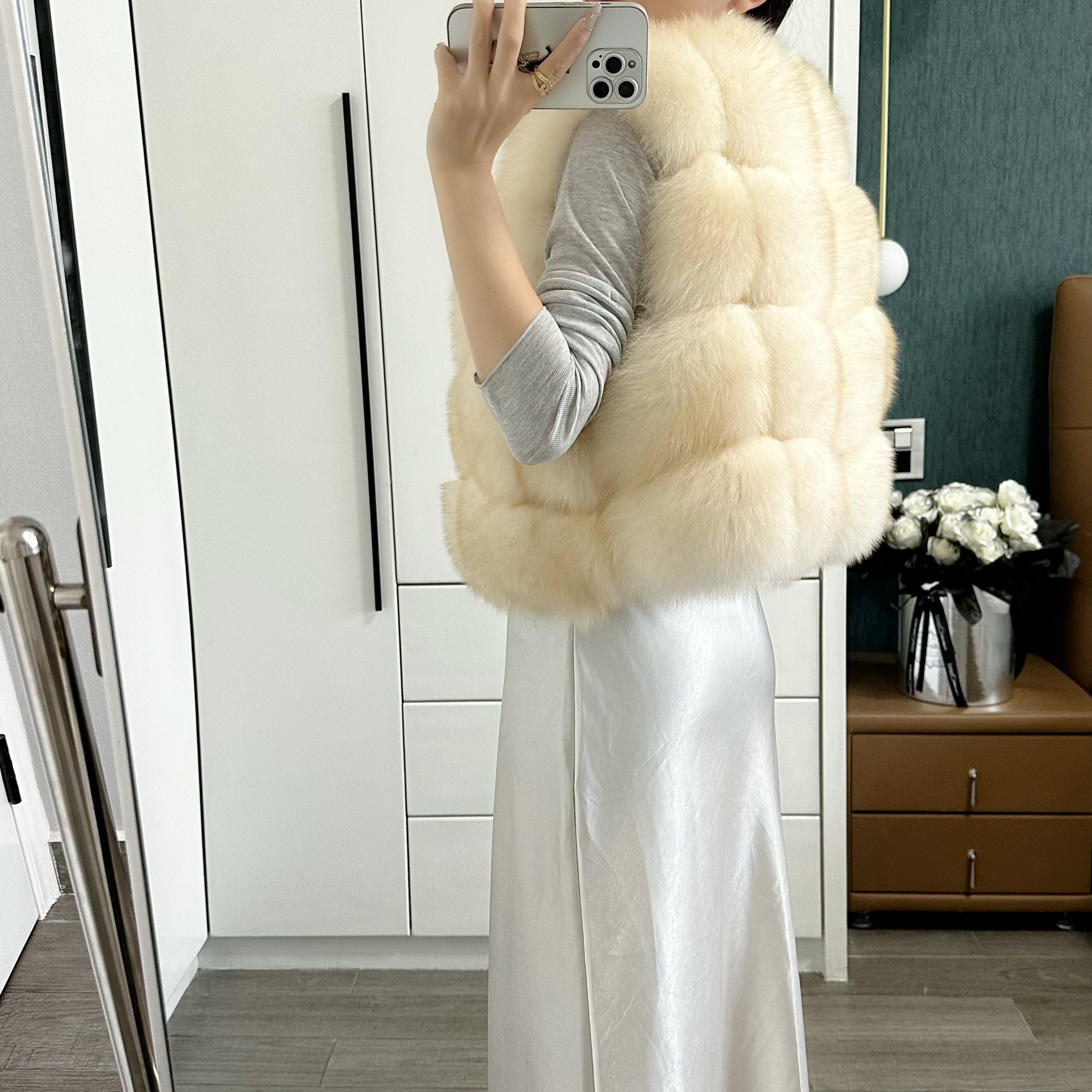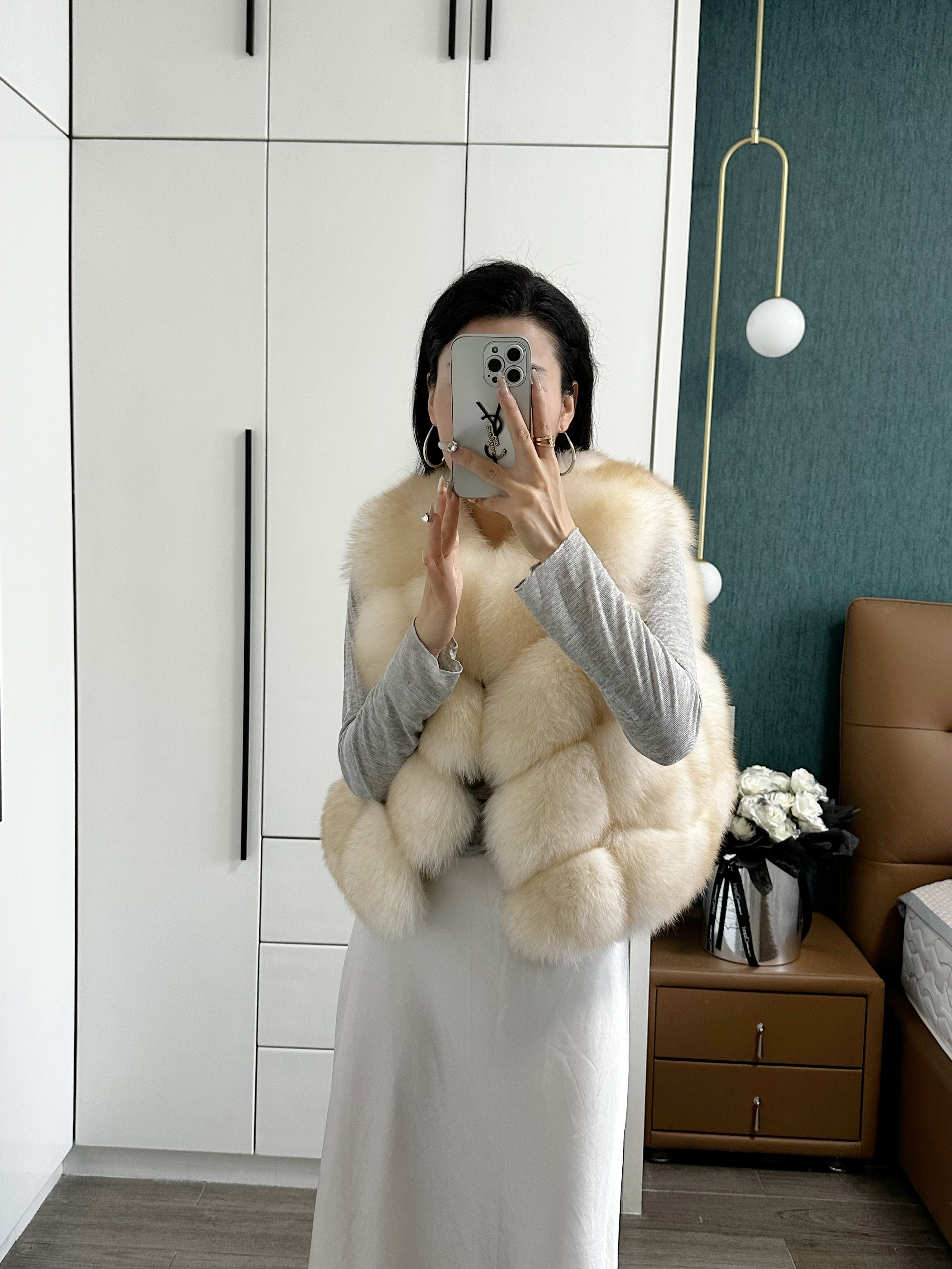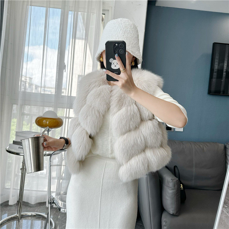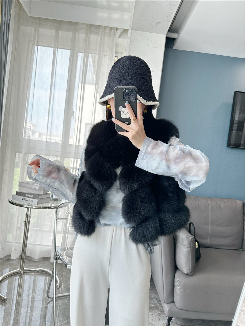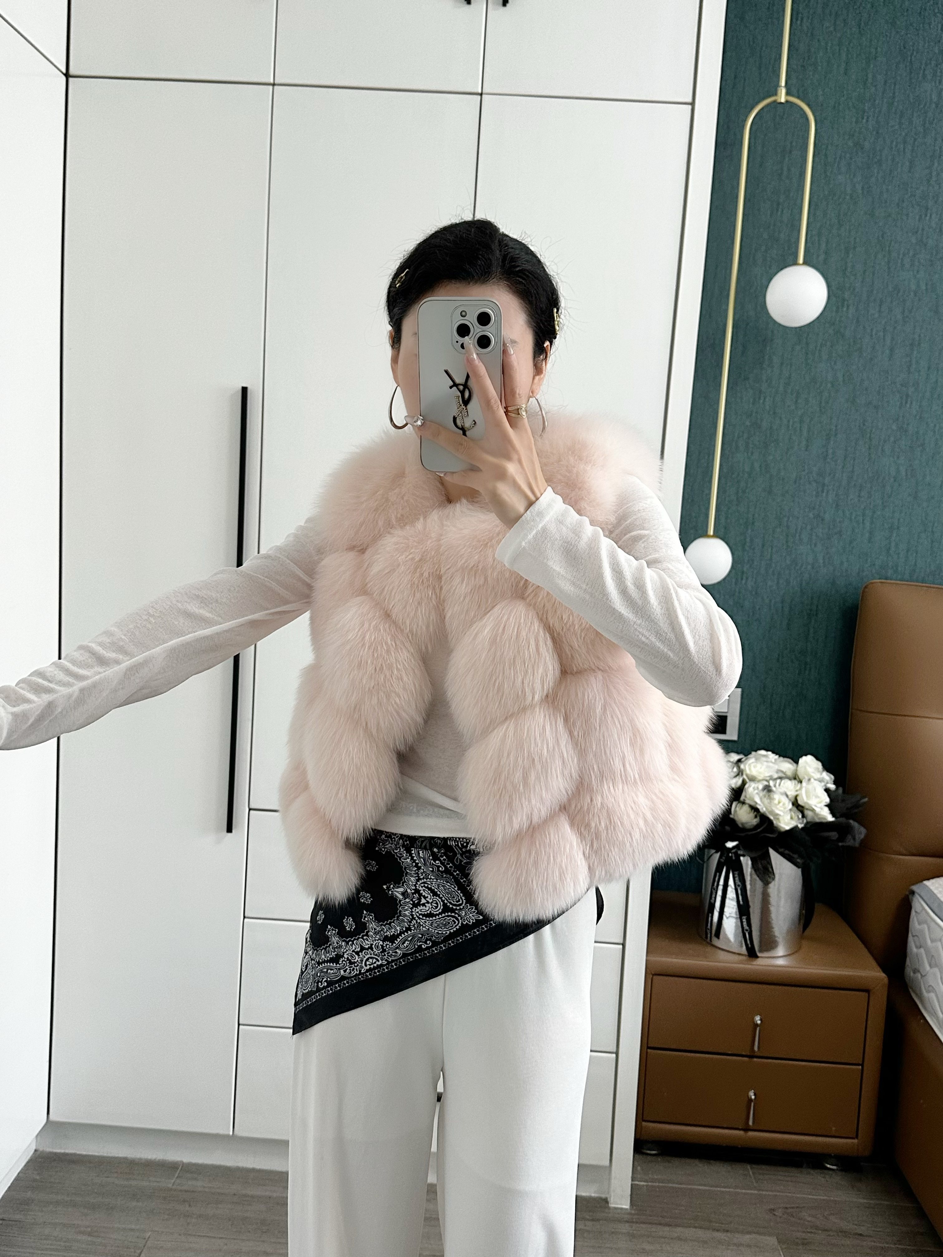 一眼就被ta休閑/簡單的氣質吸引,狐貍毛馬甲小短款設計