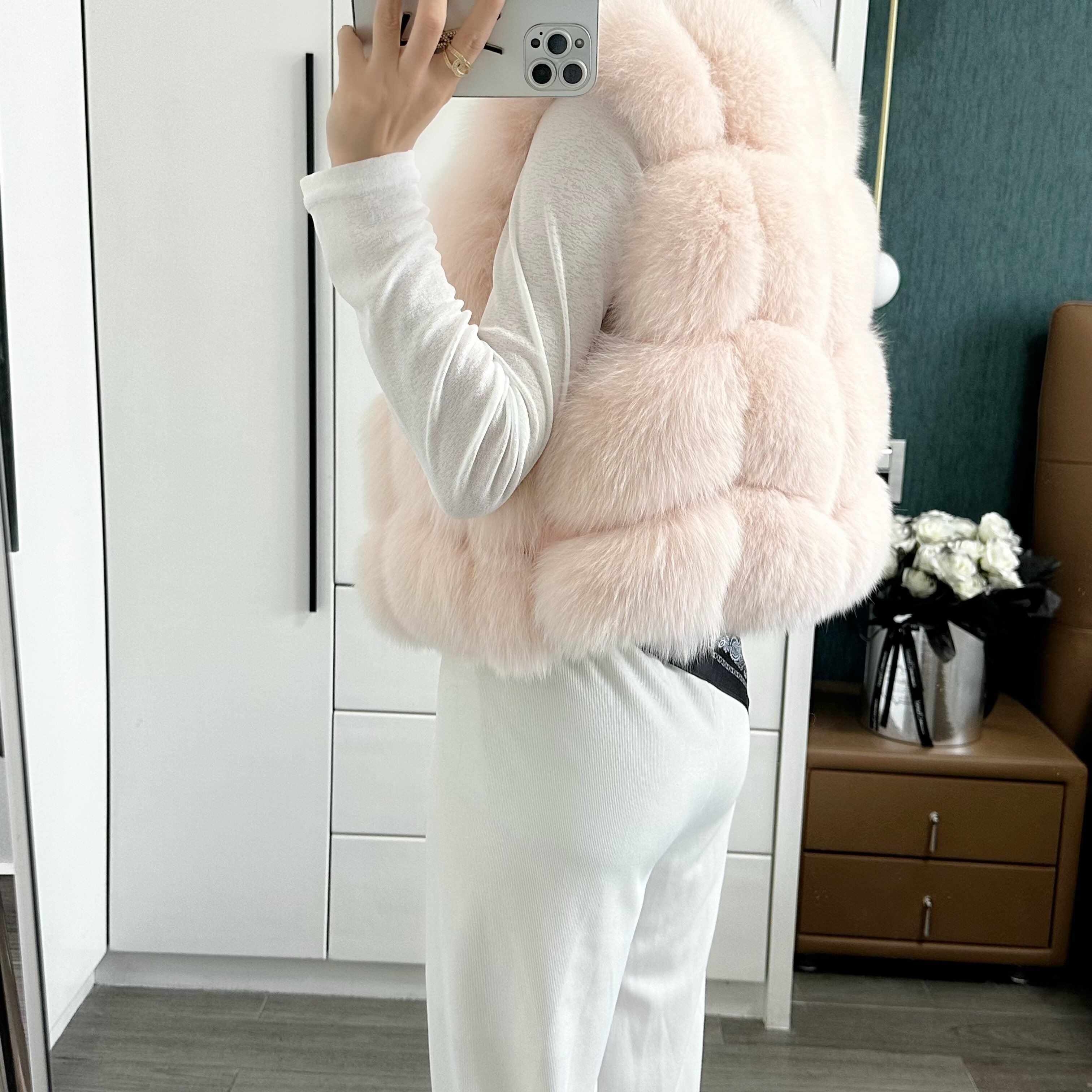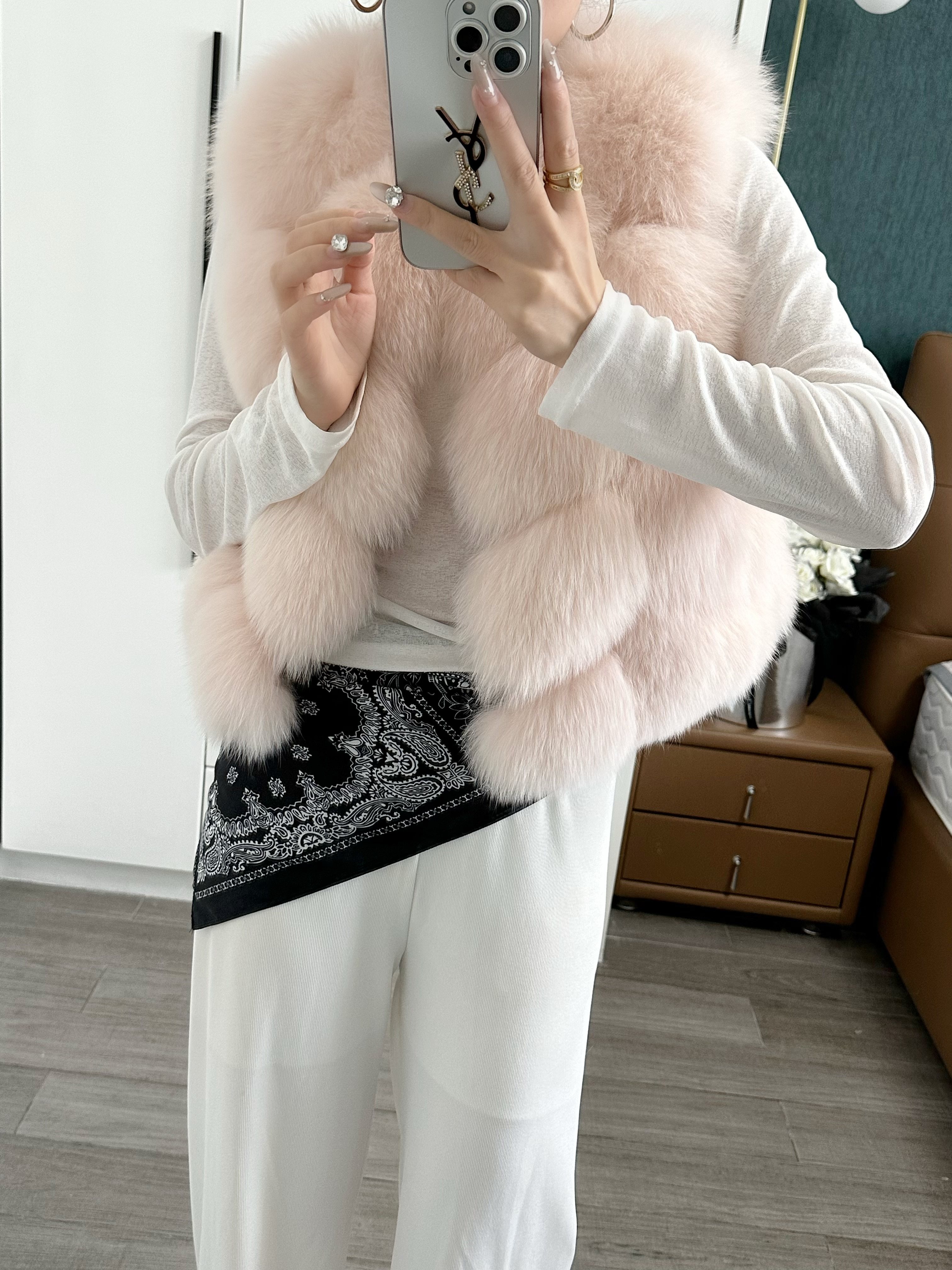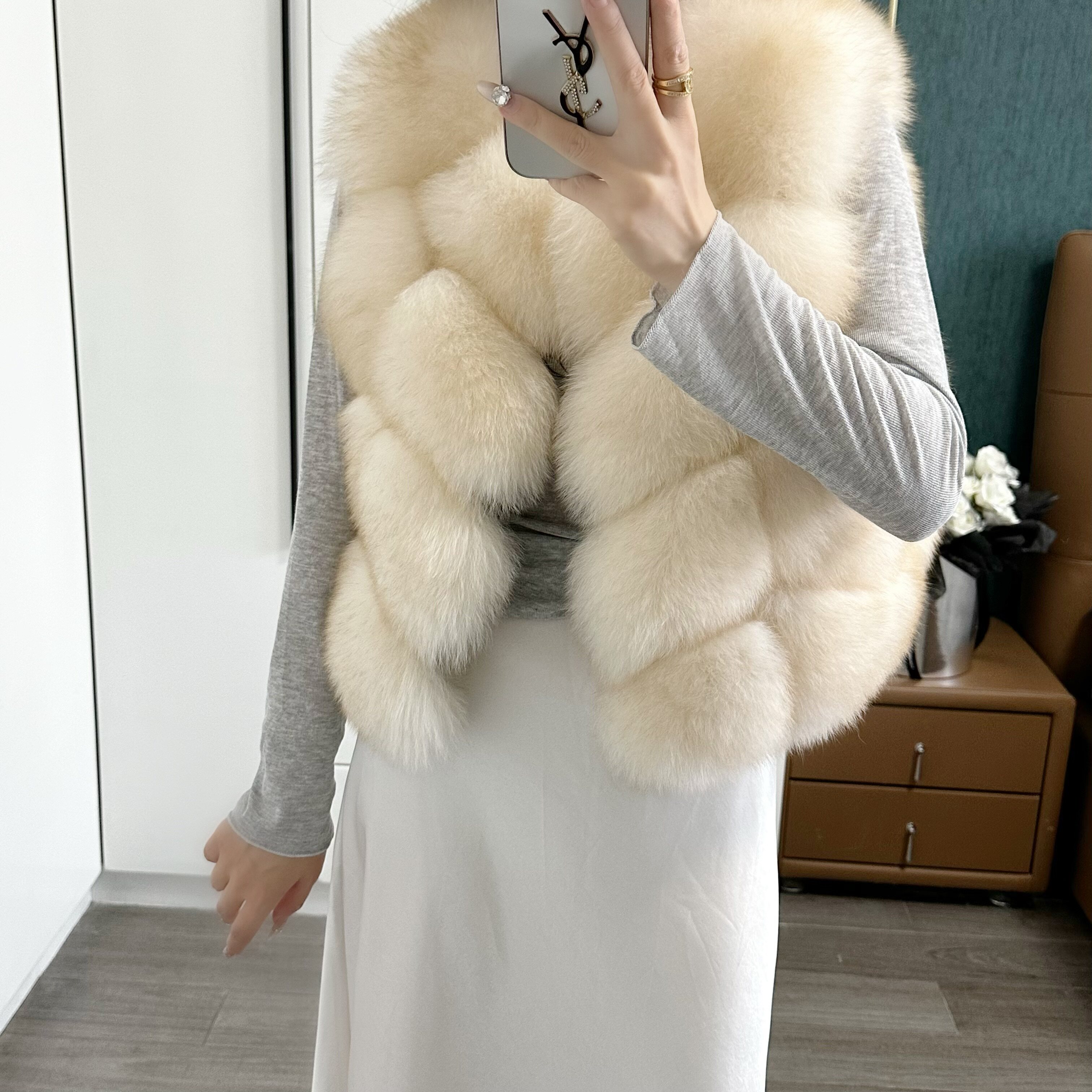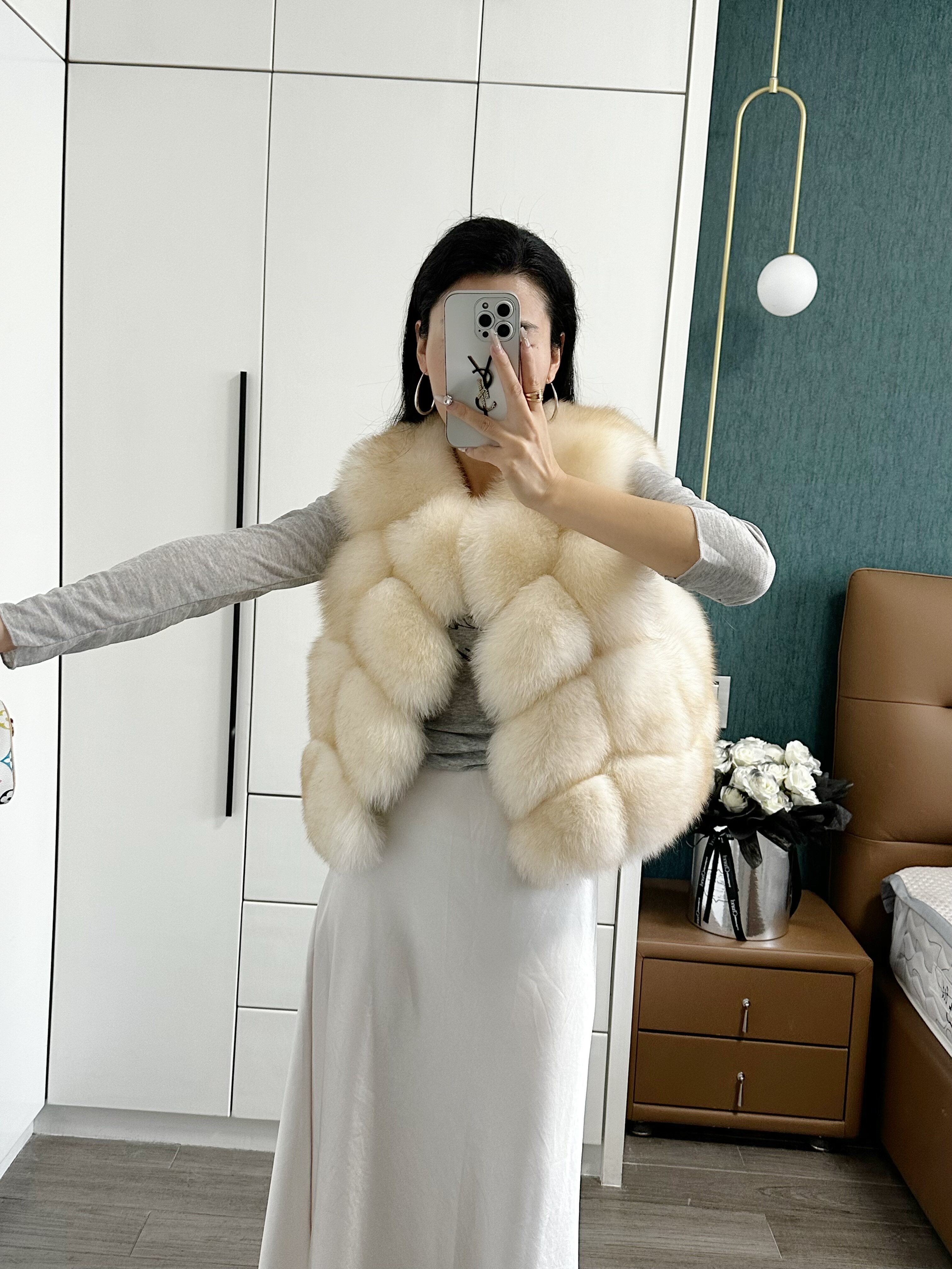 一眼就被ta休閑/簡單的氣質吸引,狐貍毛馬甲小短款設計