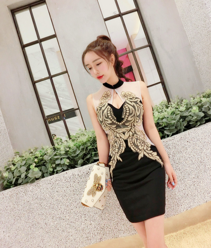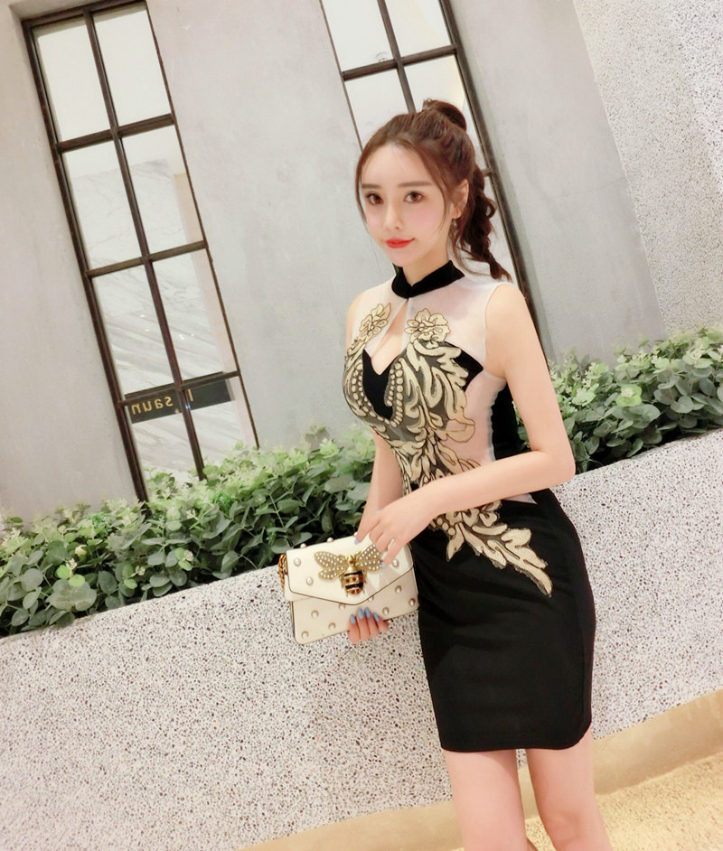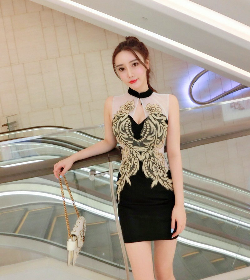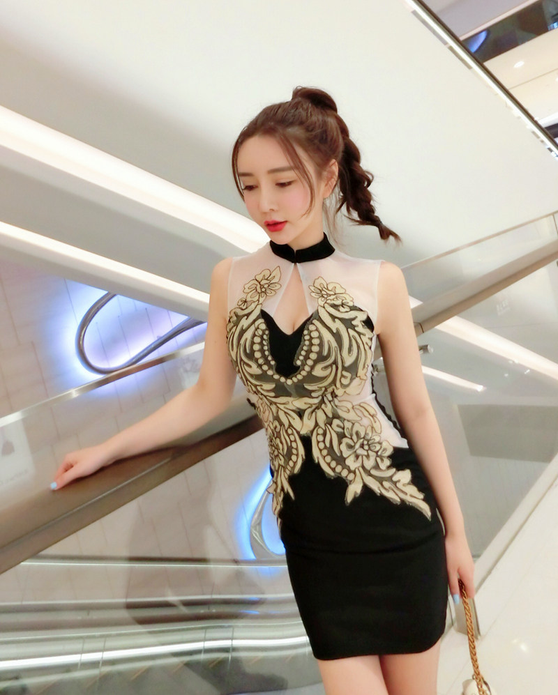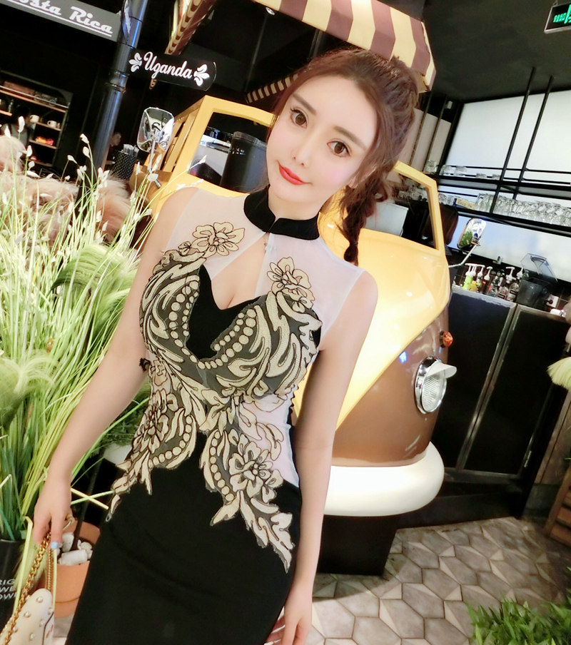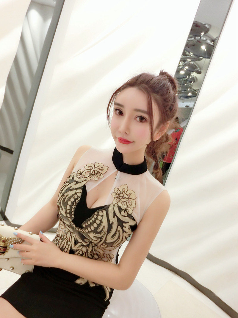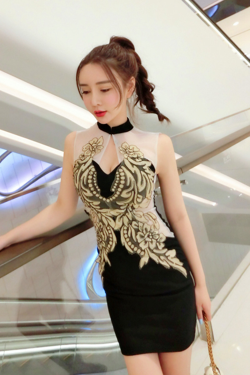 面料:棉混紡, 網紗刺繡
