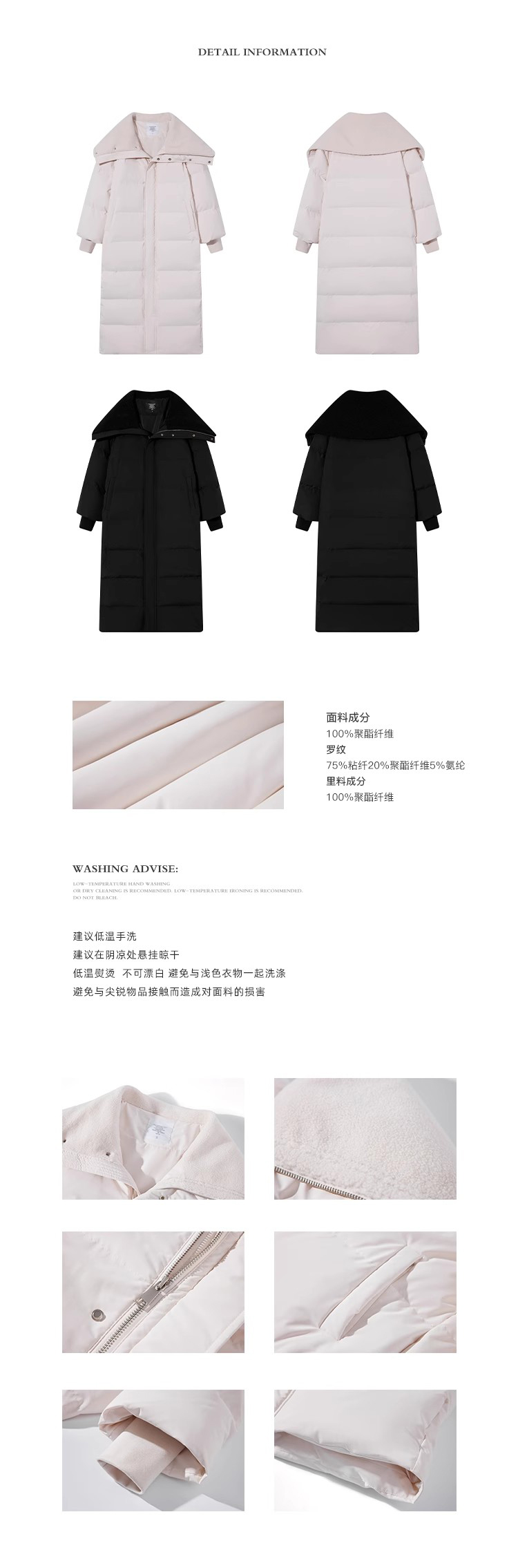 采用本身細密肌理感的髙密成衣面料 內外鎖溫羽絨質感