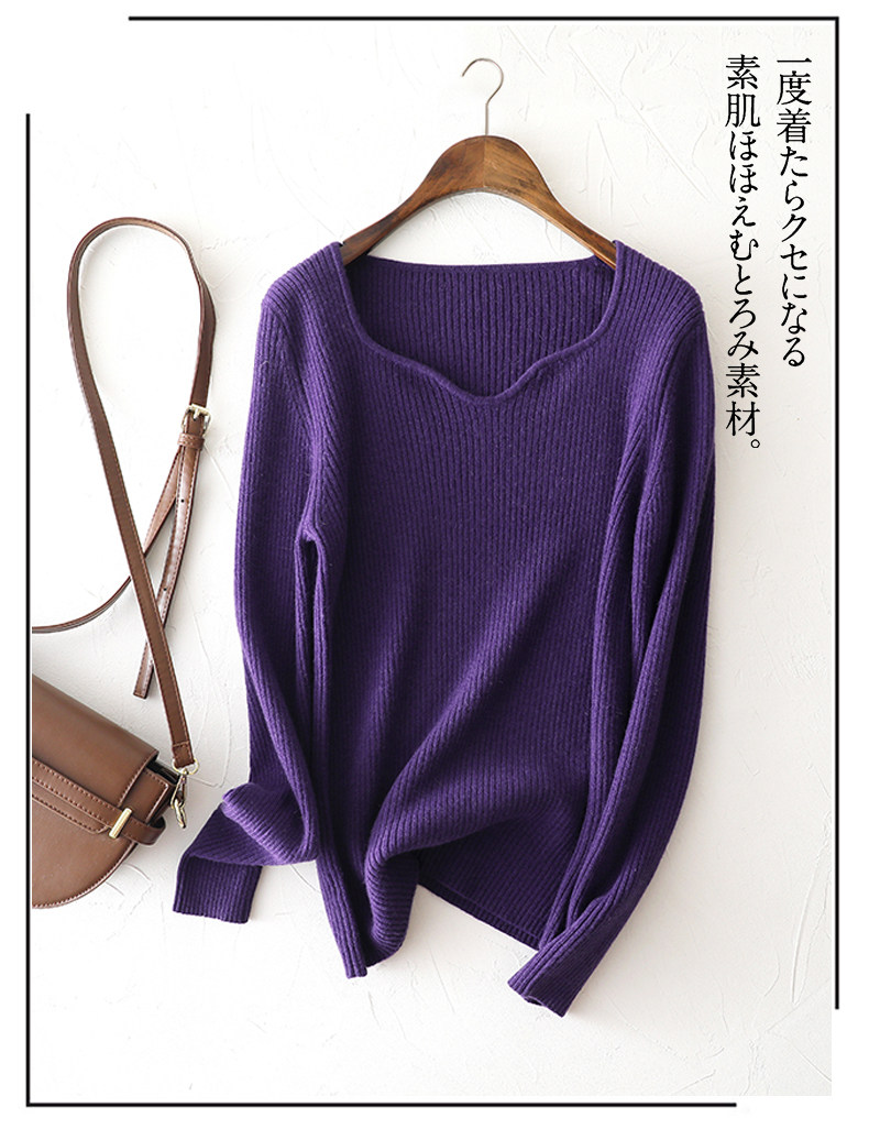 方領抽條羊絨衫