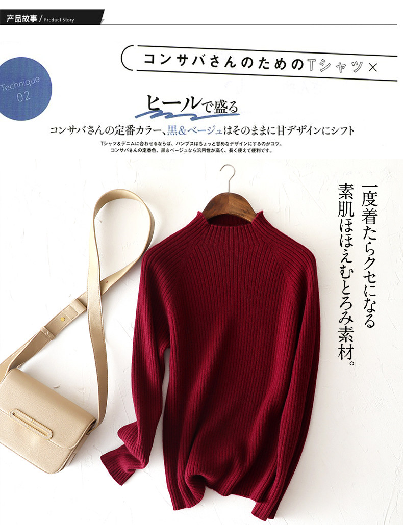 2024秋冬新款 溫暖半高領抽條羊絨衫