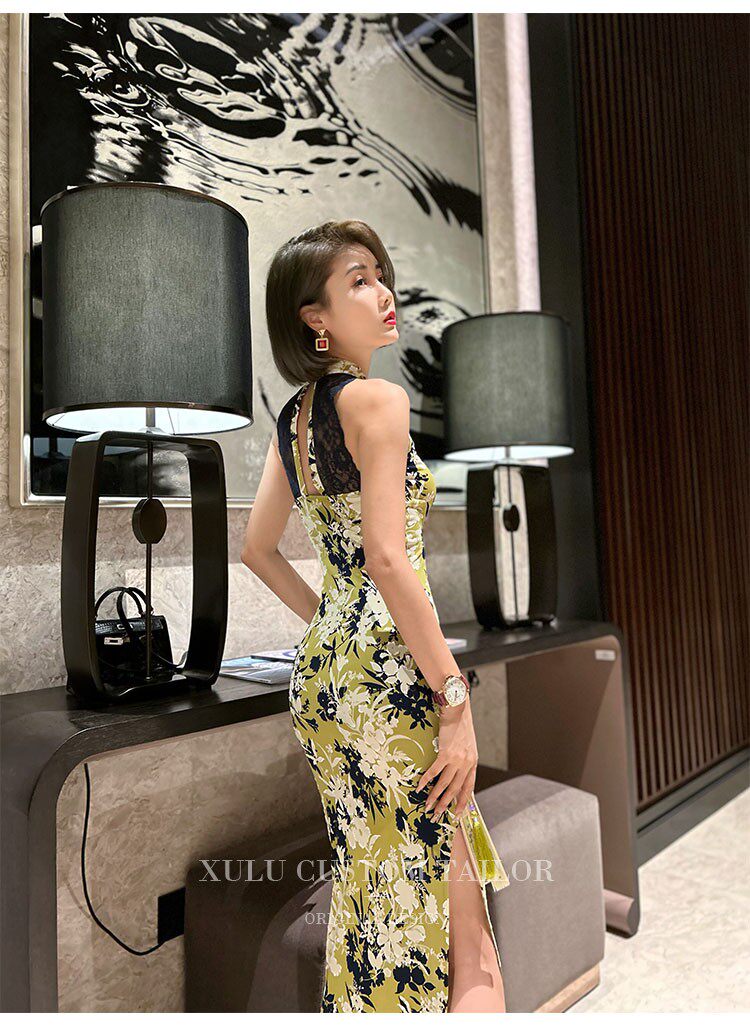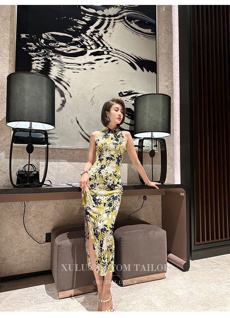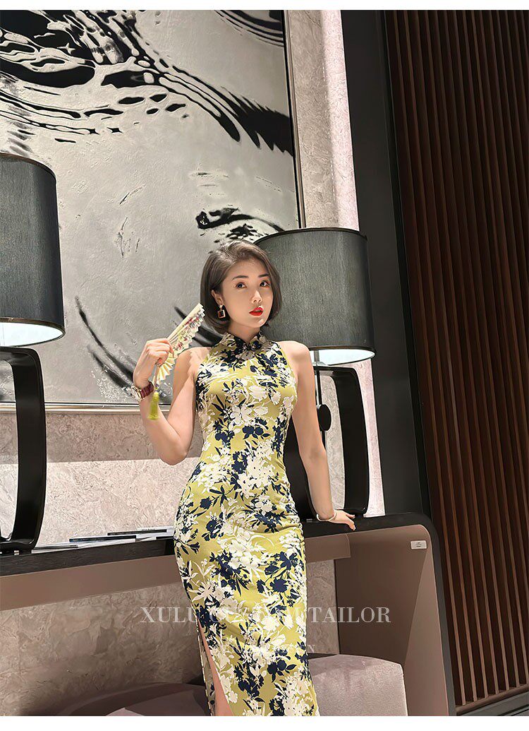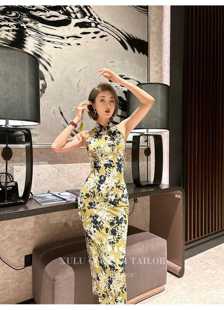保留傳統旗袍的jing典立領,融入系帶盤扣