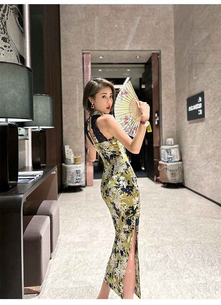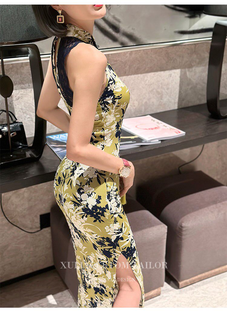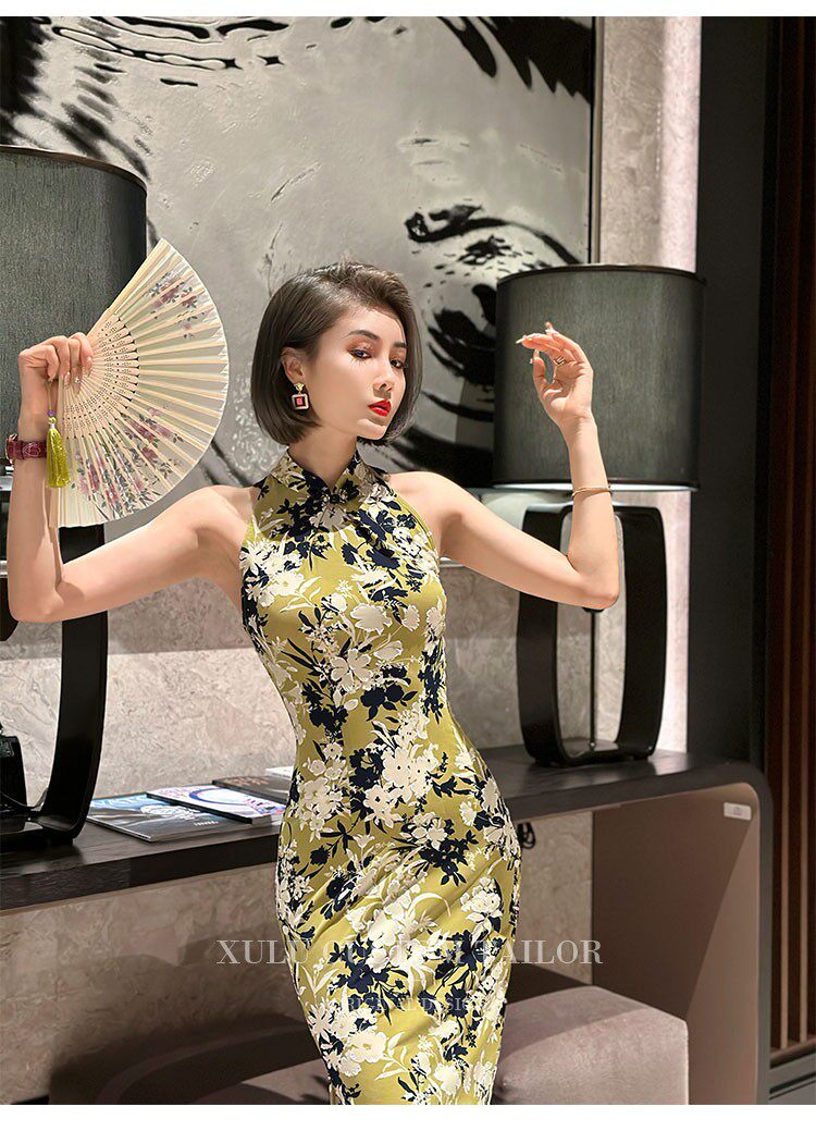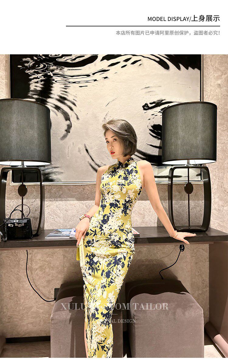 保留傳統旗袍的jing典立領,融入系帶盤扣